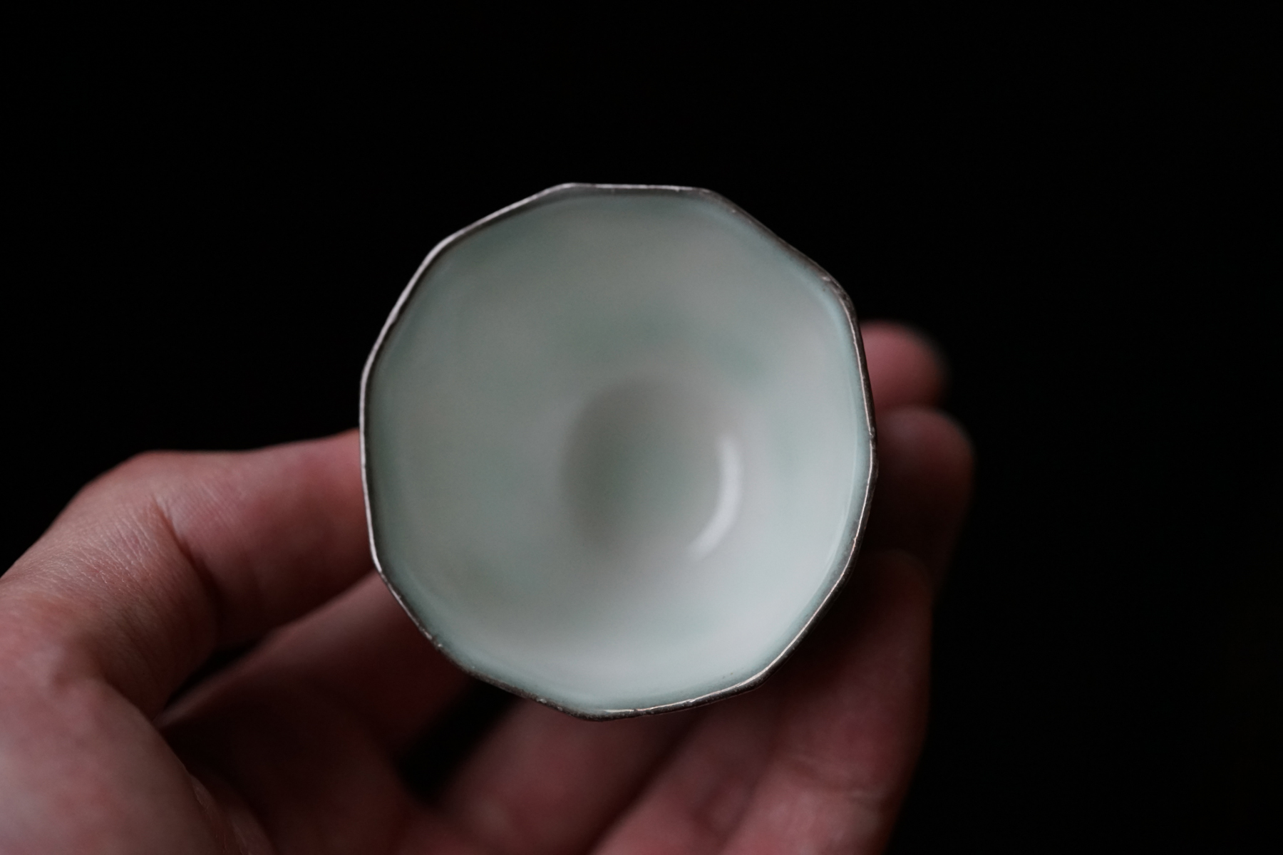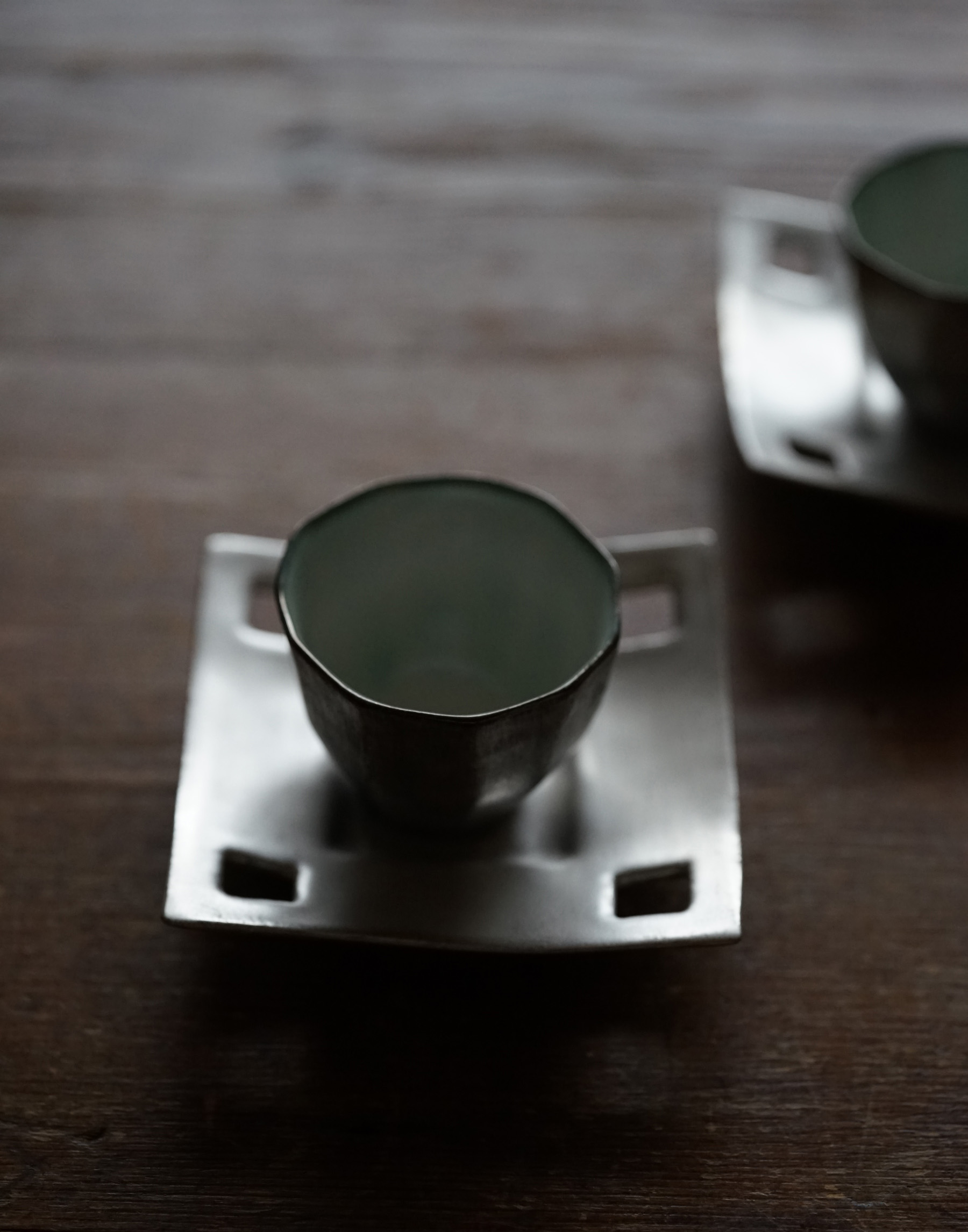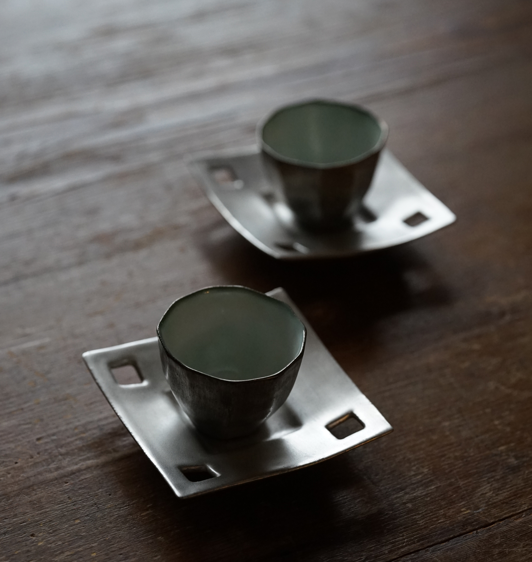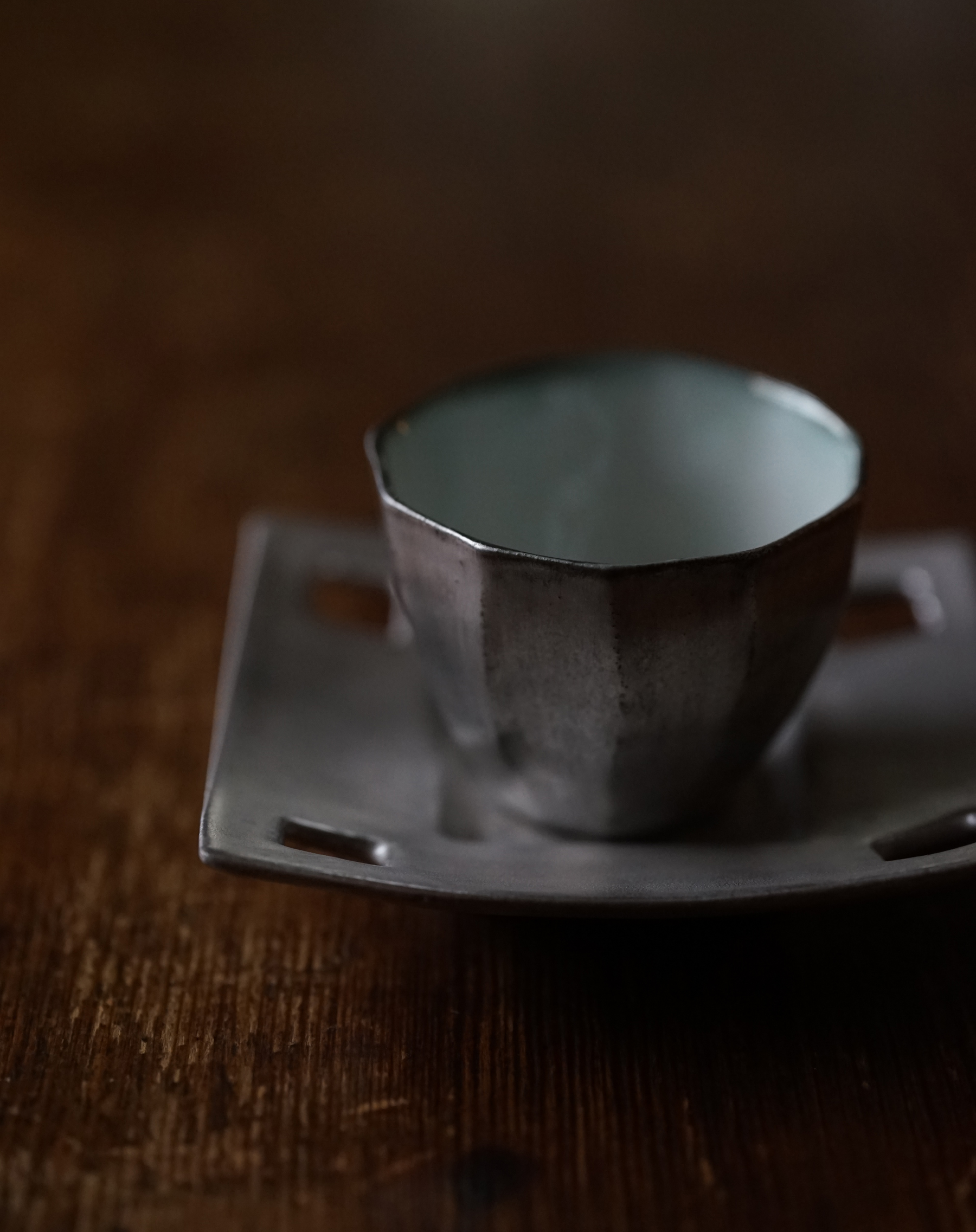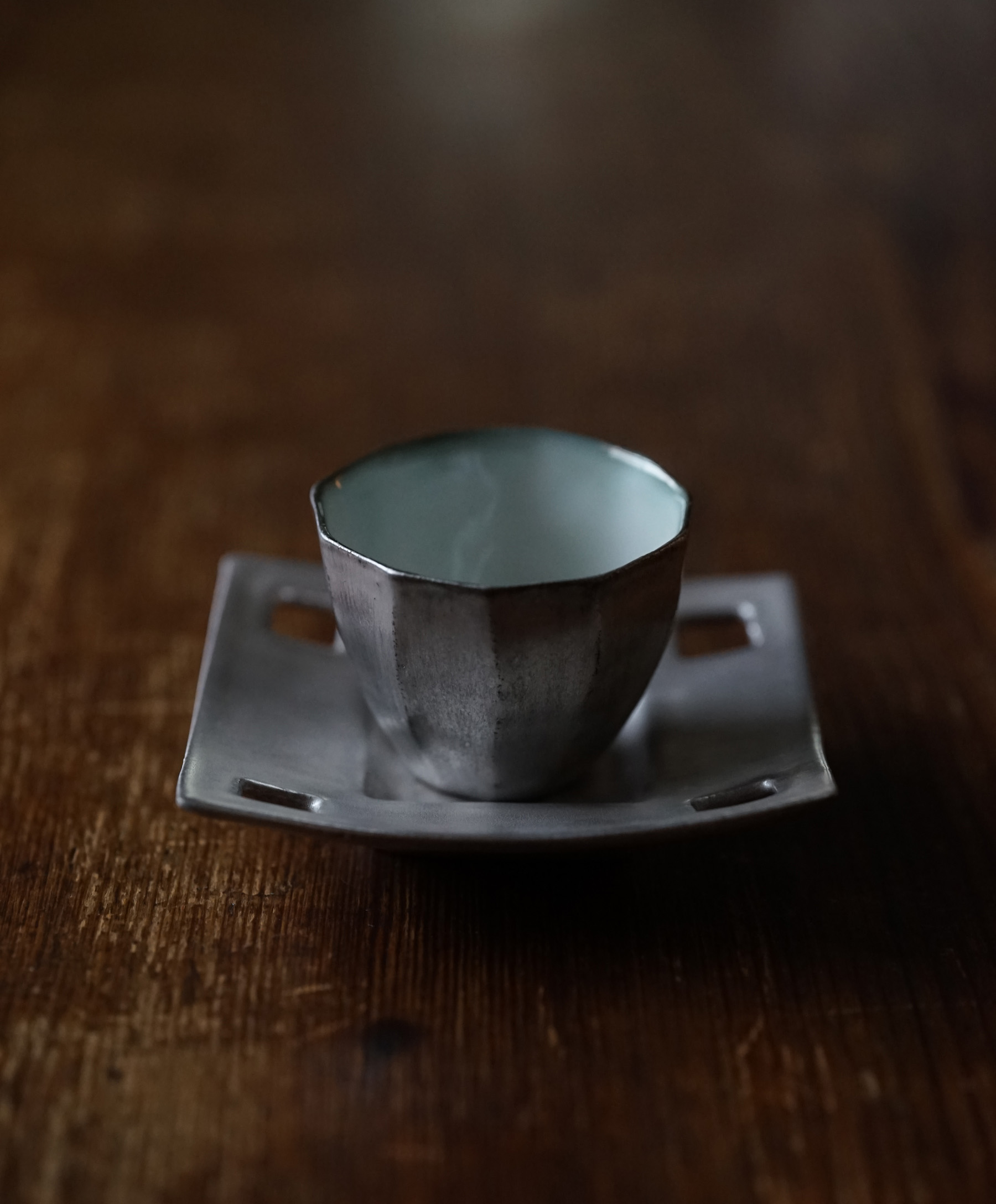 外銀彩面取茶杯・白銀彩正角高台茶托_透かし