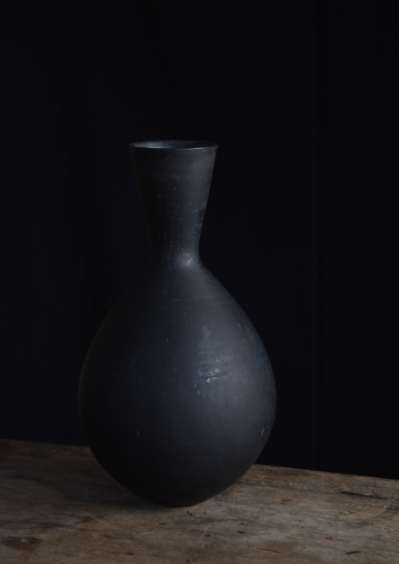 黒_花器(陶胎漆器)