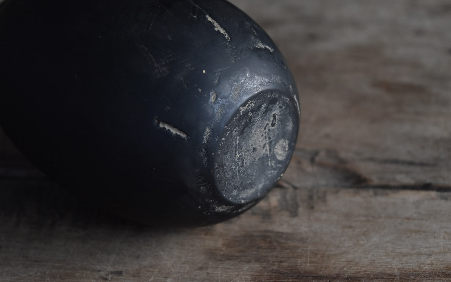 陶胎漆器の器です。形作り焼いた器に、黒土に漆を混ぜたものを塗り乾燥後に磨くという作業を10回ほど繰り返し、最後に焼き付けてつくられています。
