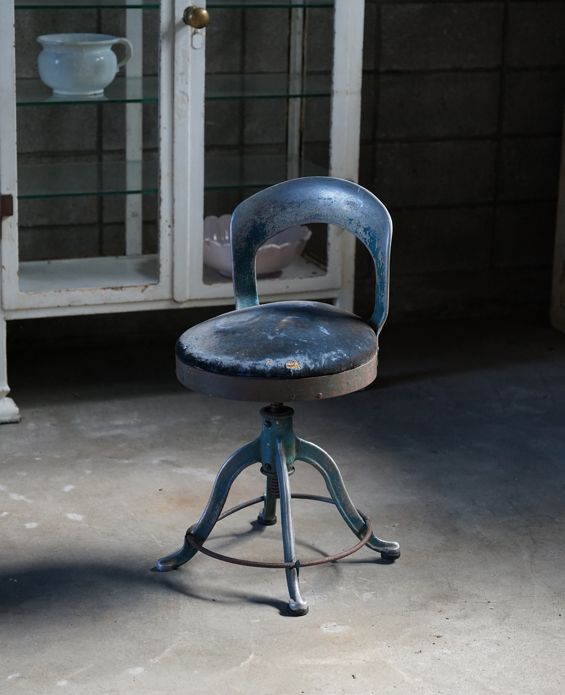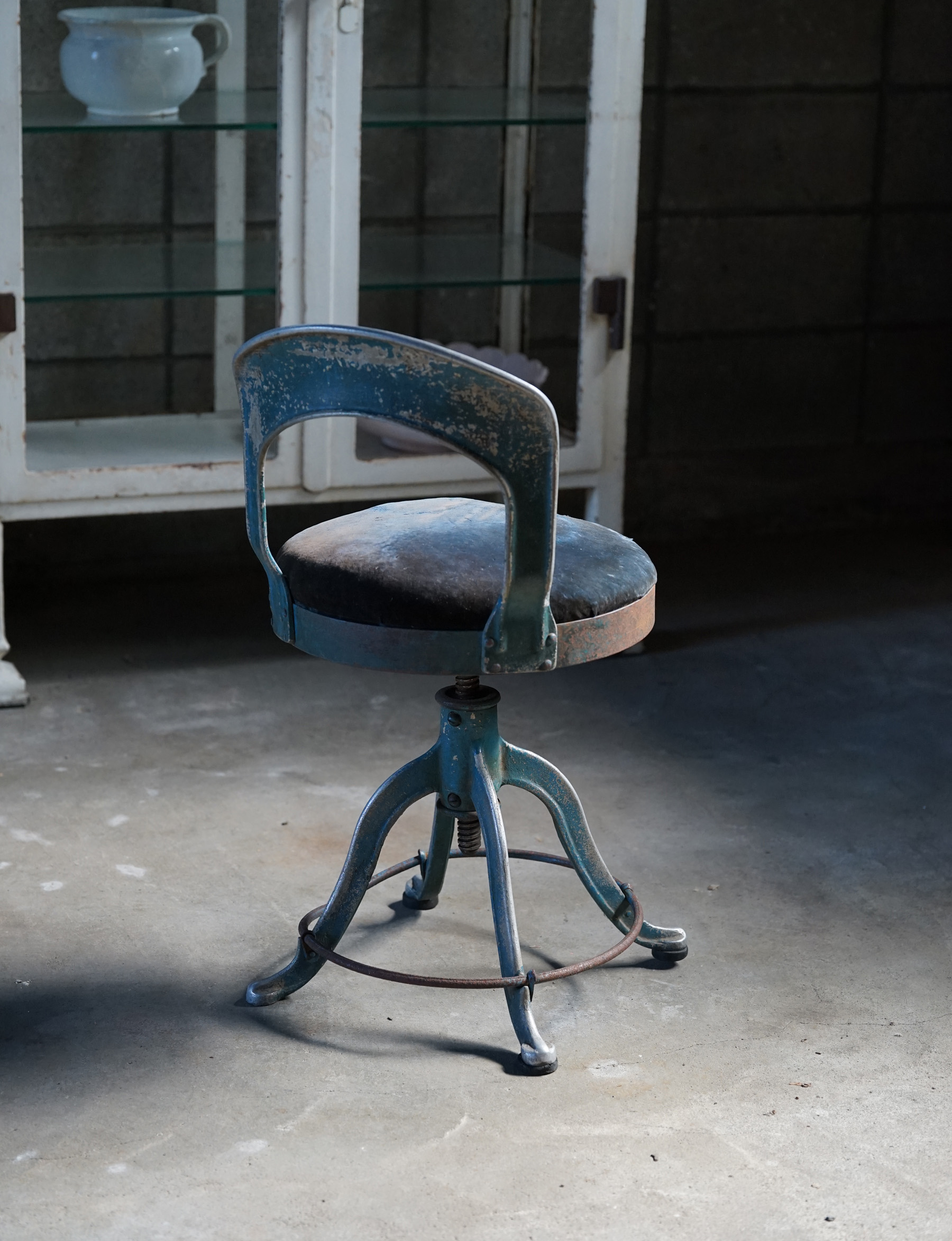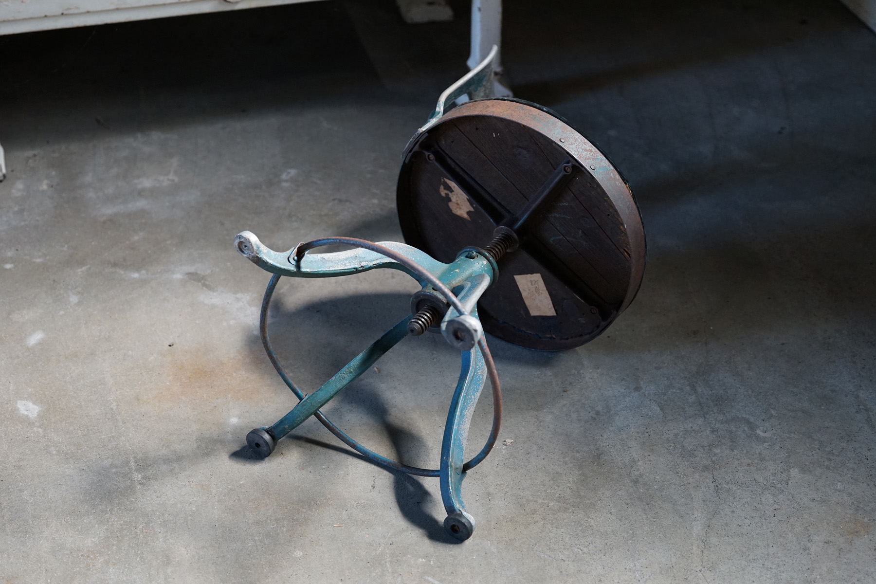 古い鋳物鉄脚の回転椅子