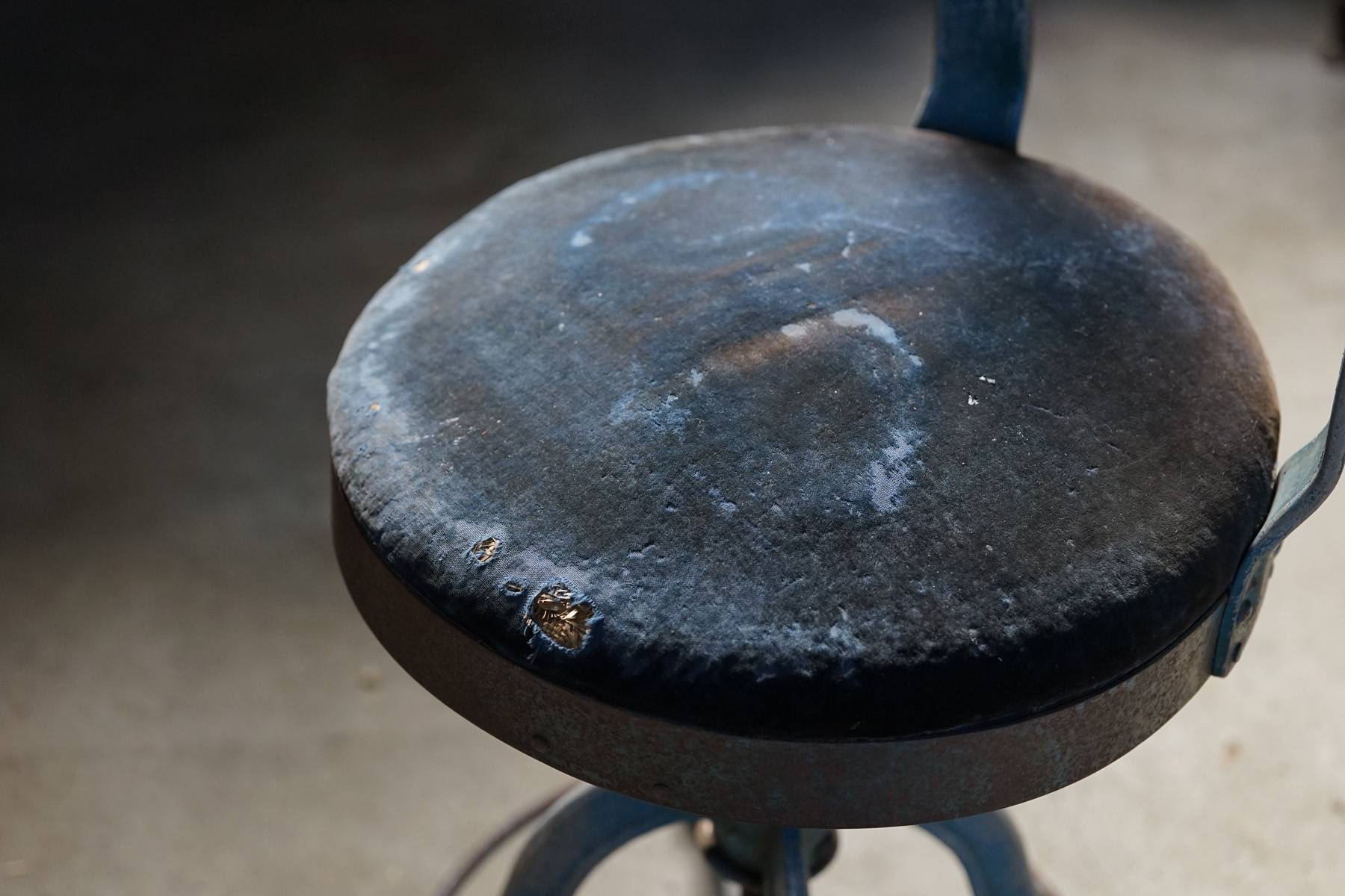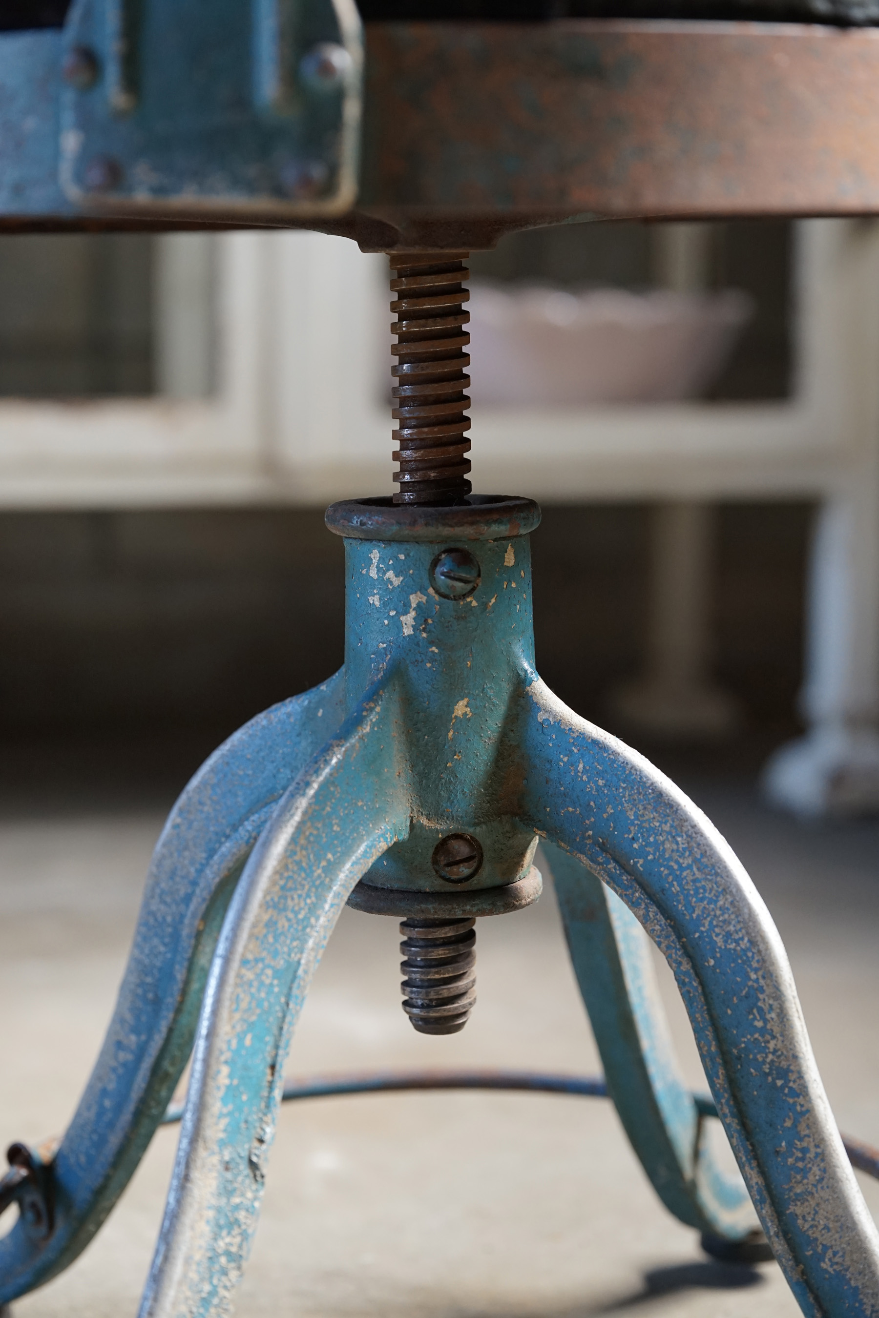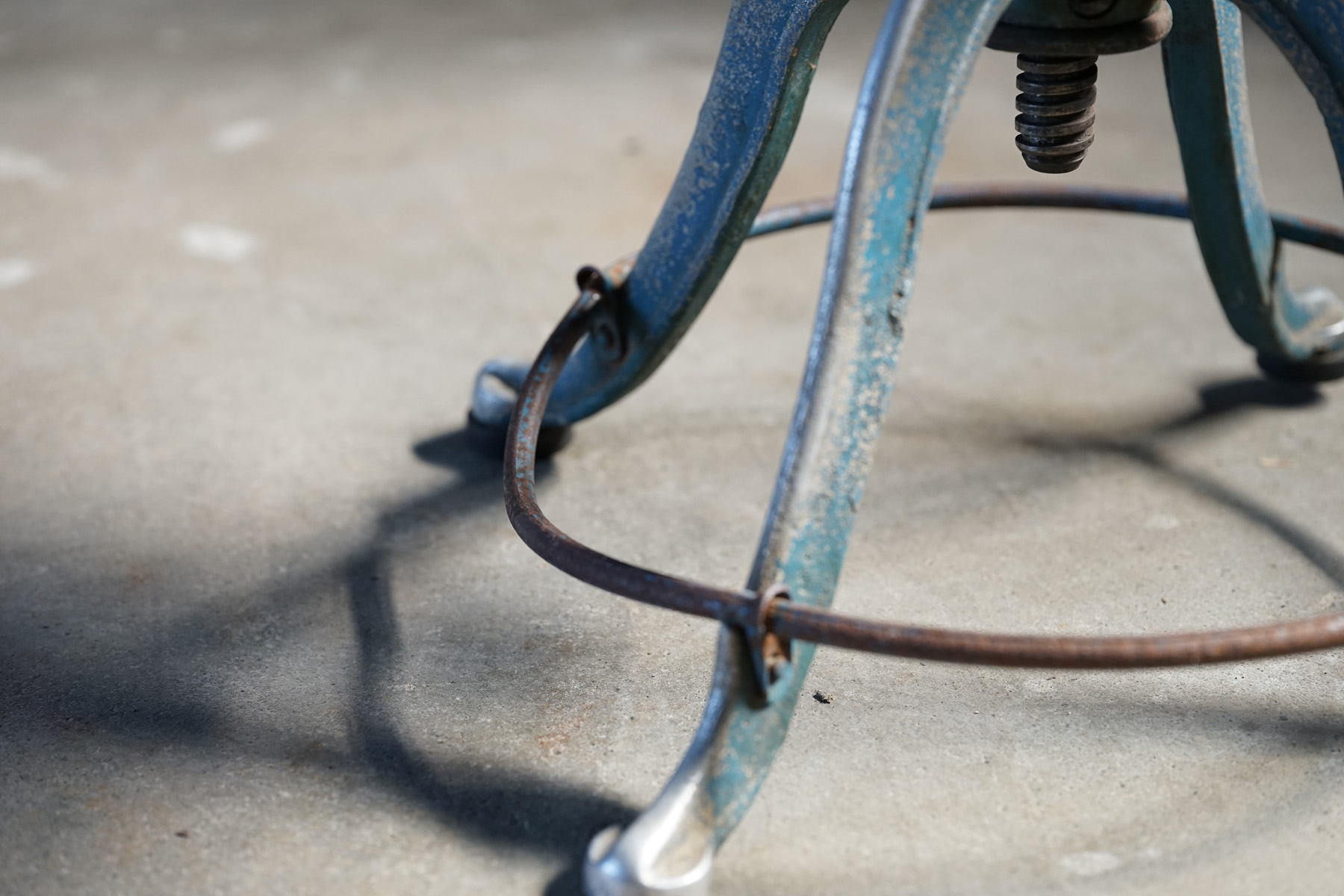 古い鋳物鉄脚の回転椅子
