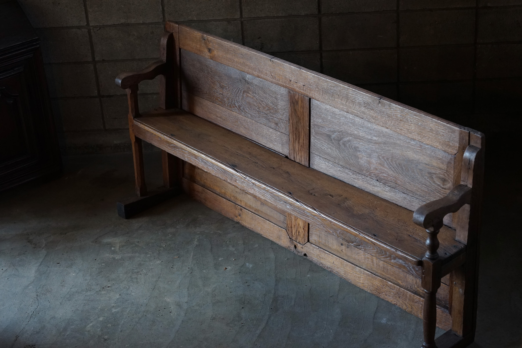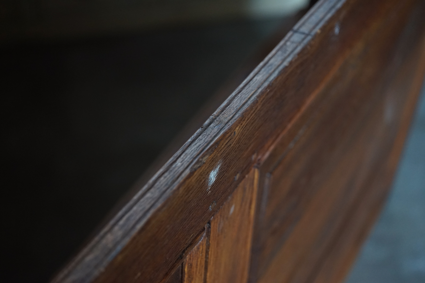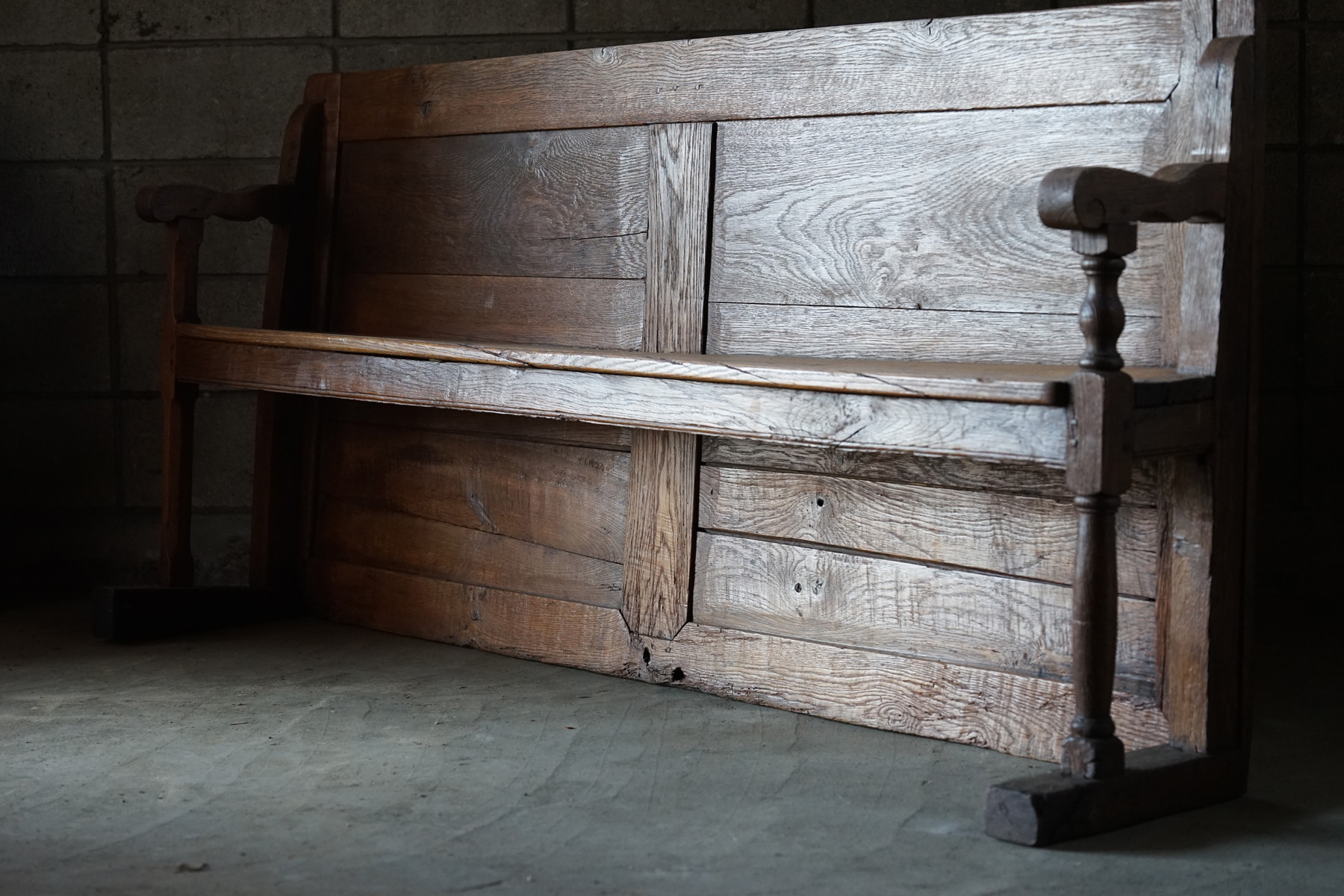 ノルマンディー地方の教会から。牧歌的な美しいチャーチベンチ。左右で意匠が違うのはなんでか。座面の奥行きが浅く、背も角度が無く座り難いけれど、姿勢正しく座る場であり、生き生きとした素晴らしい家具だと思います。