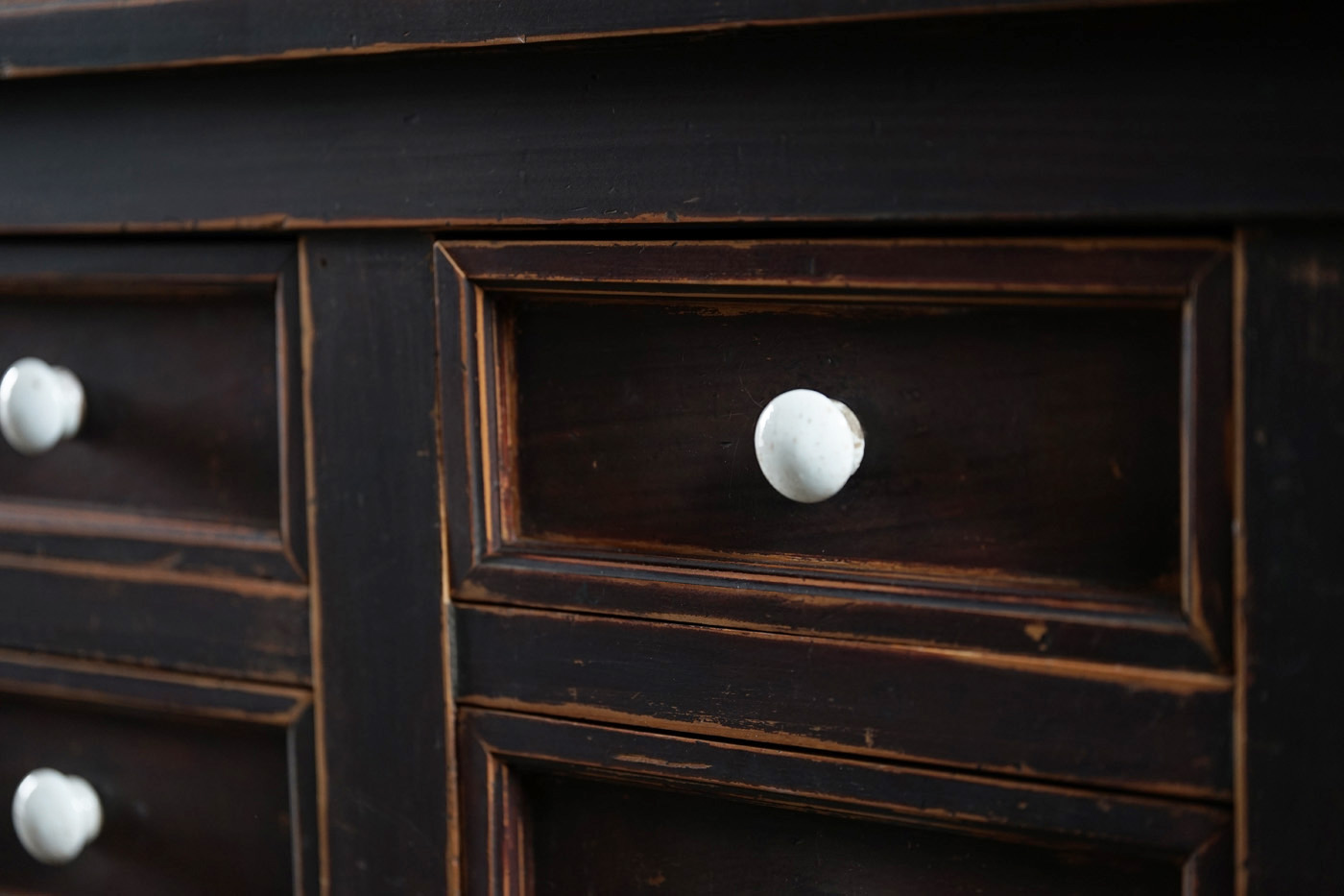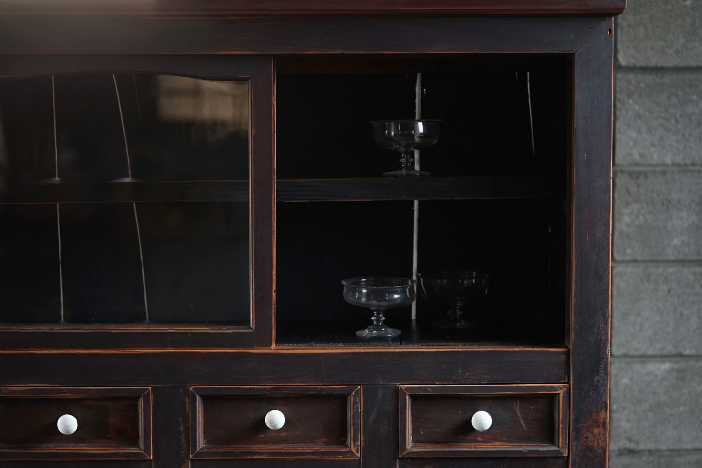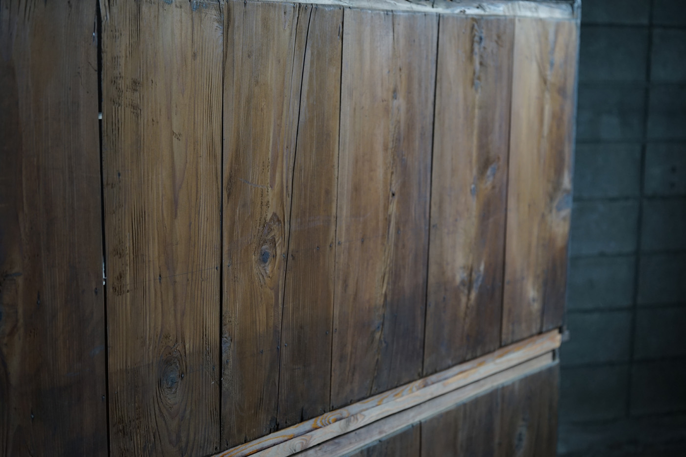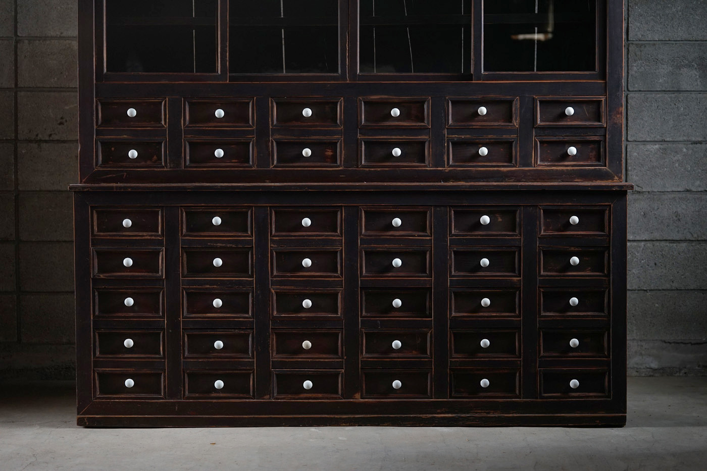 沢山の引き出しが連続的な美しさと存在感があります。シンプルな装飾のある和箪笥です。