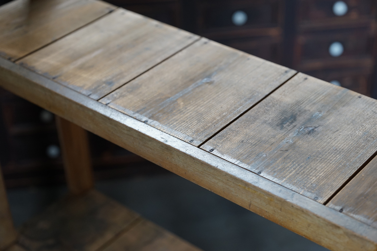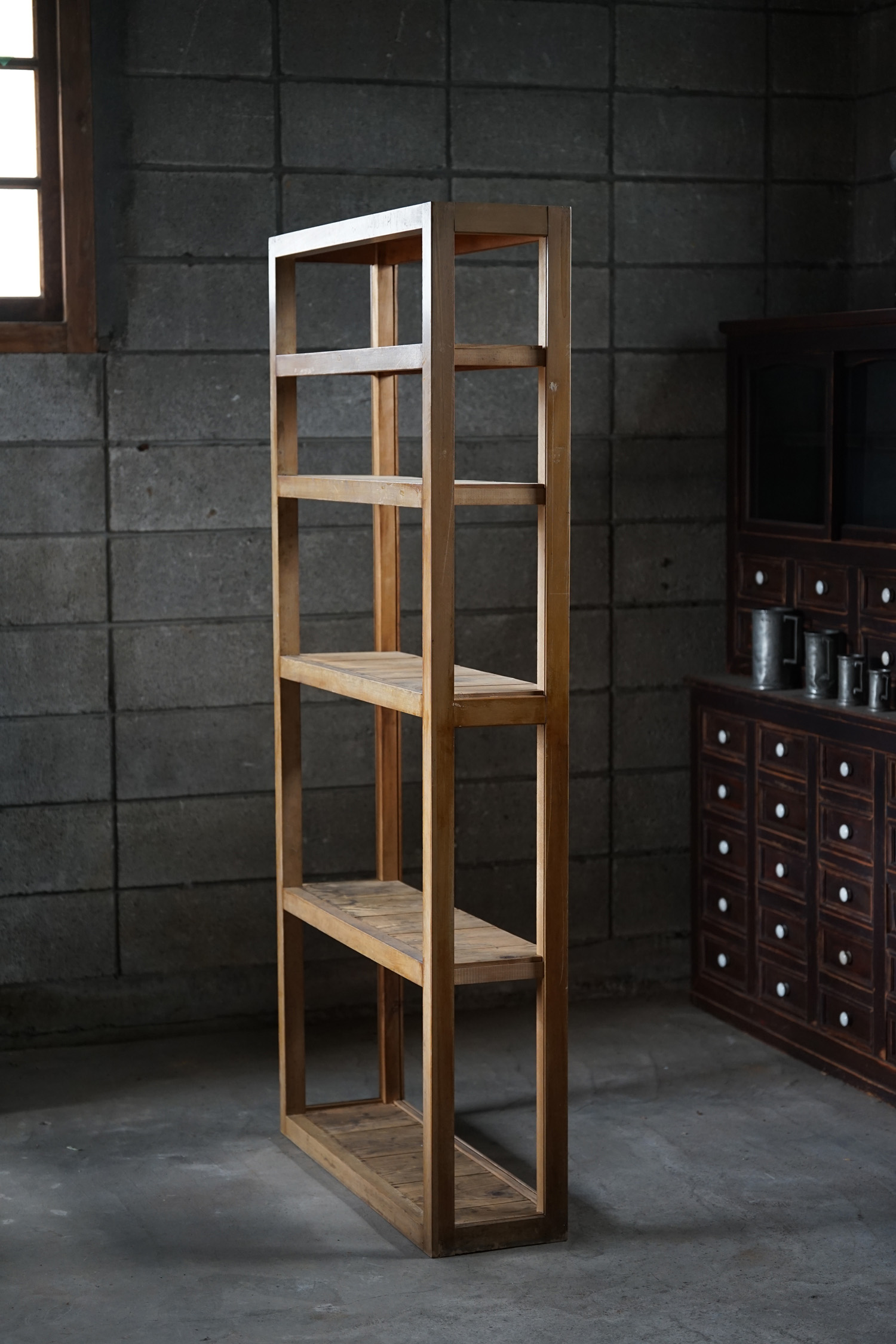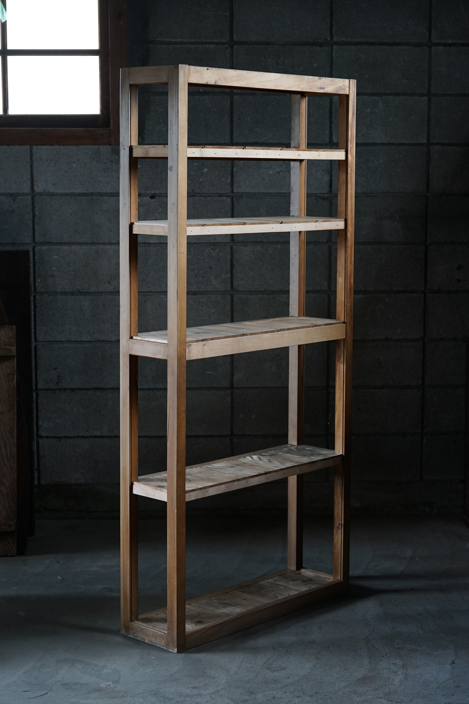 古い無垢材のシンプルな薄型木製棚