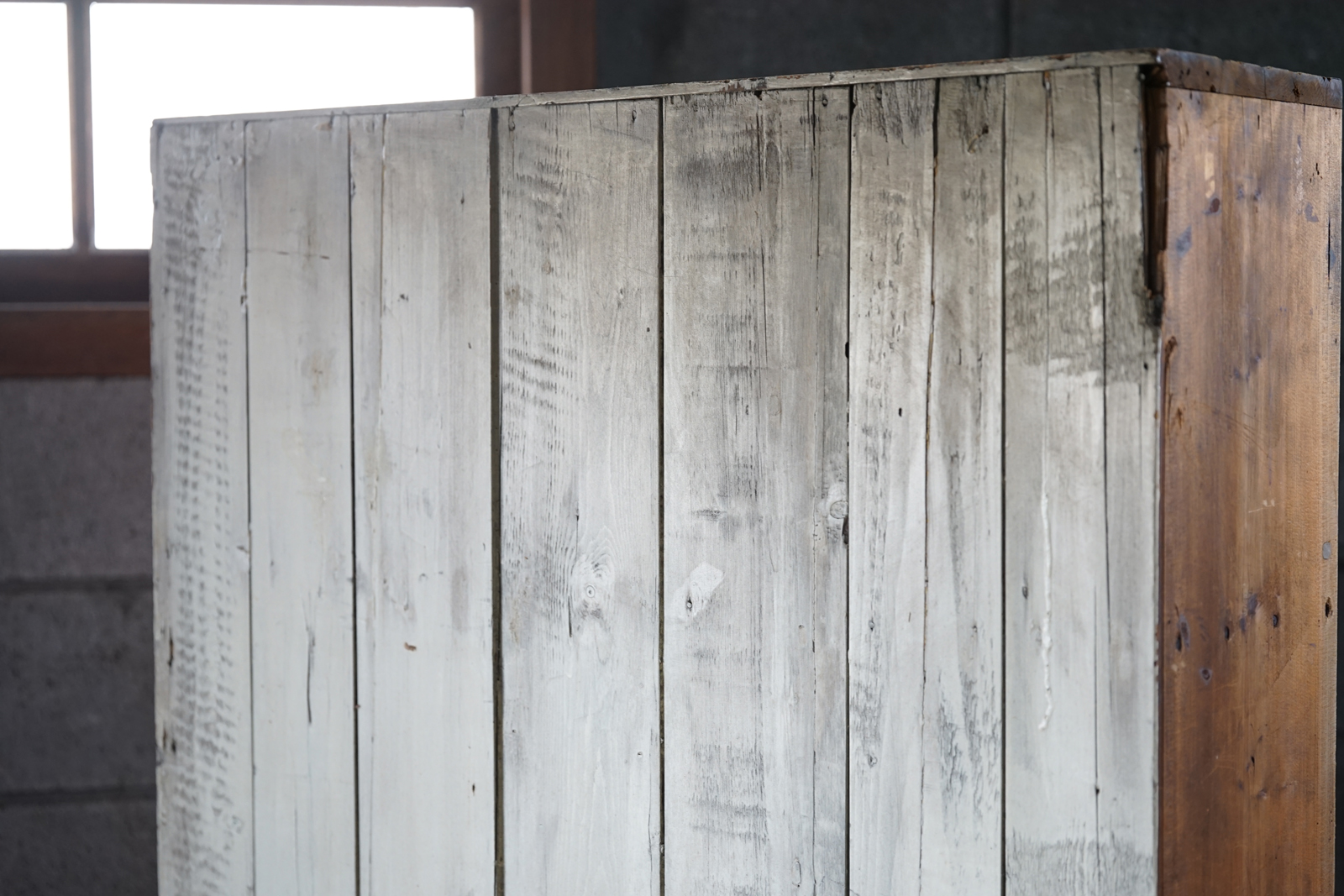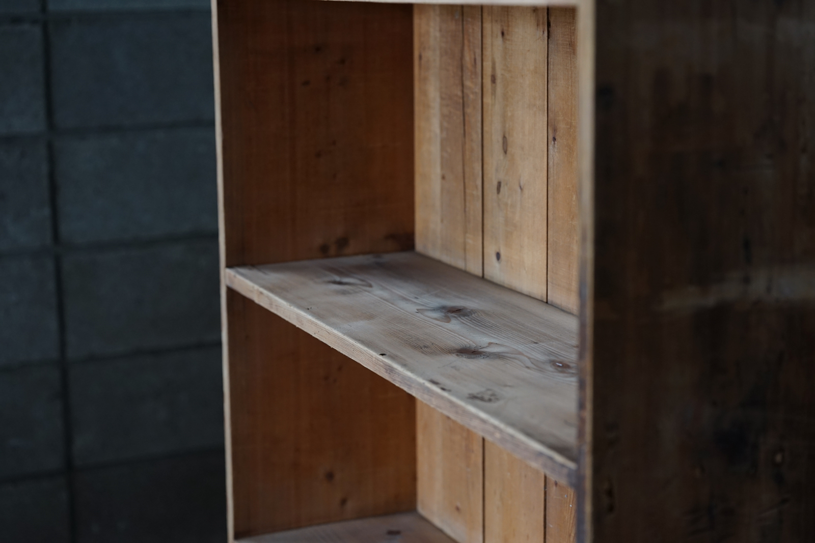 description : 総無垢材を使用したシンプルな作り。背面のペンキの風合いも綺麗な棚です。