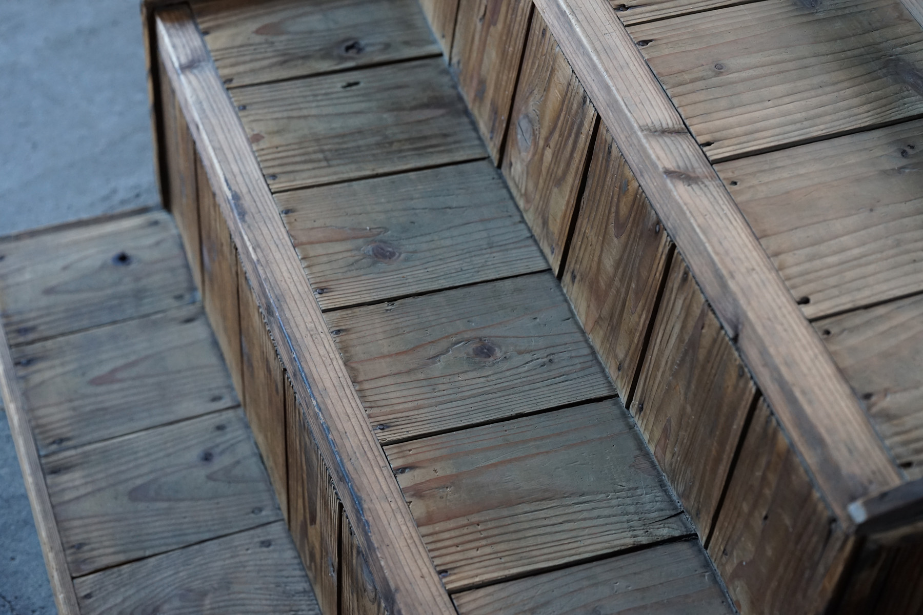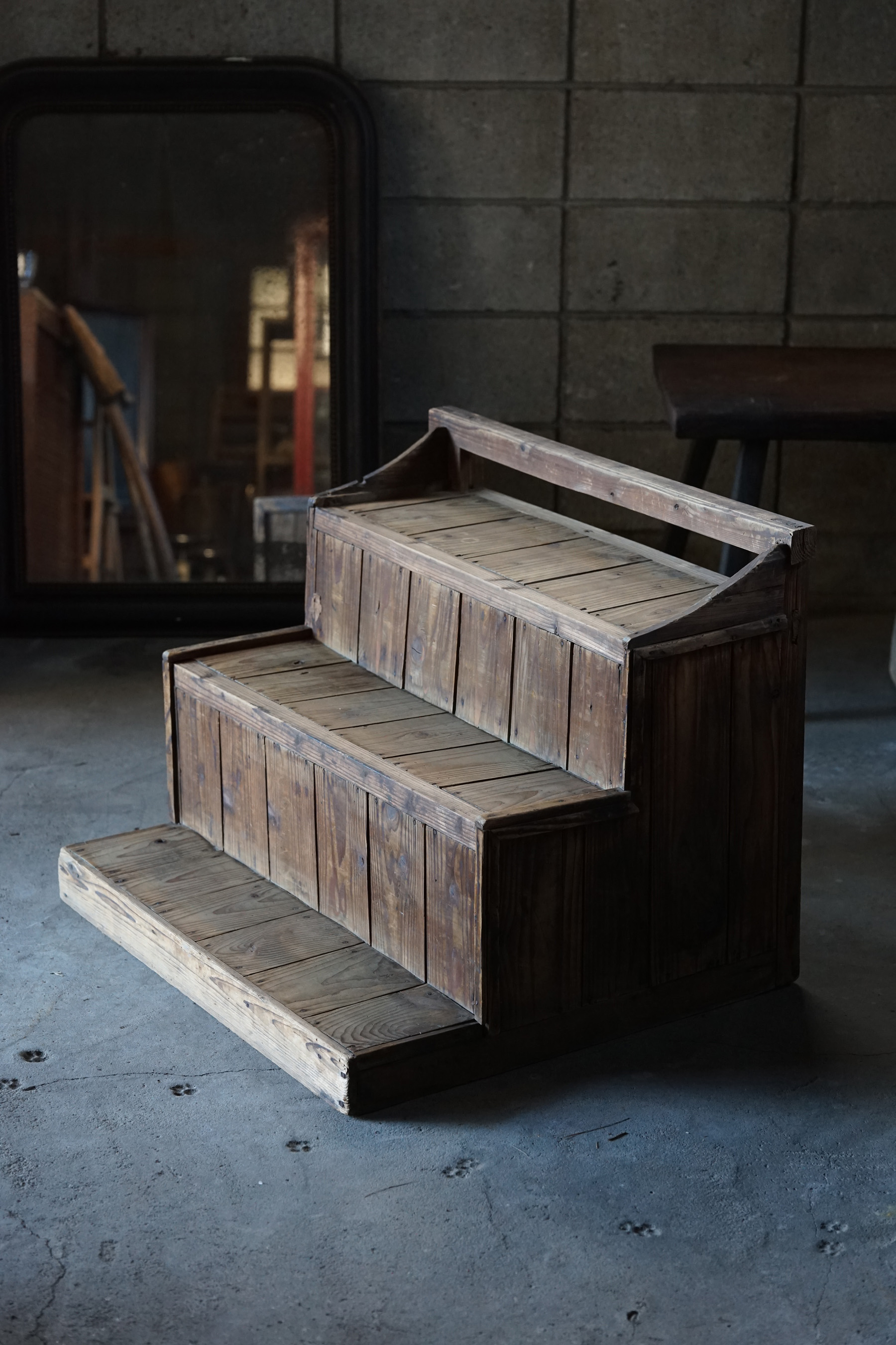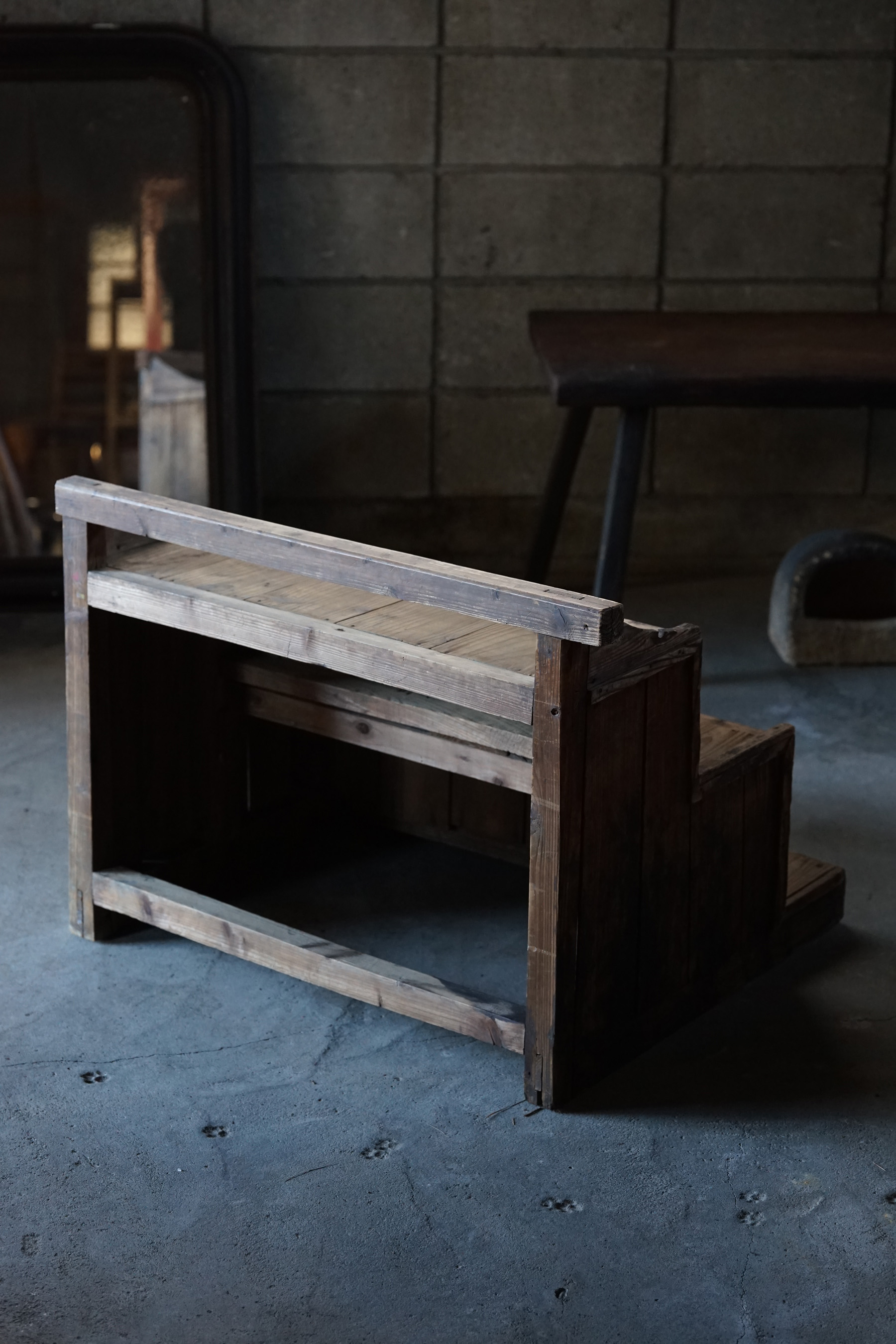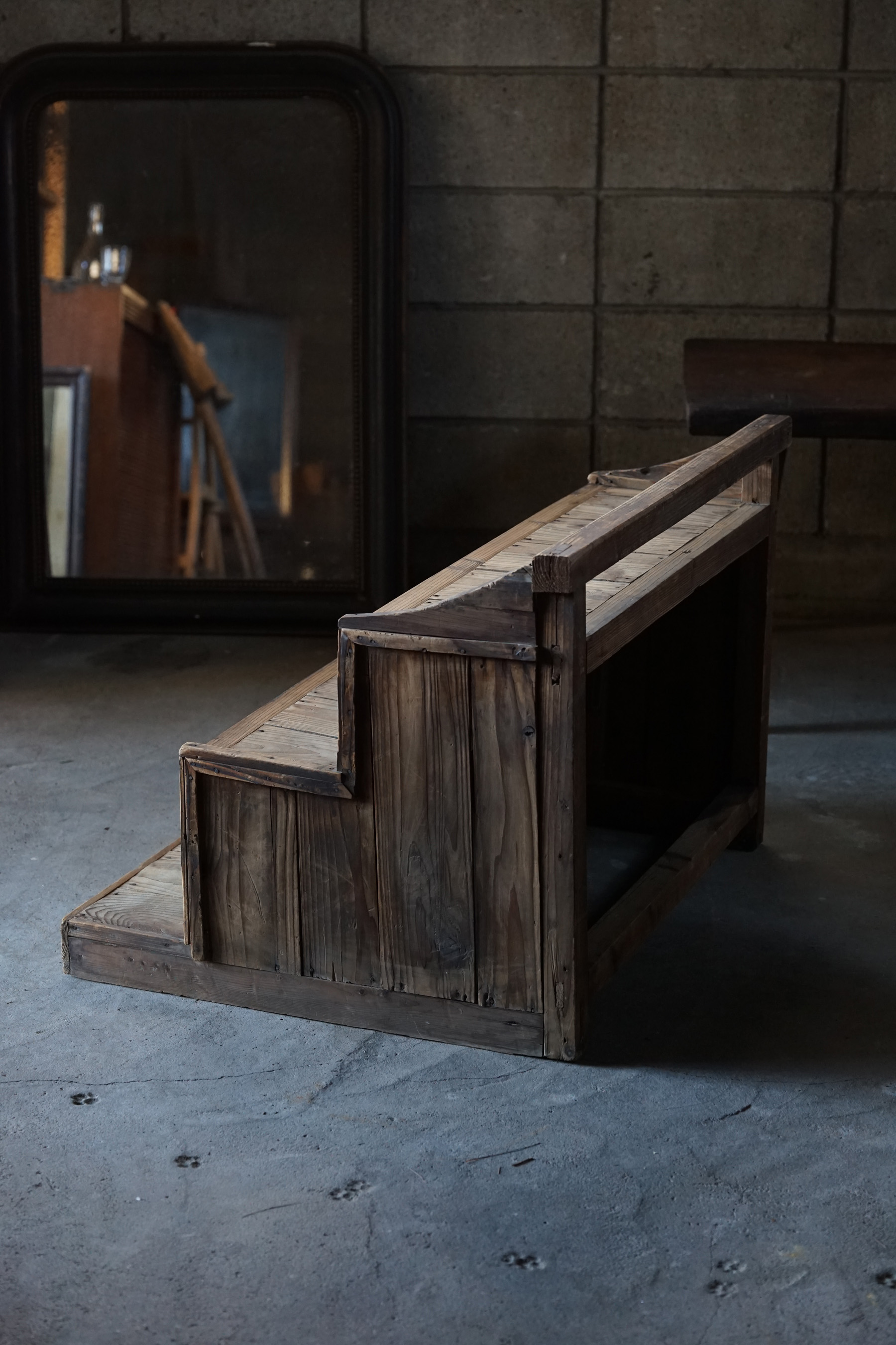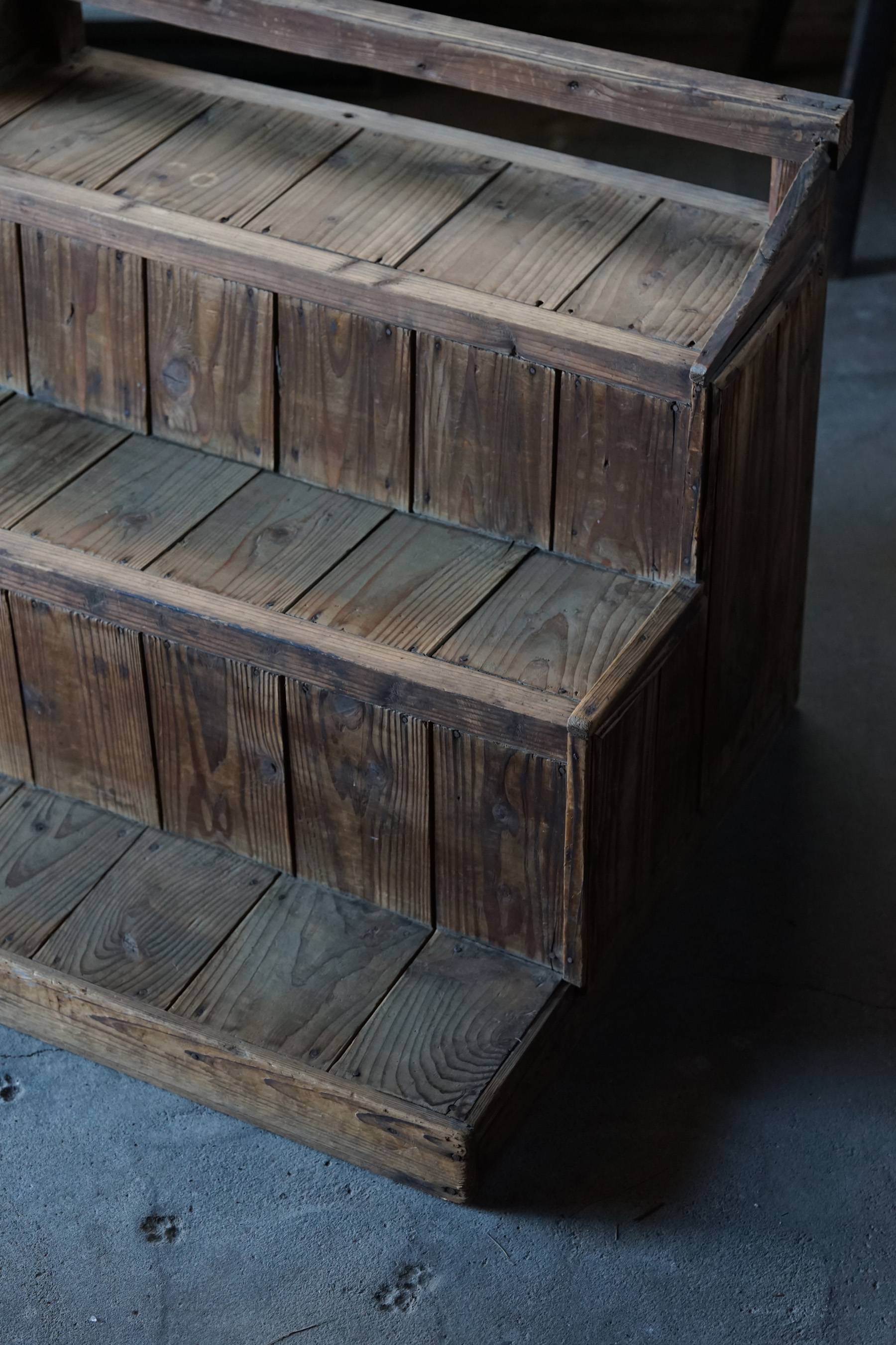 古い無垢材の階段型木製棚