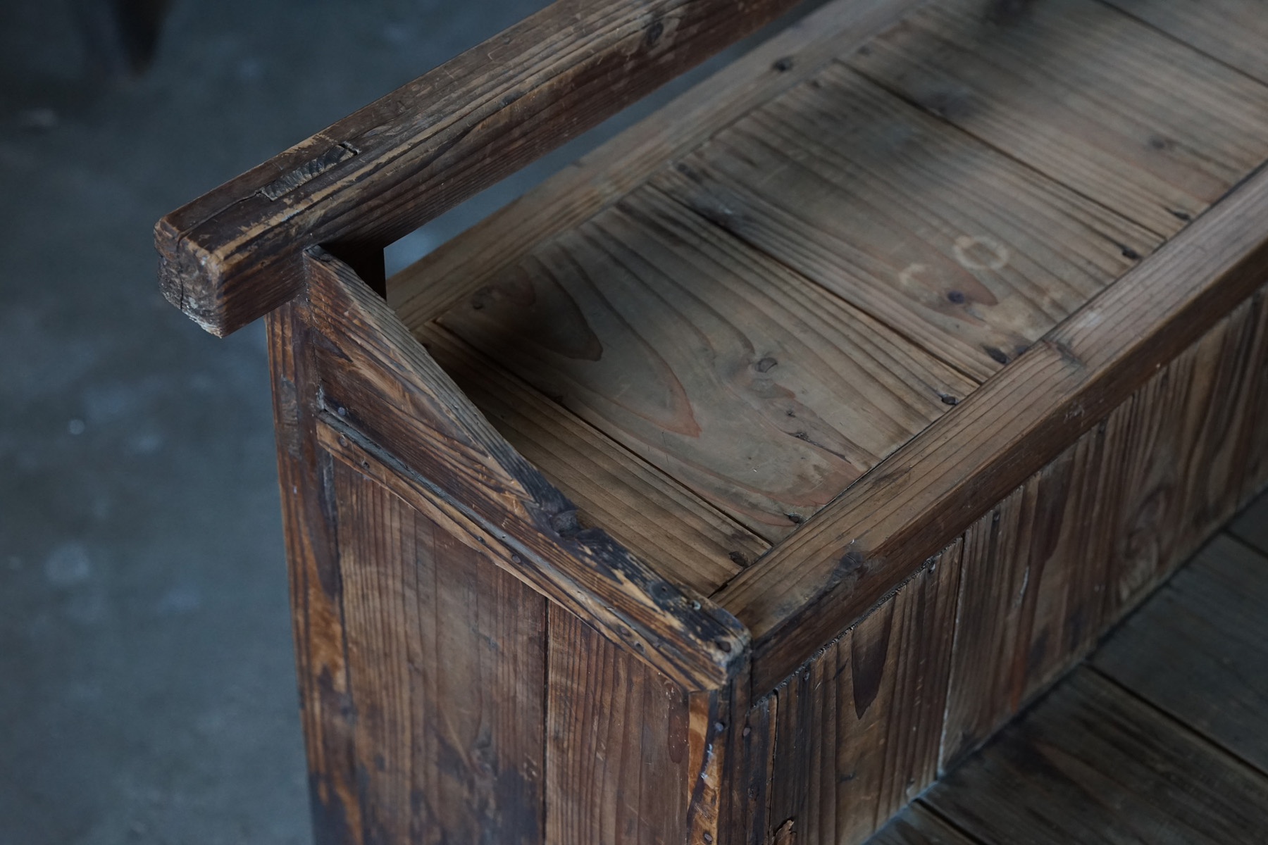 古い無垢材の階段型木製棚 / 日本