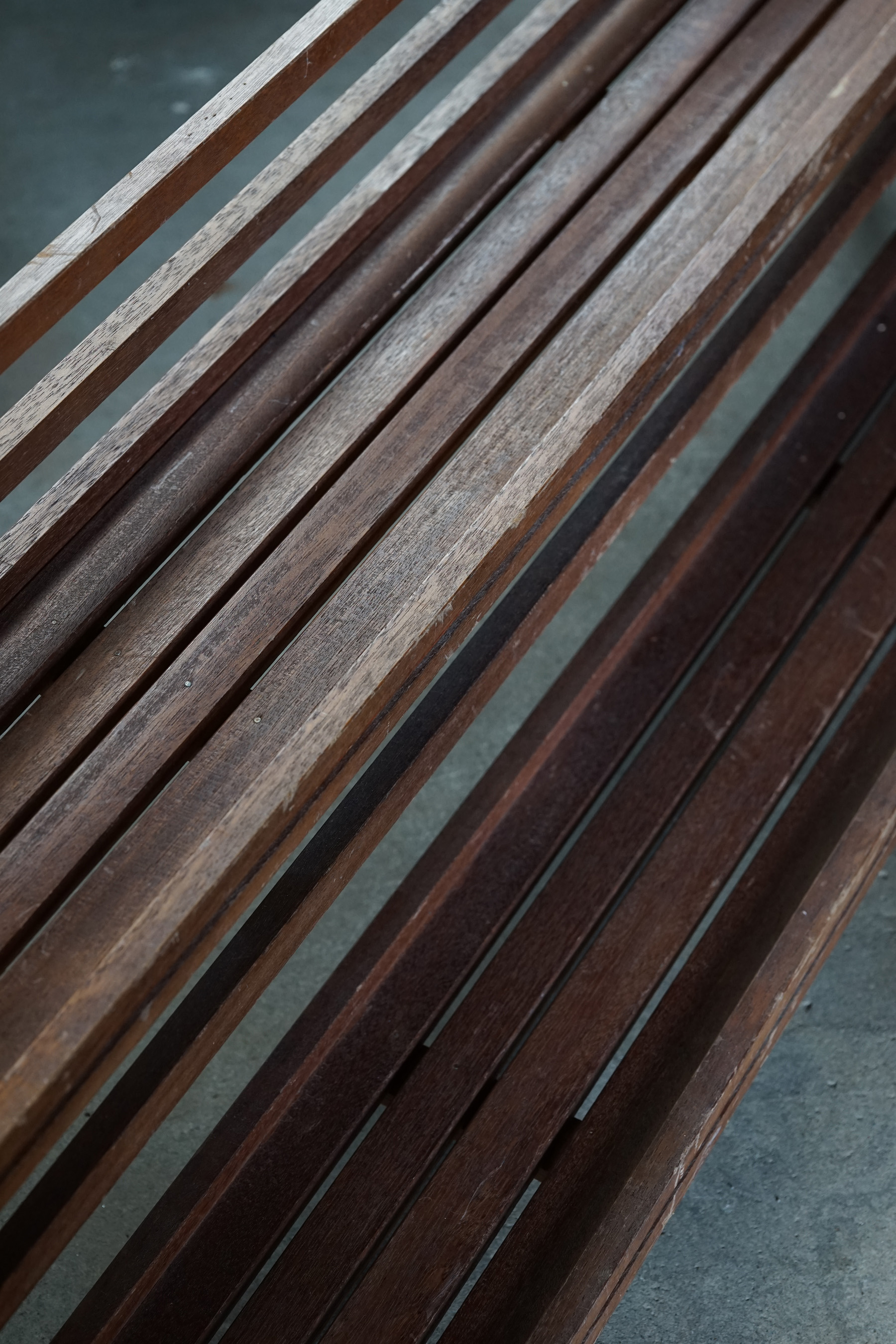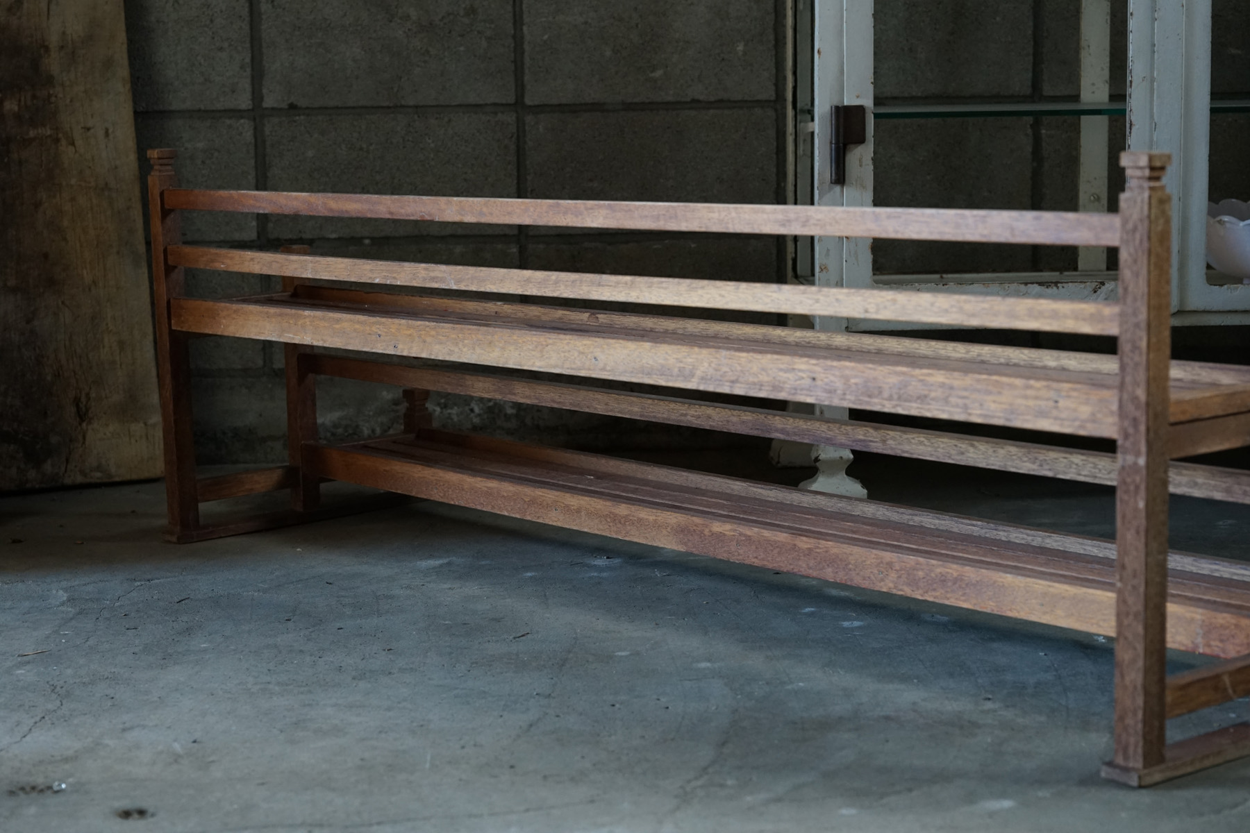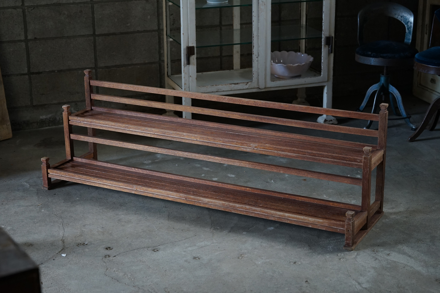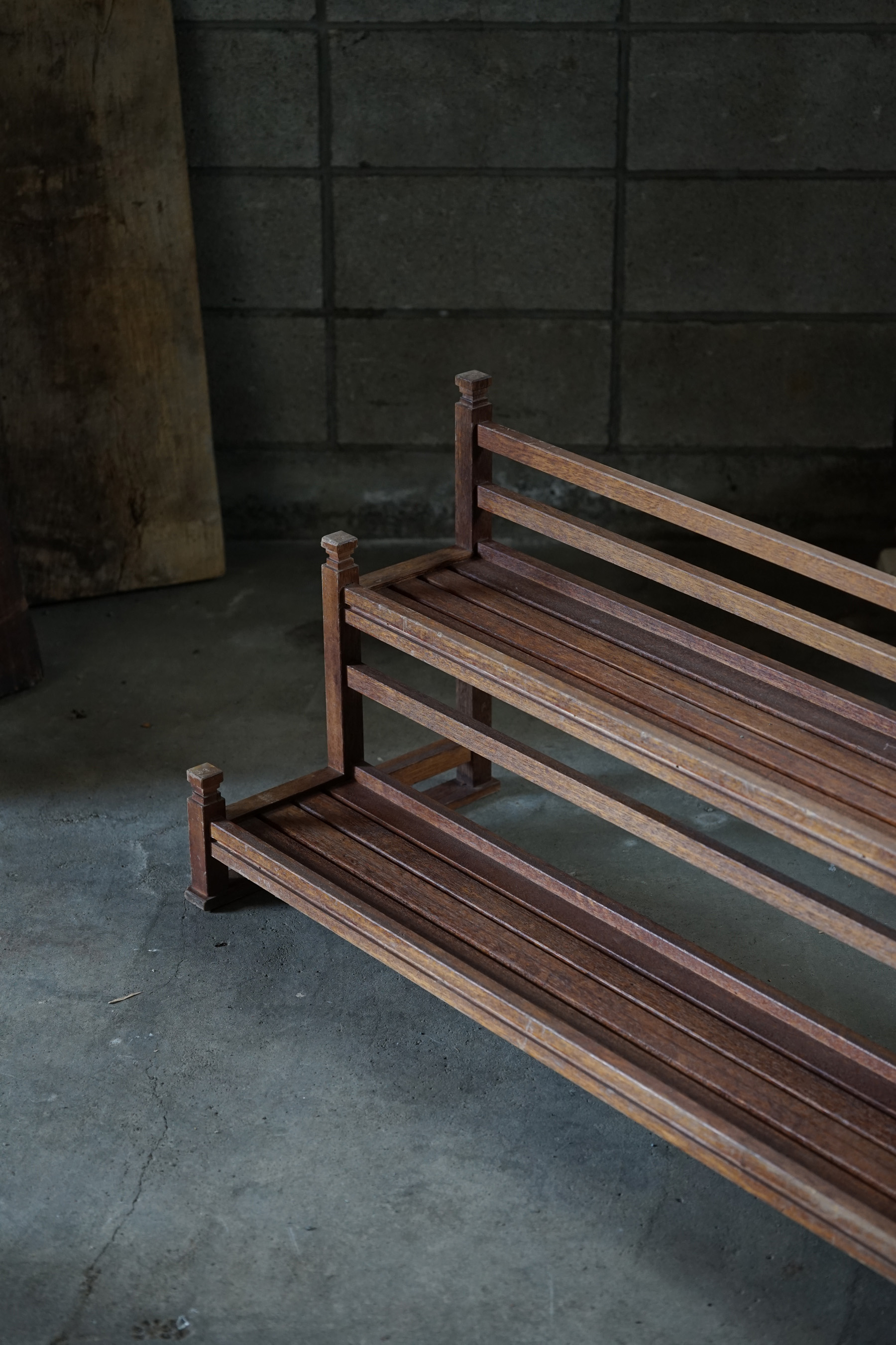 古い無垢材の装飾のある階段型陳列台 / 日本