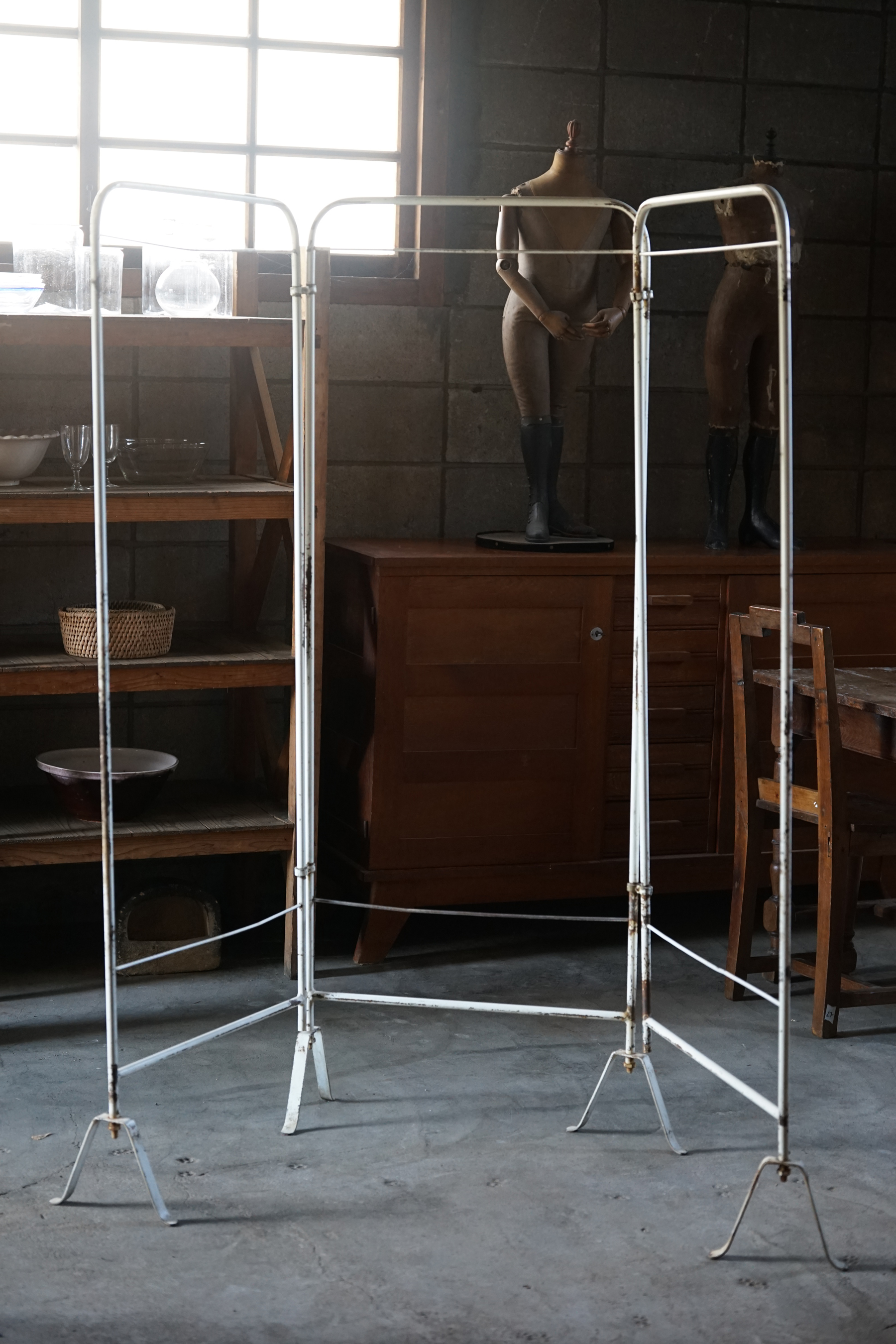古いシンプルな鉄製折り畳みハンガーラック / 日本