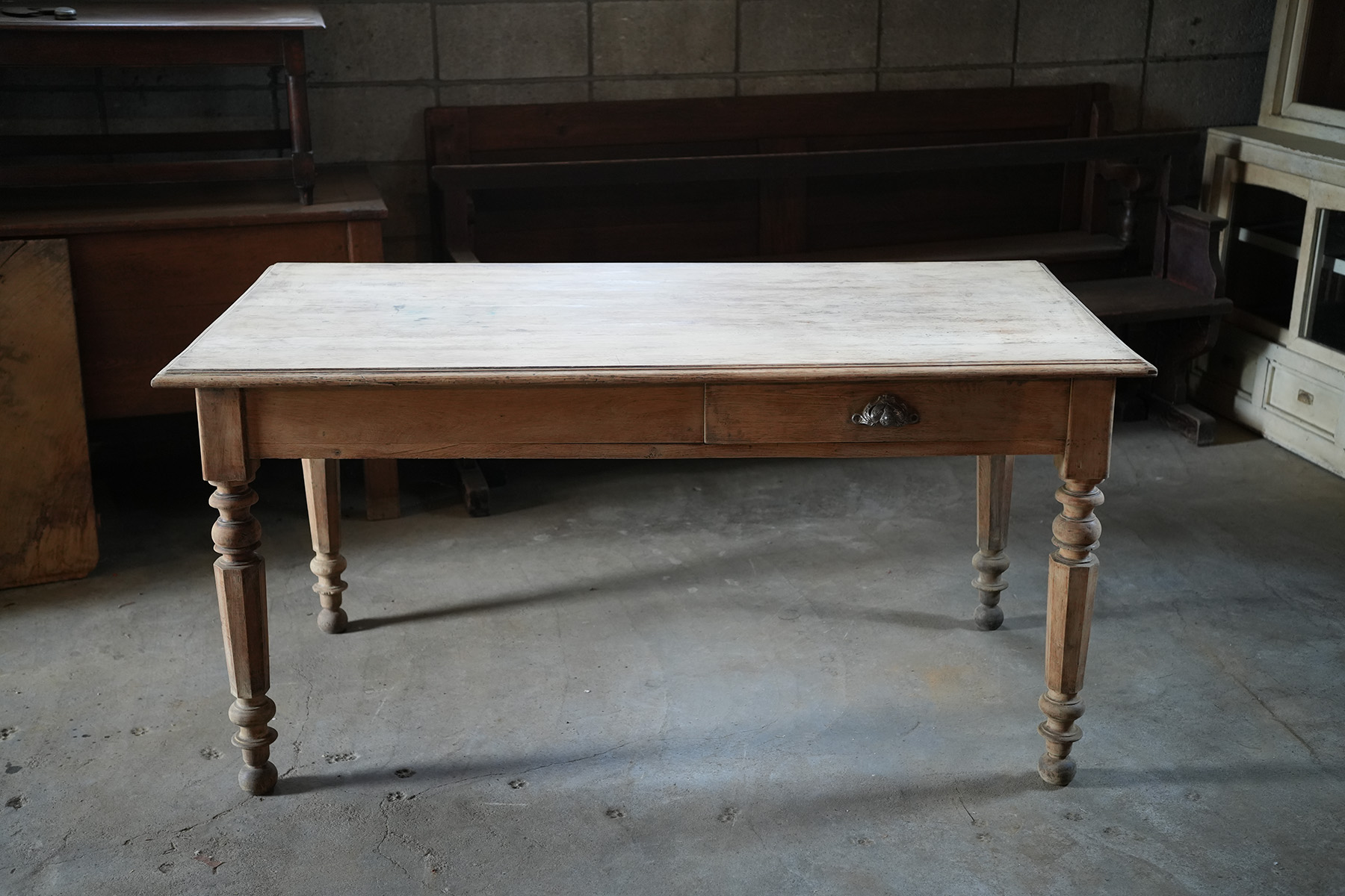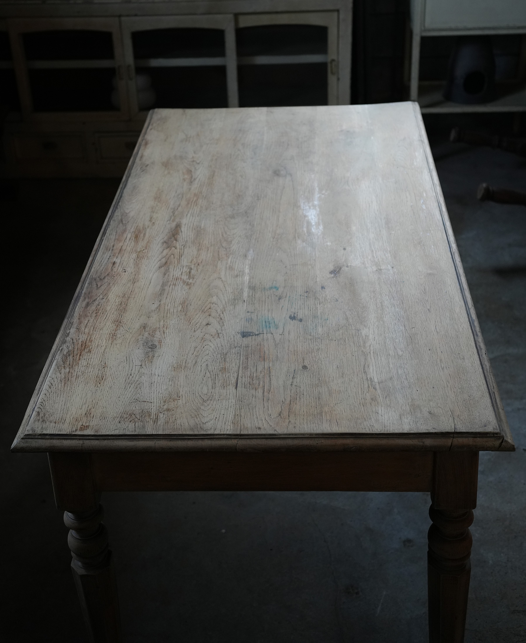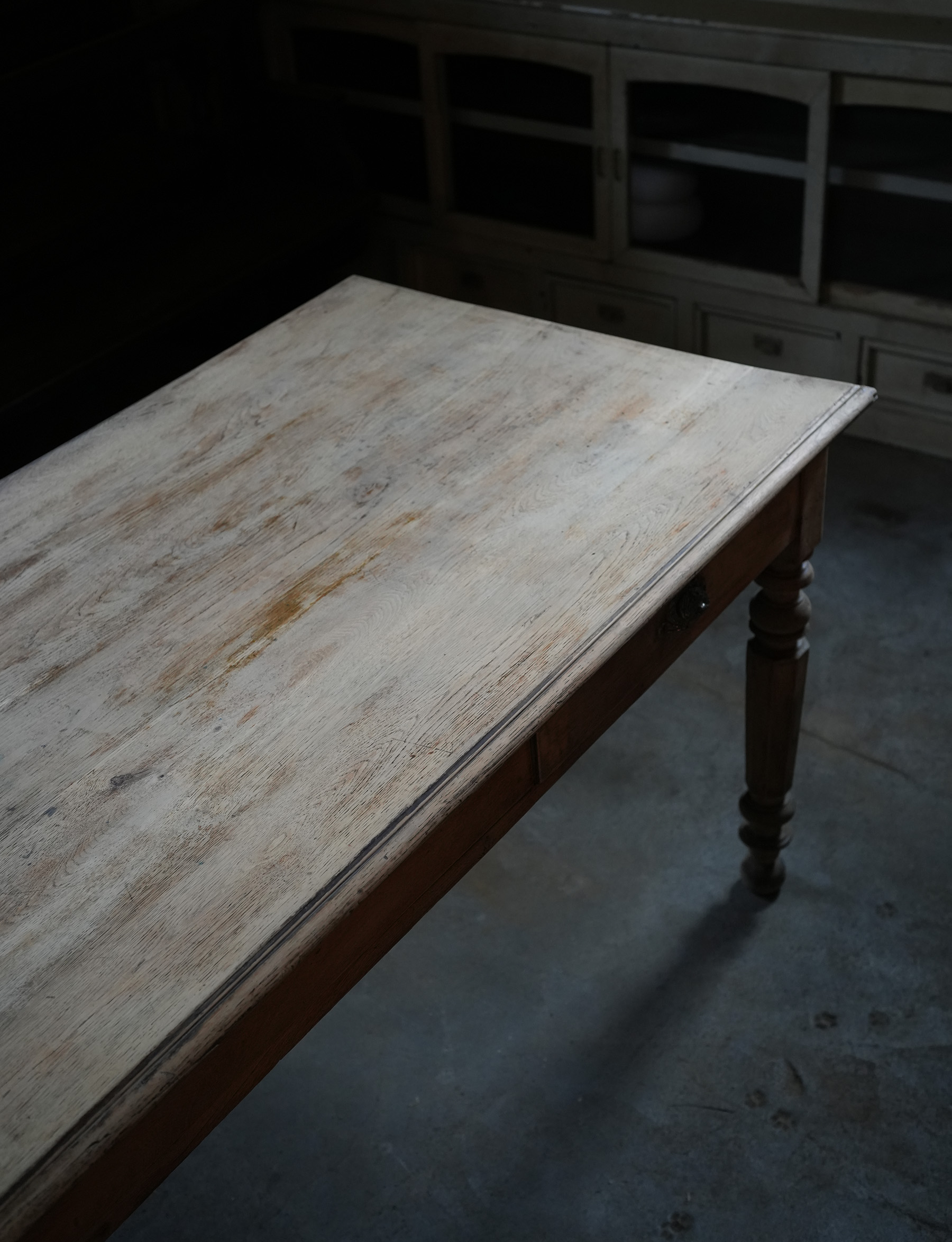 フランスの国有鉄道、SNCFで使われていたワークデスク。重厚な無垢材は、引き出しだけでもどっしり重いのですが、特徴的な面取が組み合わさった脚が軽やかに感じさせてくれます。