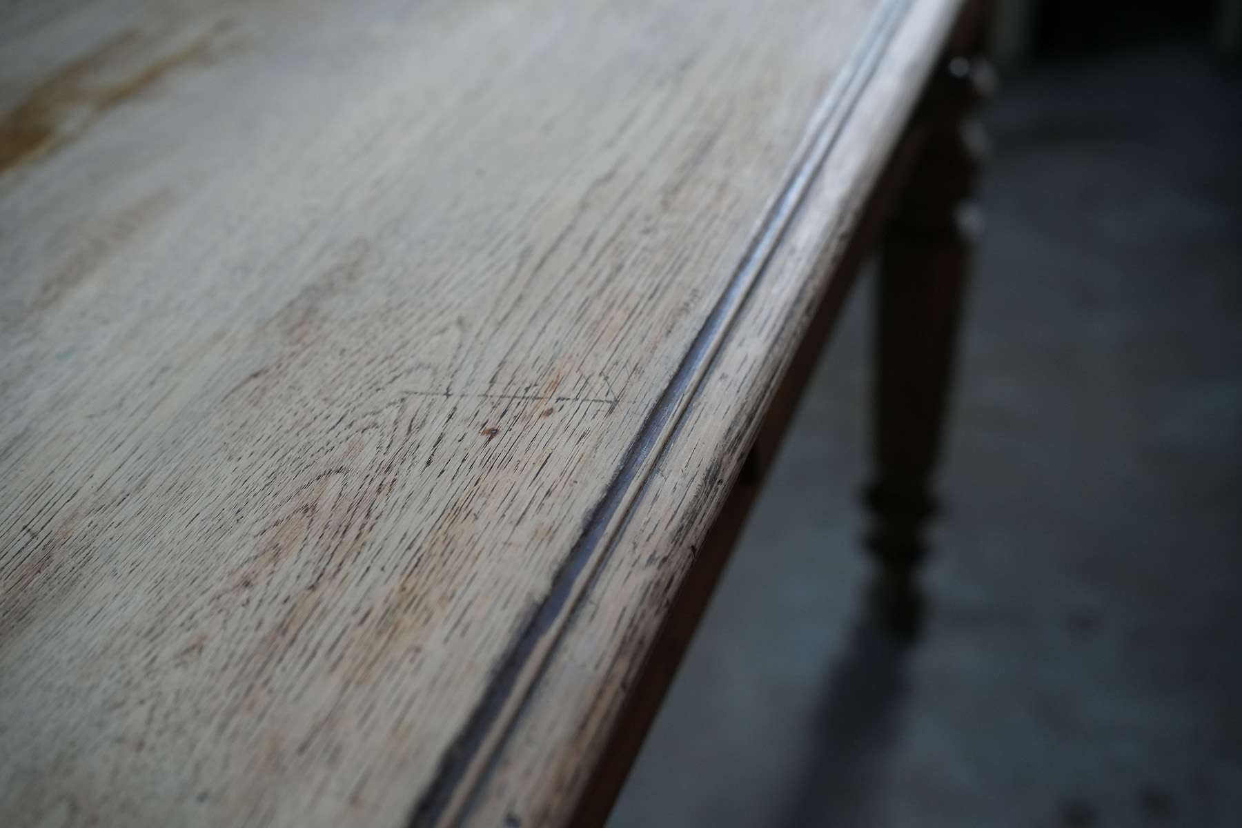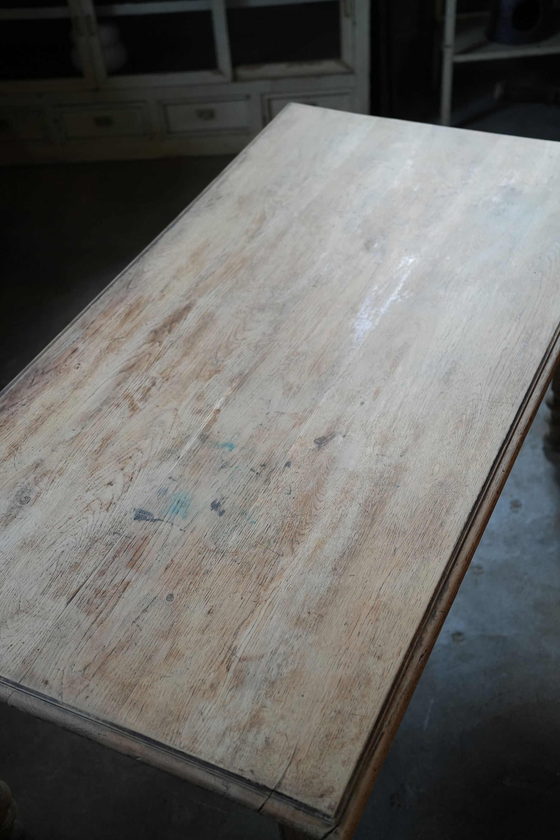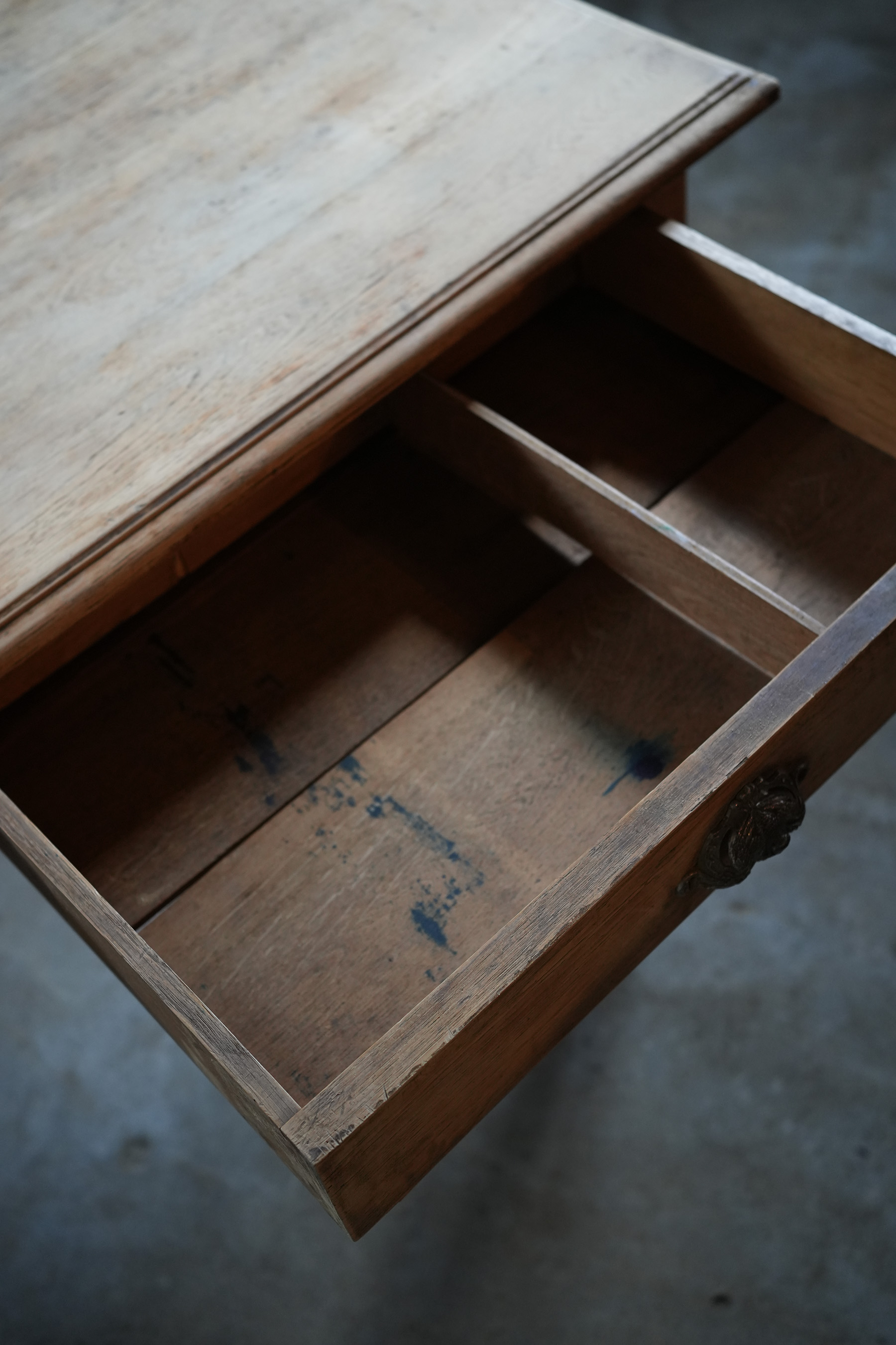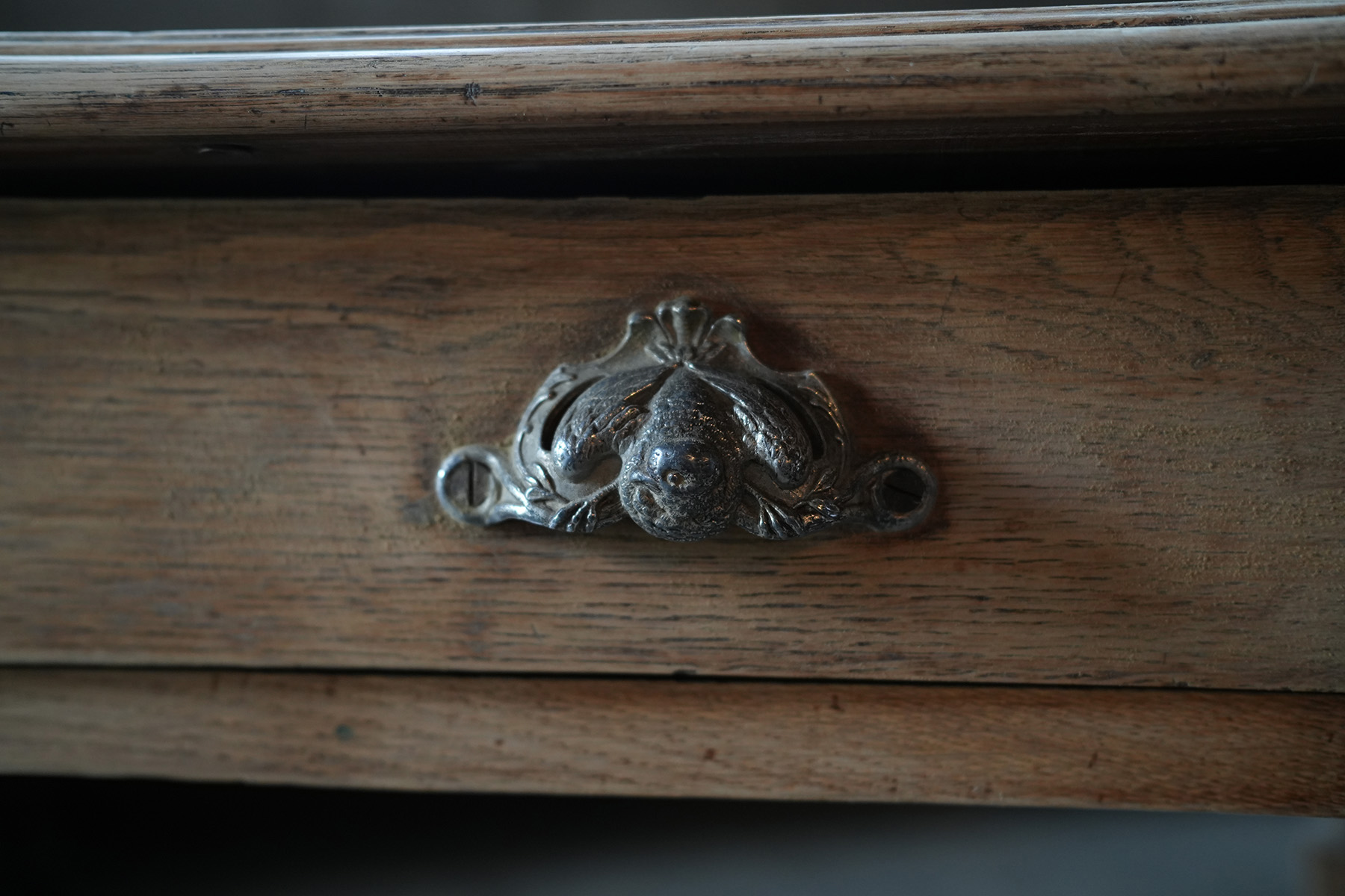 フランスの国有鉄道、SNCFで使われていたワークデスク。重厚な無垢材は、引き出しだけでもどっしり重いのですが、特徴的な面取が組み合わさった脚が軽やかに感じさせてくれます。