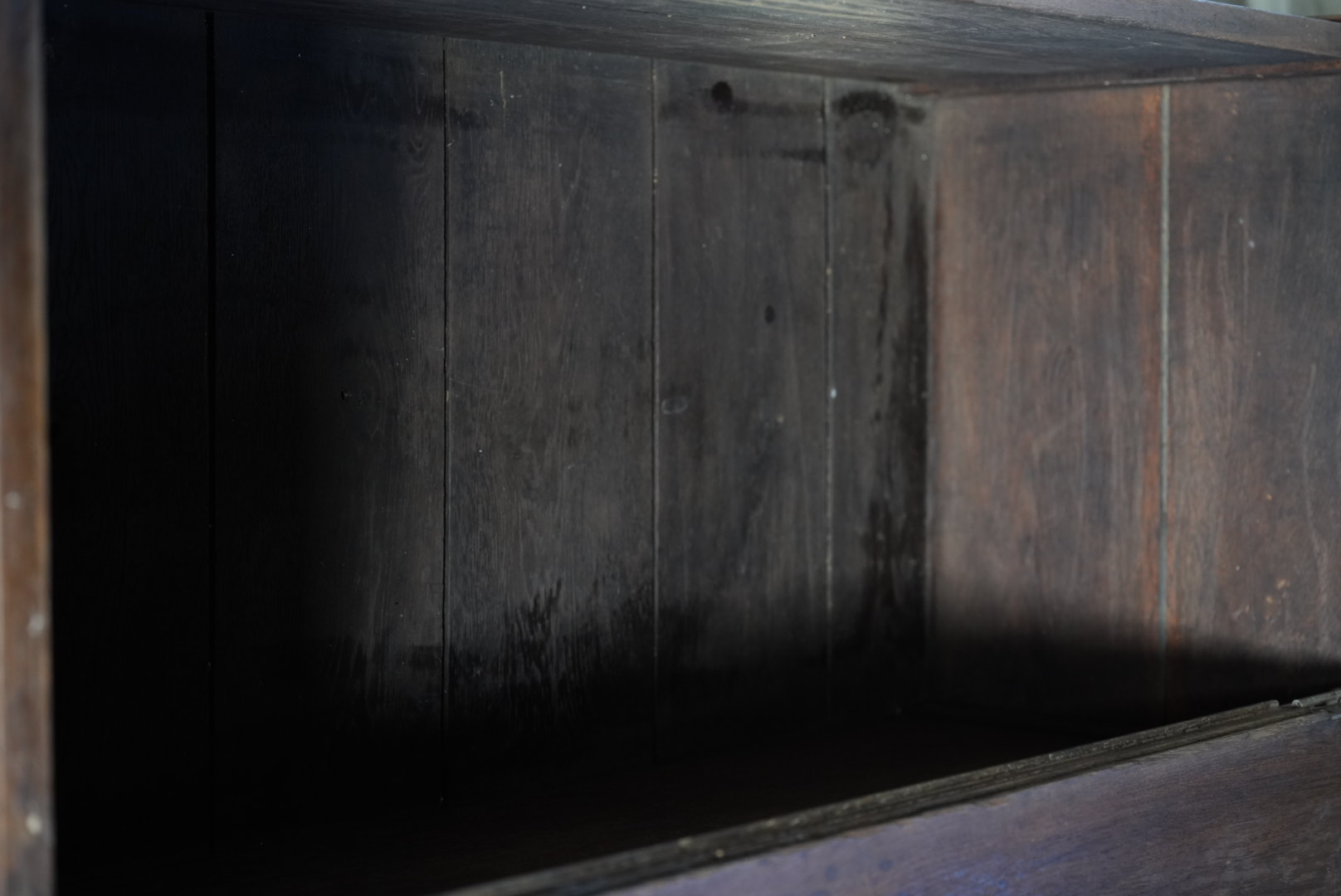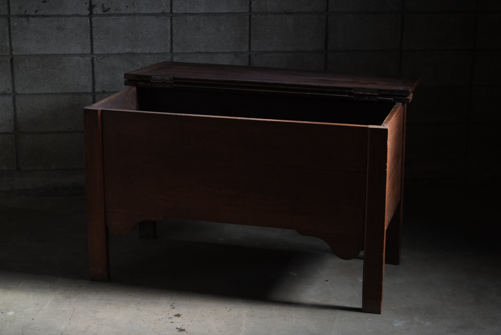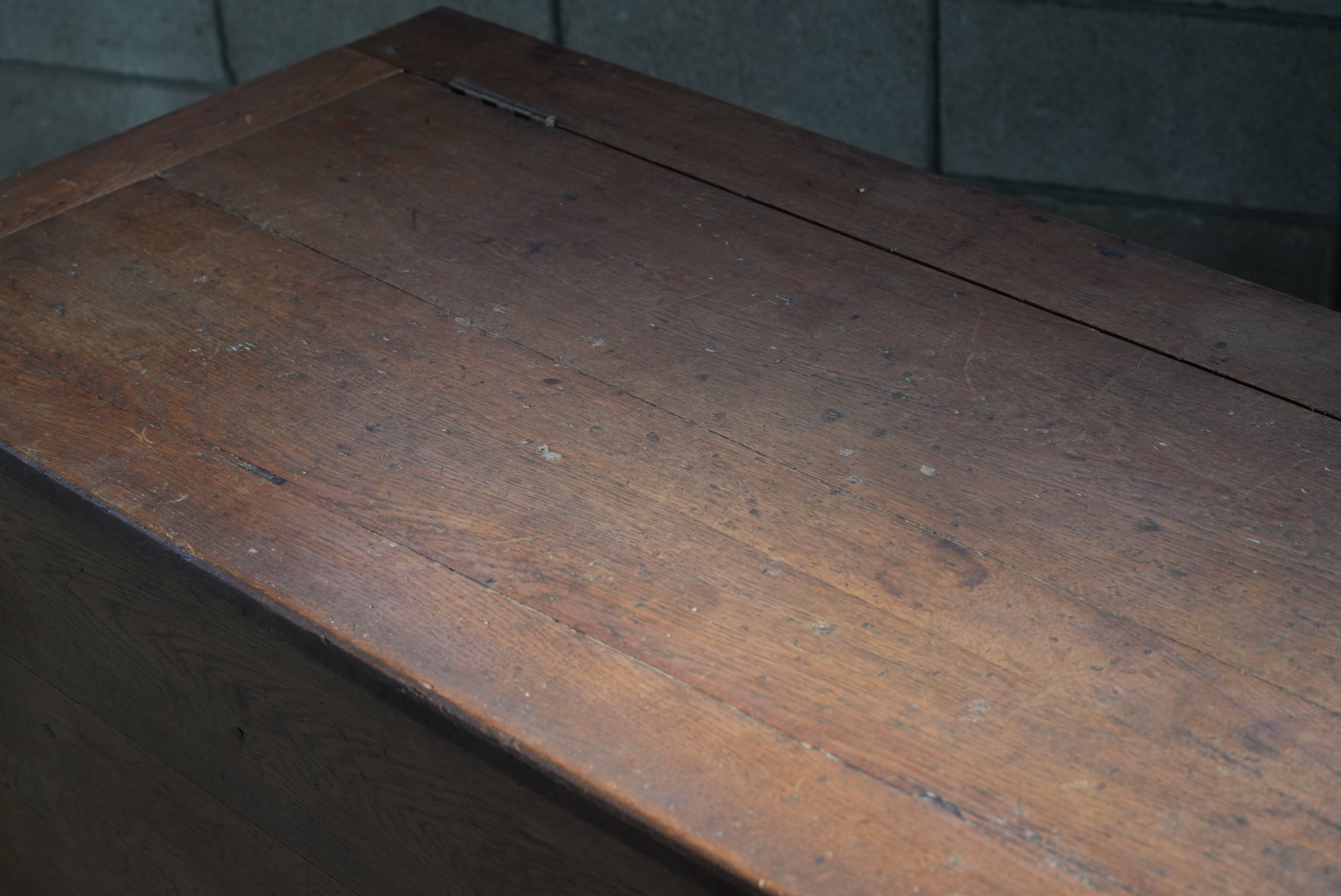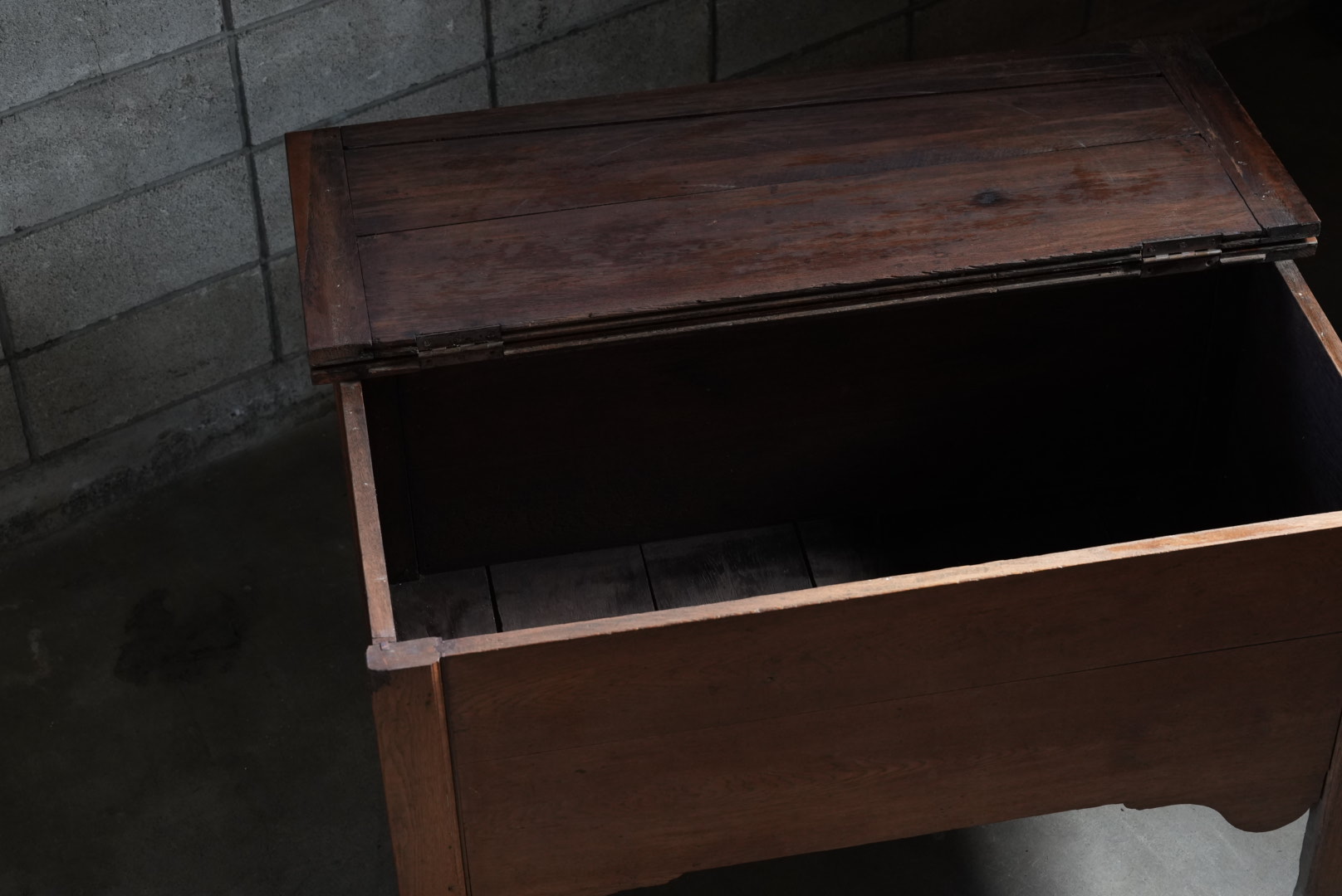 Maie "メ"と呼ばれるフランスの小麦粉貯蔵箱。 上面から開くのみのシンプルな構造です。 収納庫の深さは395mm。 装飾もほぼ無く、素朴な佇まいのミニマルな家具です。 パンの作業台としても使われていたそうです。