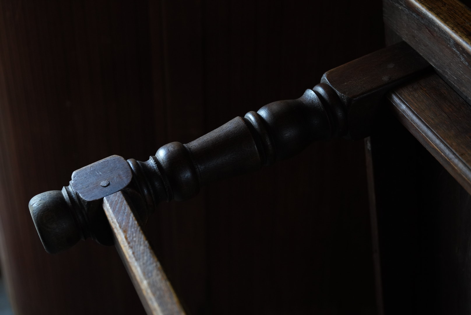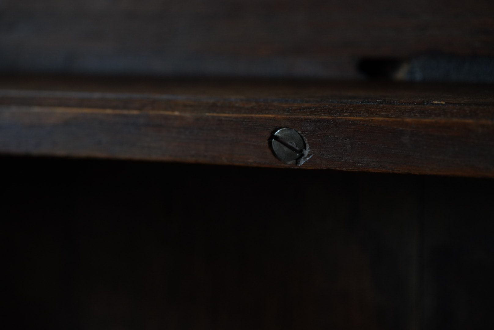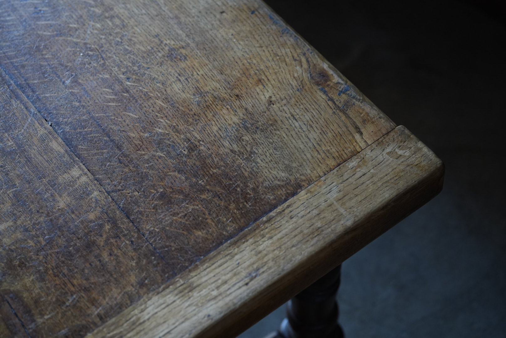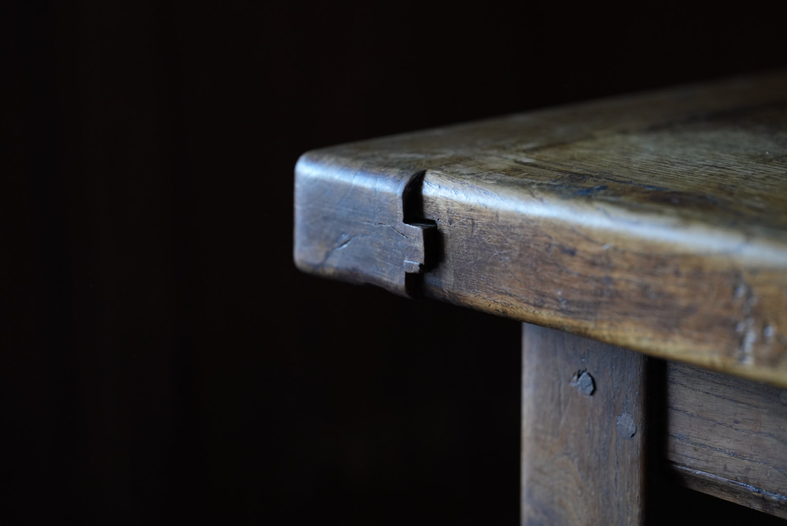 厚みのある45mmの天板の贅沢なローテーブル。太めの脚や全体のバランスからも、 おおらかな存在感となっています。天板は経年変化から縮んでおりますが、横木が反り止めとなっており、歪んでおりません。
