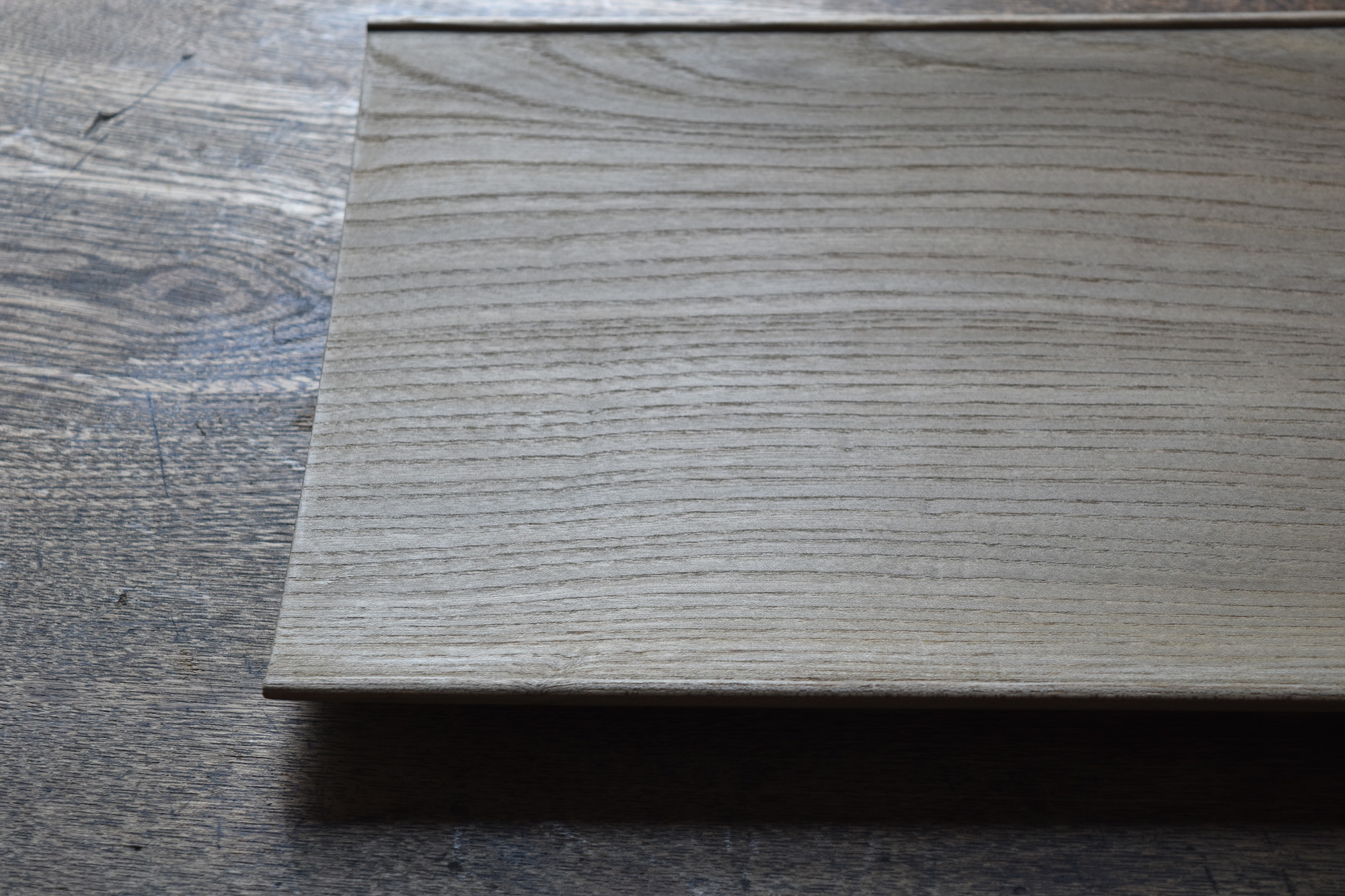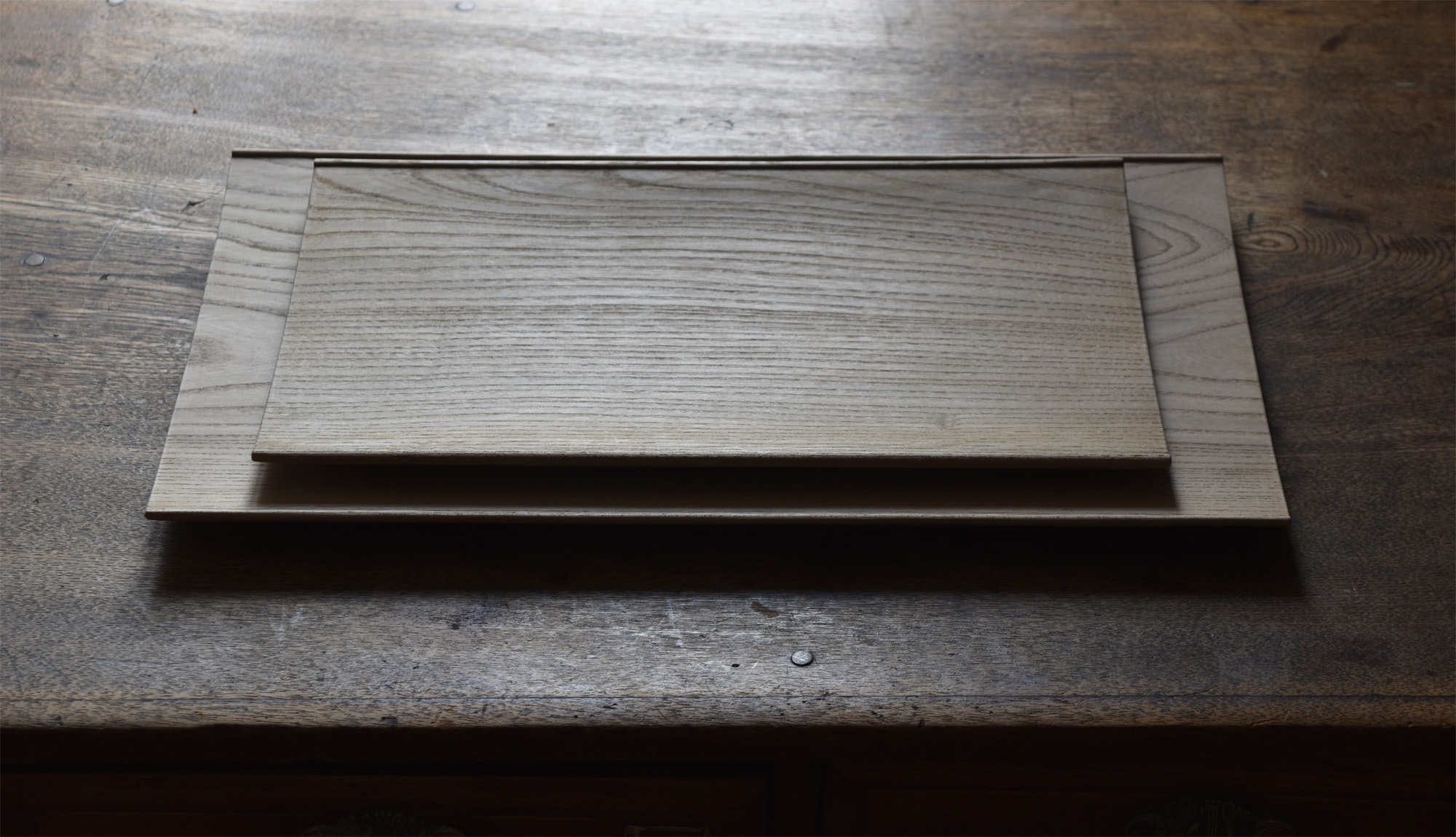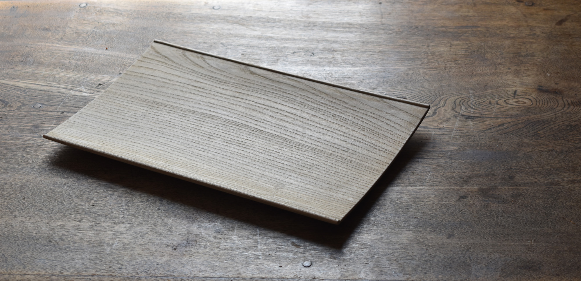 全て手彫りの刳物でありながら細部の美しさと滑らかで品のある造形は、磨き出された木の器と形容できると思います。一見シンプルでありながらも個性的な造形なのです。中央に向かって滑らかに窪む曲面は料理映えがとても良いのです。鉄媒染とは木に含まれるタンニンと鉄を反応させ黒く染め上げる方法です。オイル等よりも素地の肌触りに近いです。鉄媒染液は錆鉄+酢酸+水でつくられます。草木染めにも使われる自然な仕上げ方法です。器としては油シミなどが付着しやすいのですが、経年変化を楽しみながらお使い頂ければと思います。