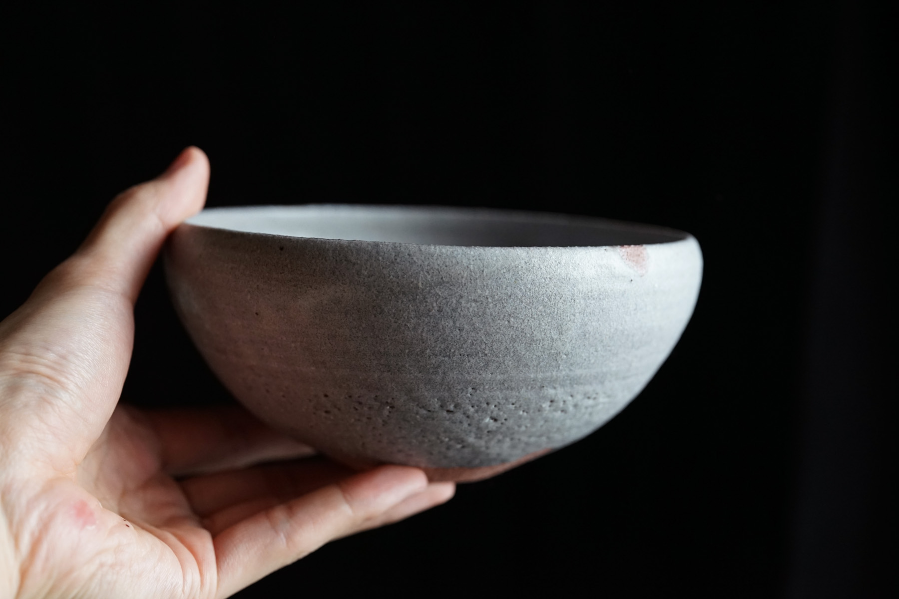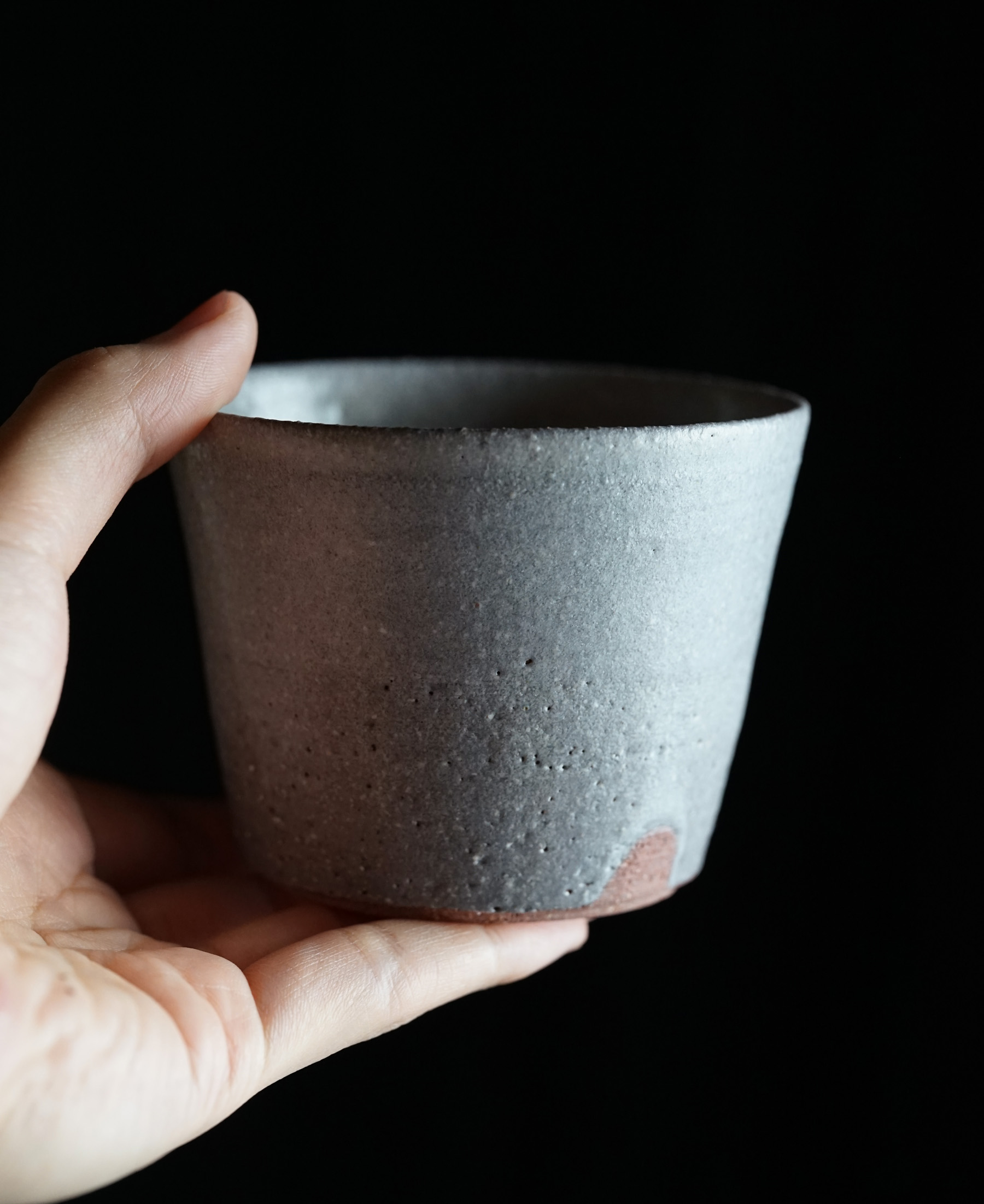 description : 痕定手の作品と同様の土ですが、酸化焼成にて焼かれた白釉の作品は、土色と相まって薄紫色の優しい柔らかな肌合い。