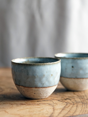 藁灰釉砂化粧茶杯
