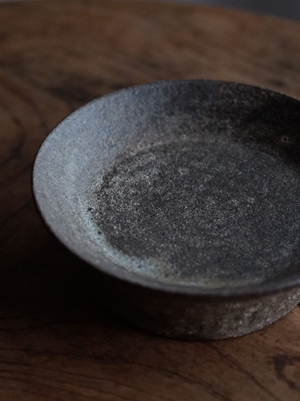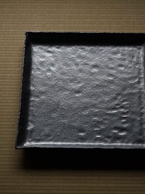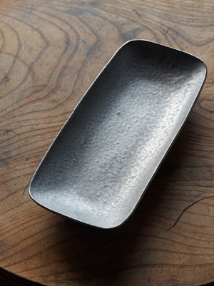 銀彩焼締高台皿