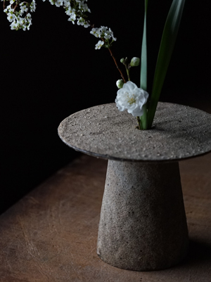 白灰化粧円盤付花器