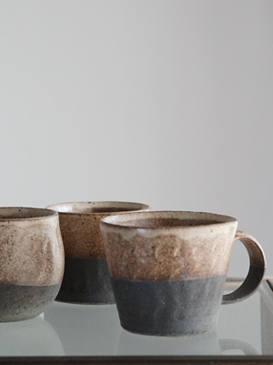 チタン釉・黒焼締マグカップ