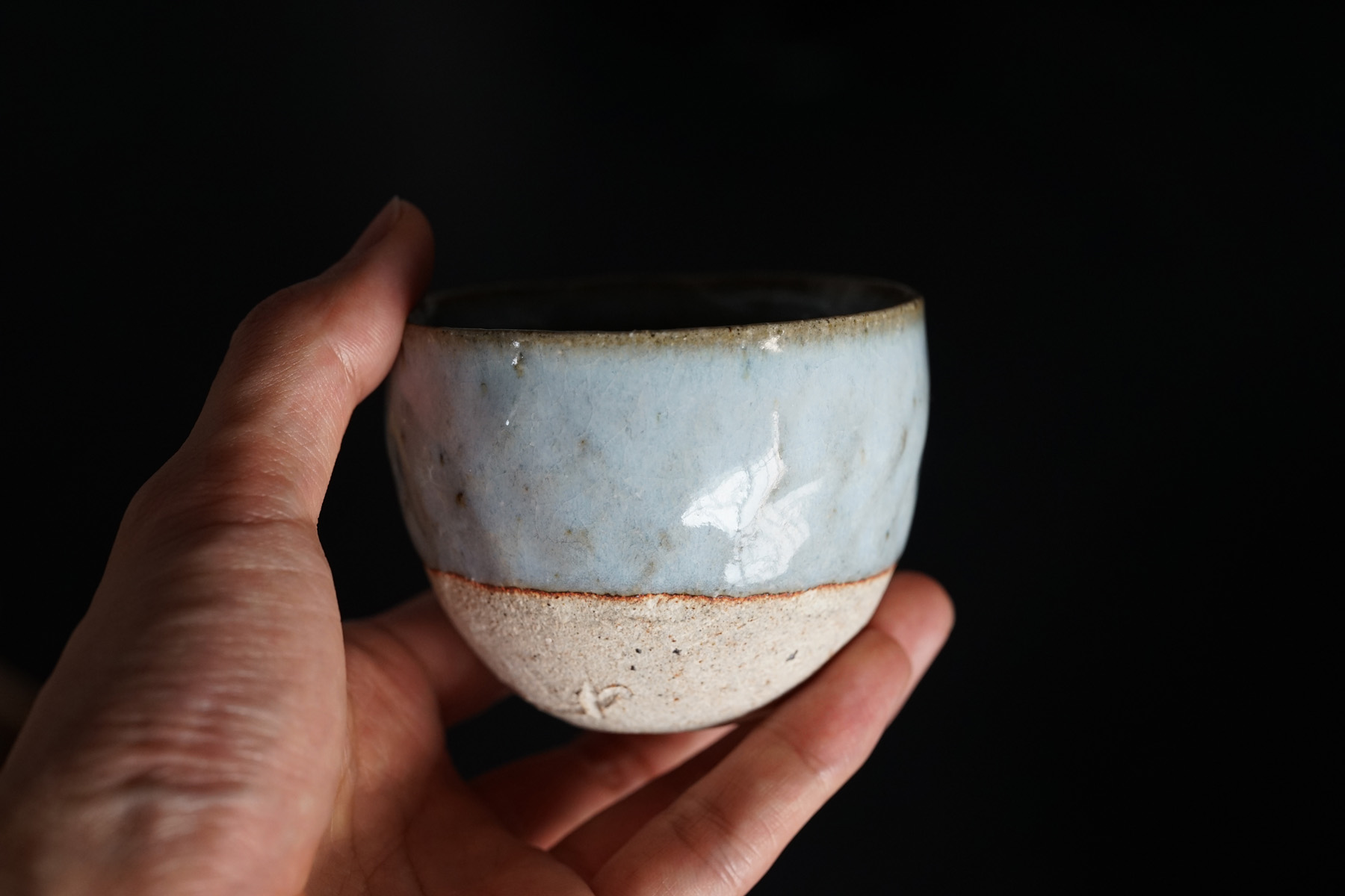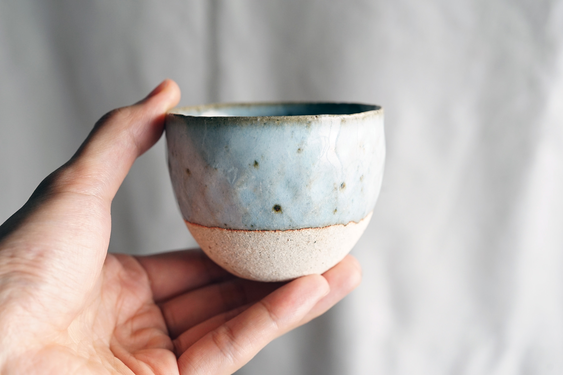 藁灰釉砂化粧茶杯