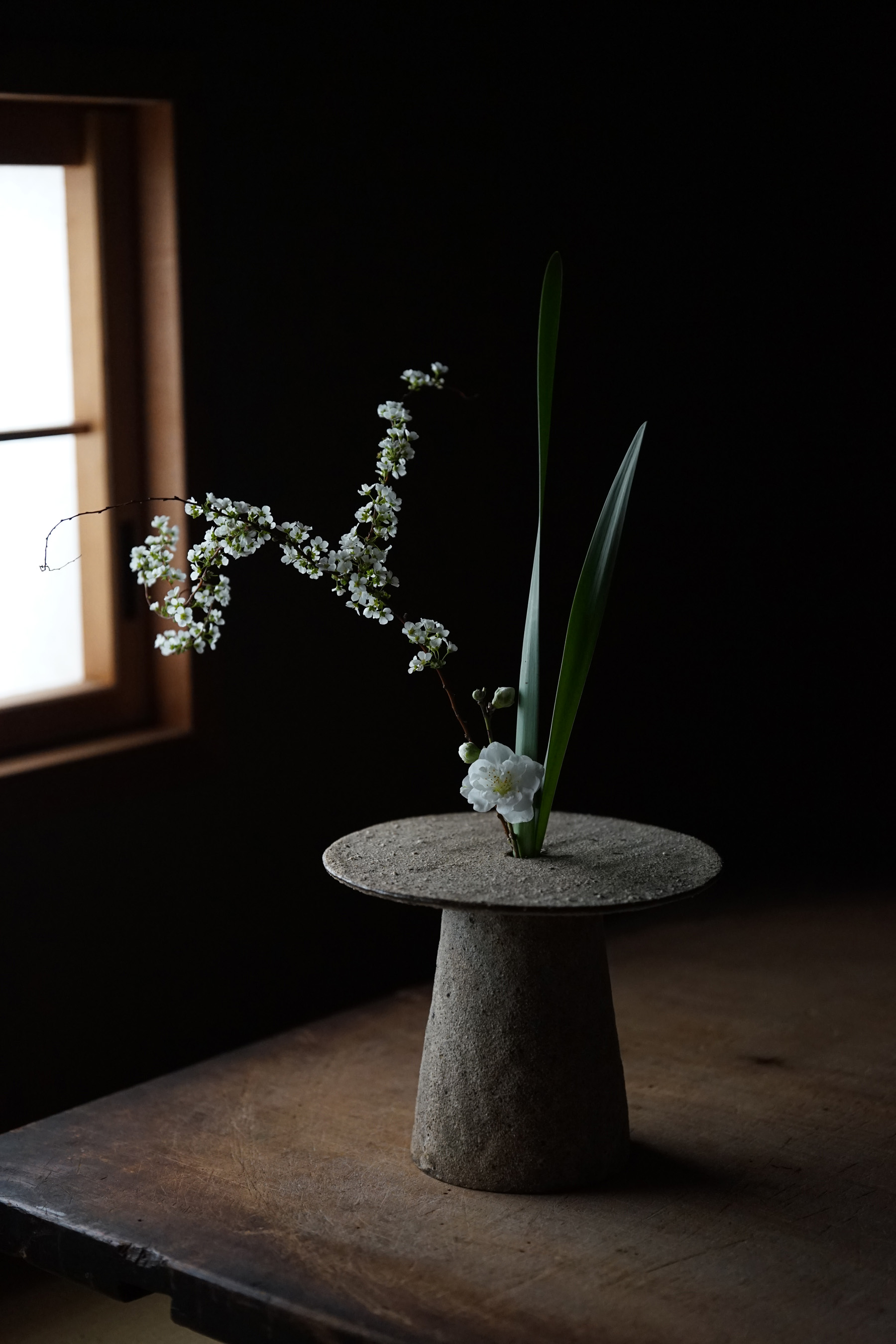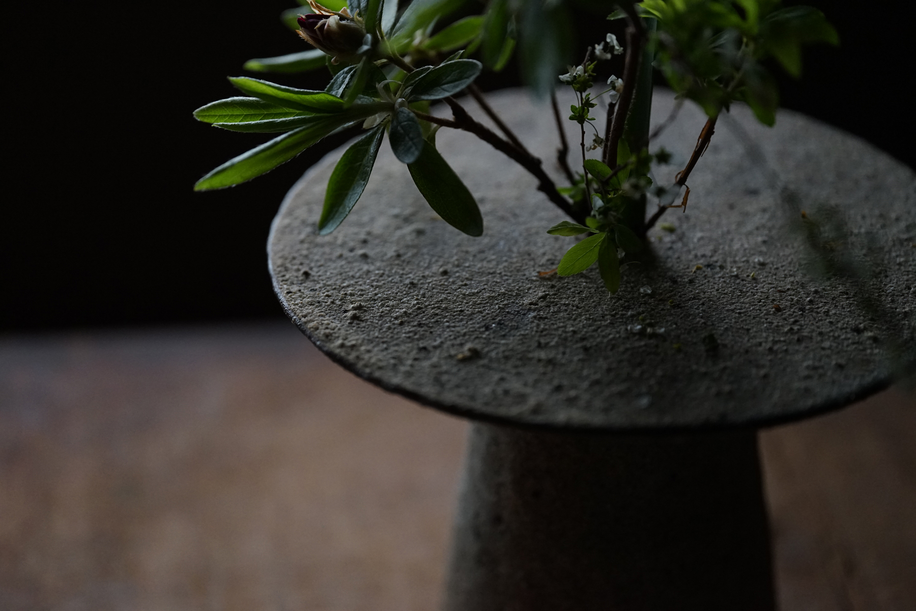 白灰化粧円盤付花器