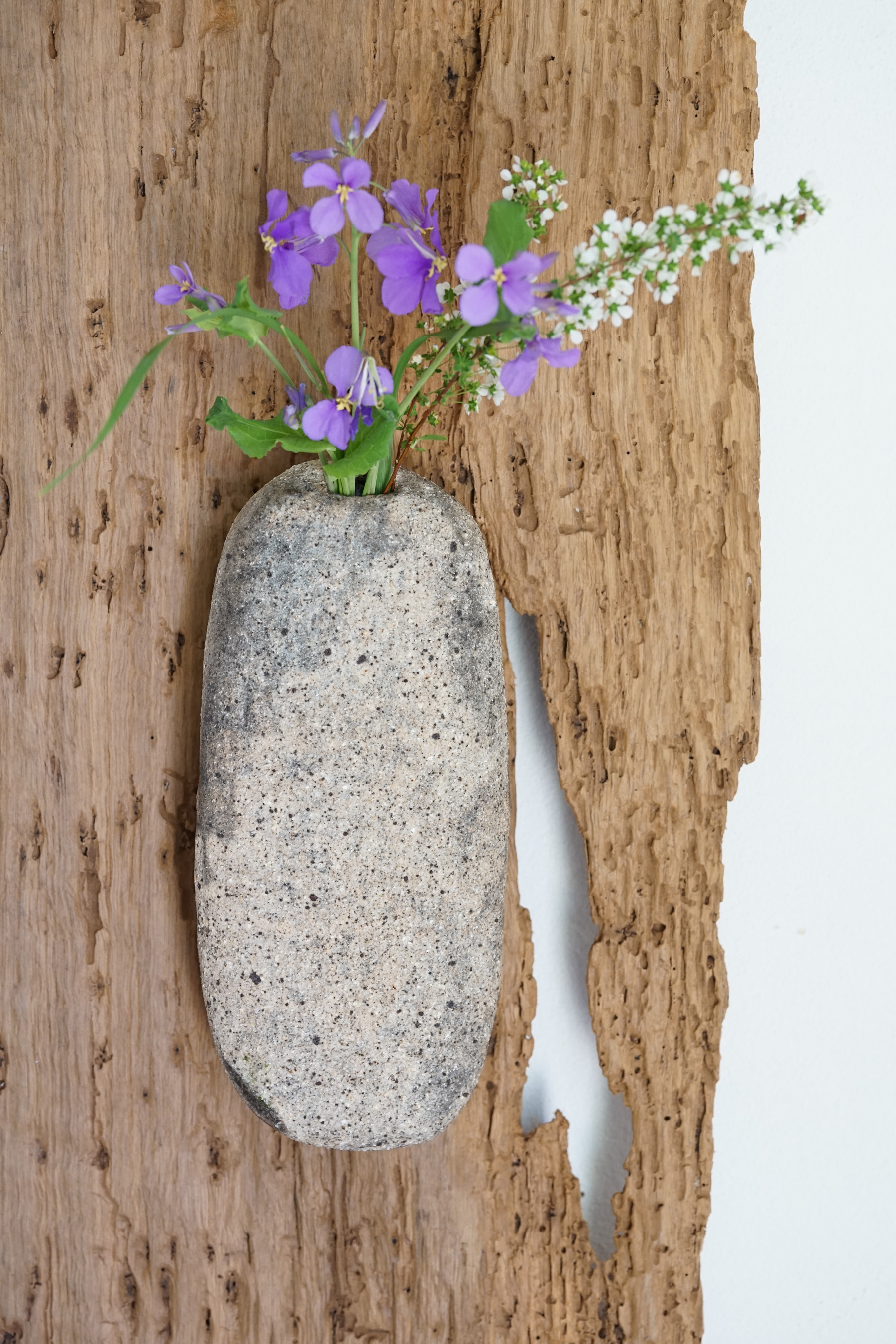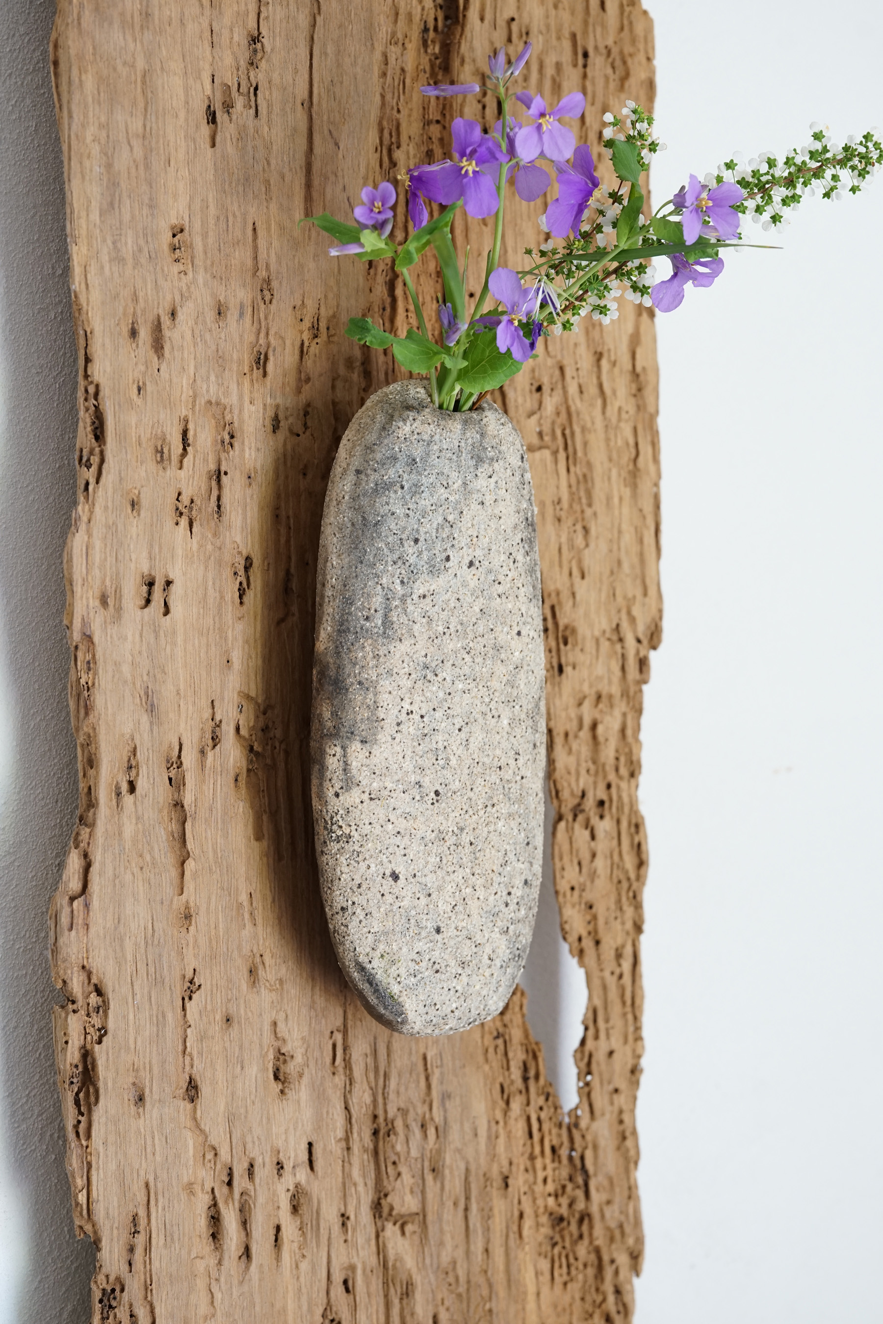 白灰化粧掛花入