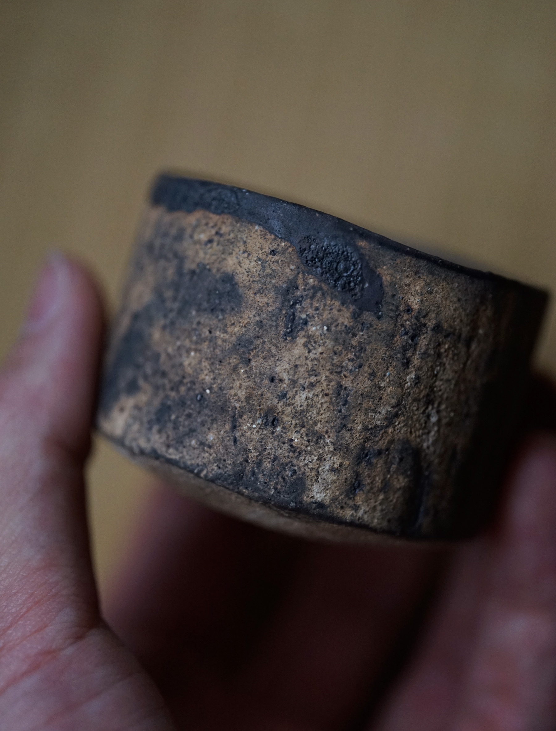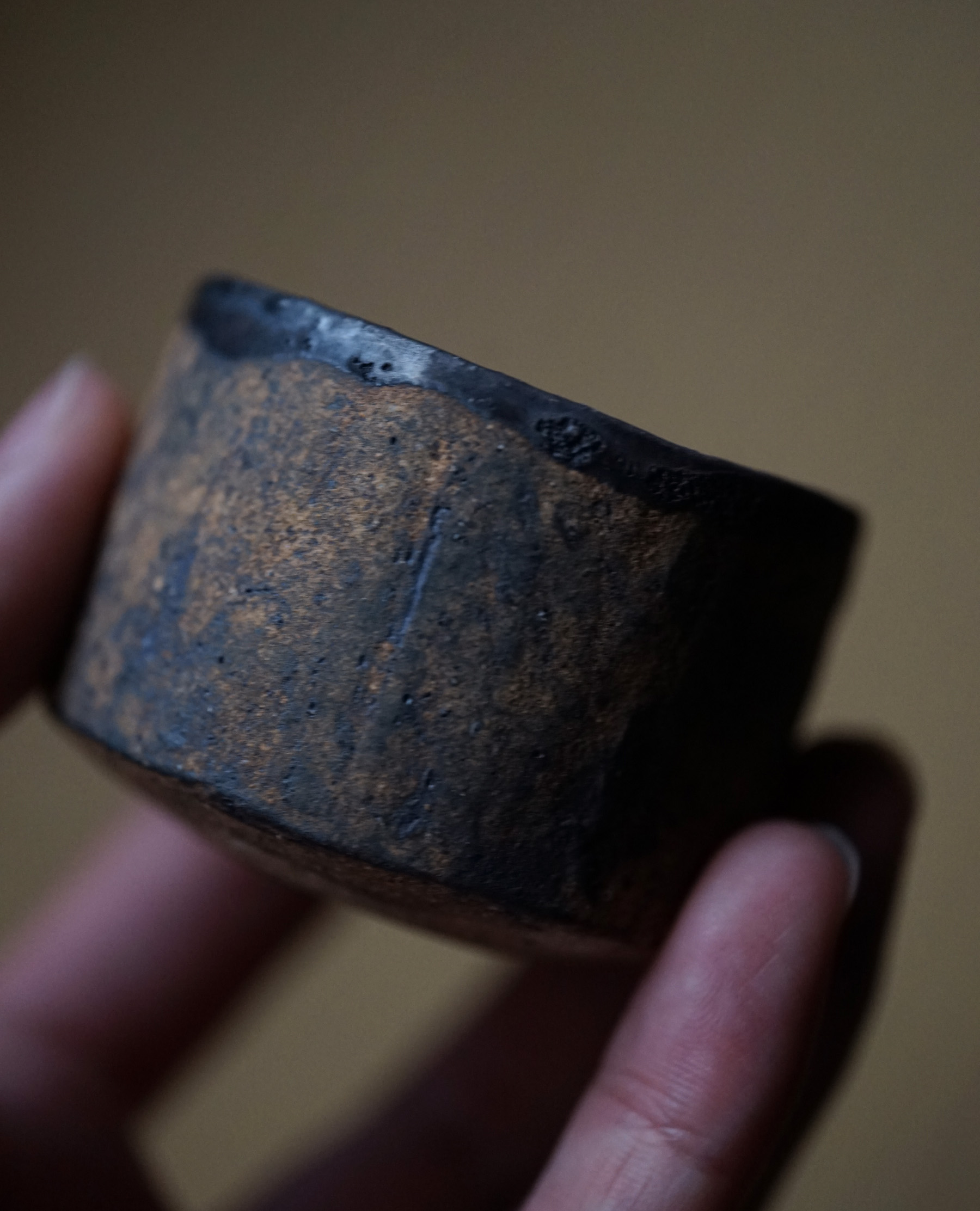 砂化粧内黒鉄釉酒盃