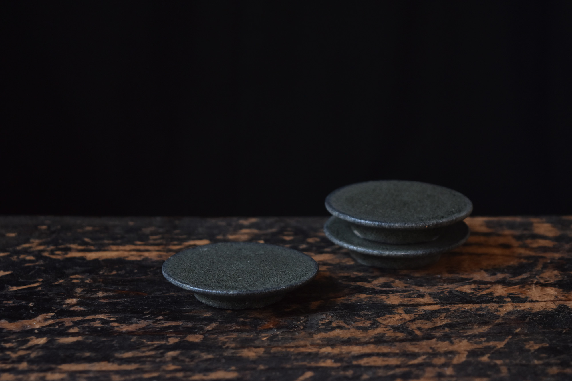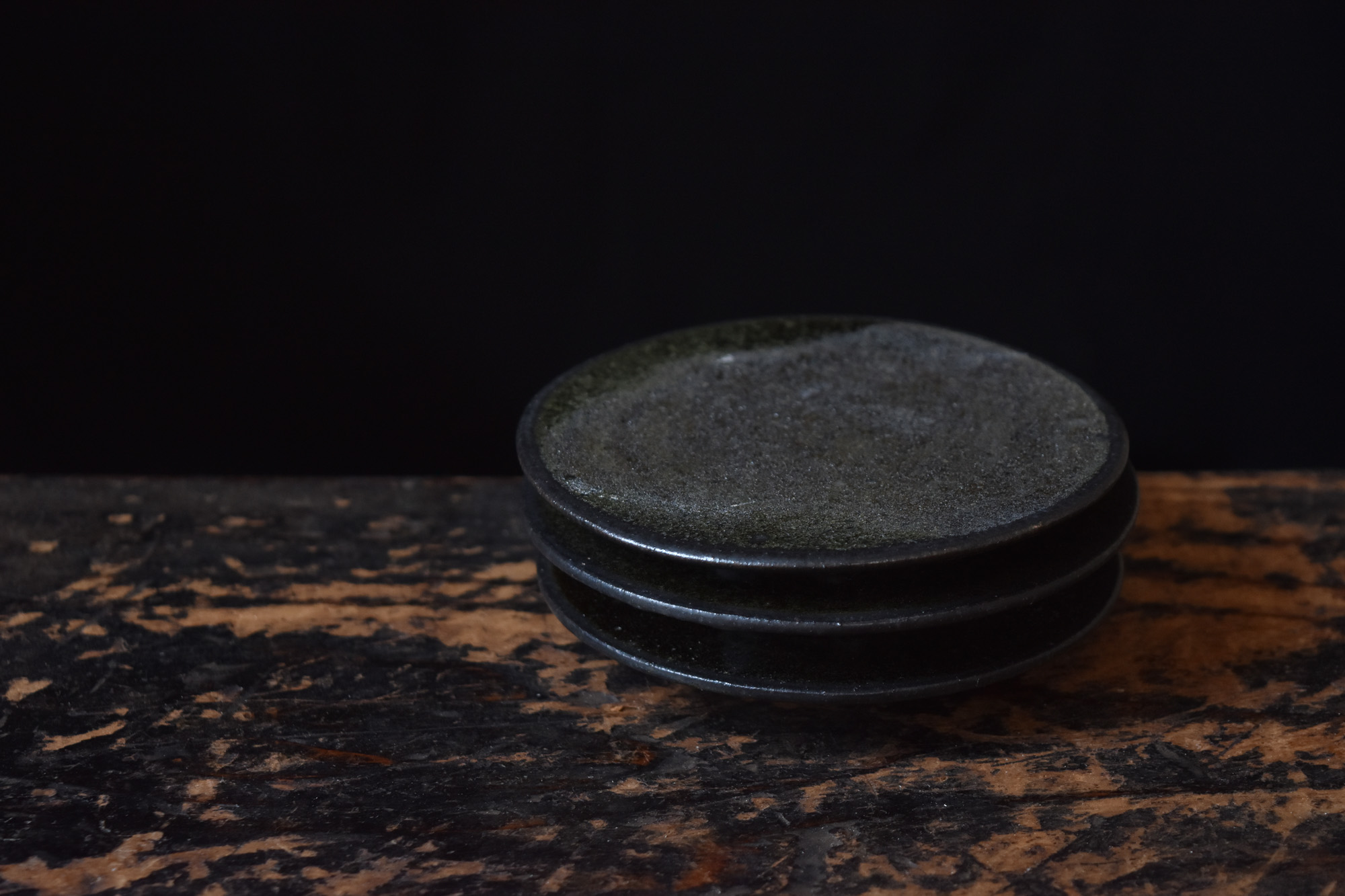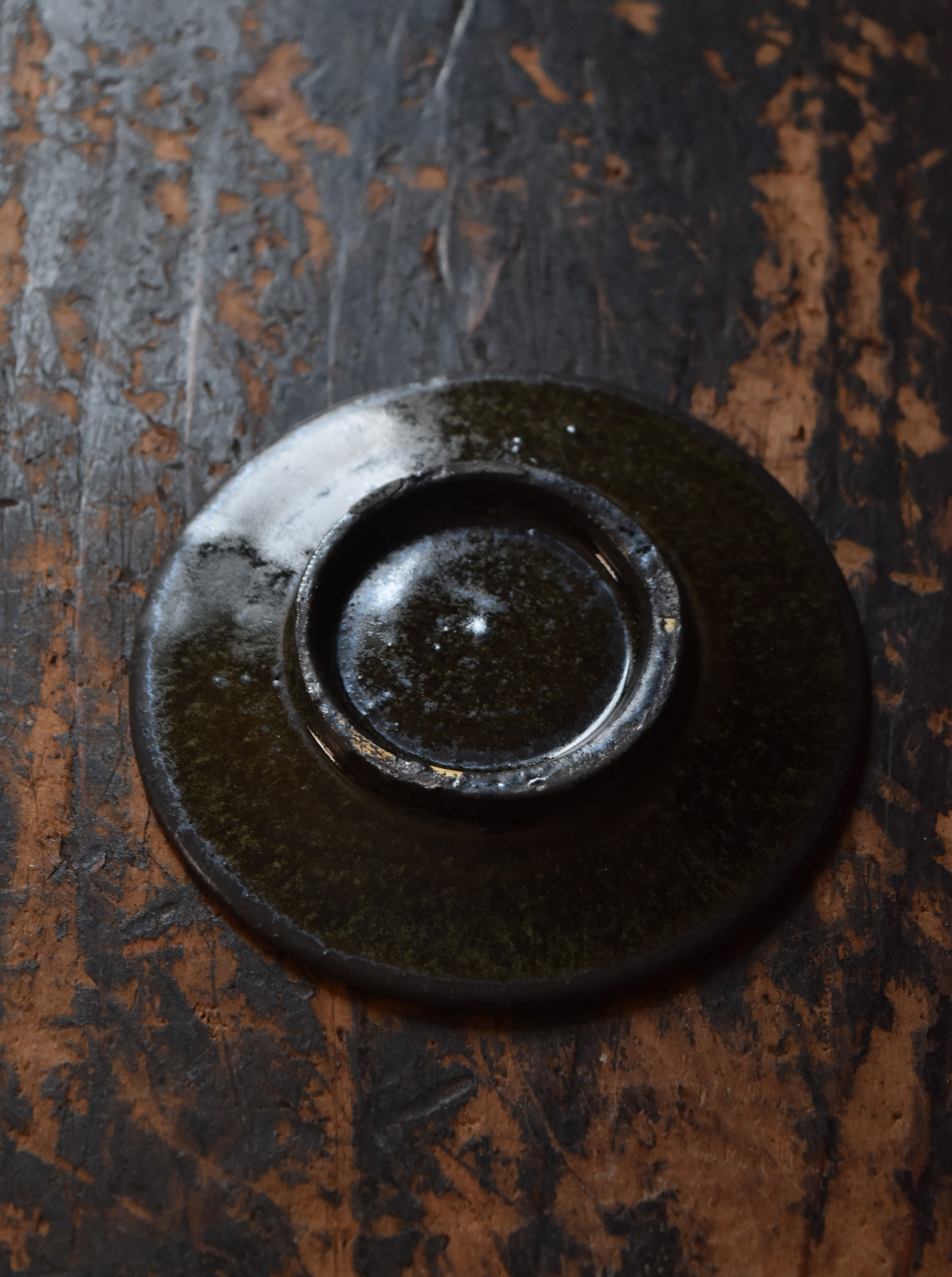 鉄釉台皿