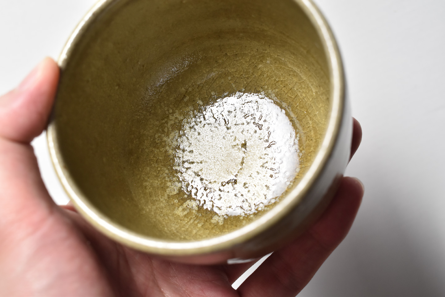 見込みに美しい溜まりのできた松灰が美しい作品です。茶碗としても。