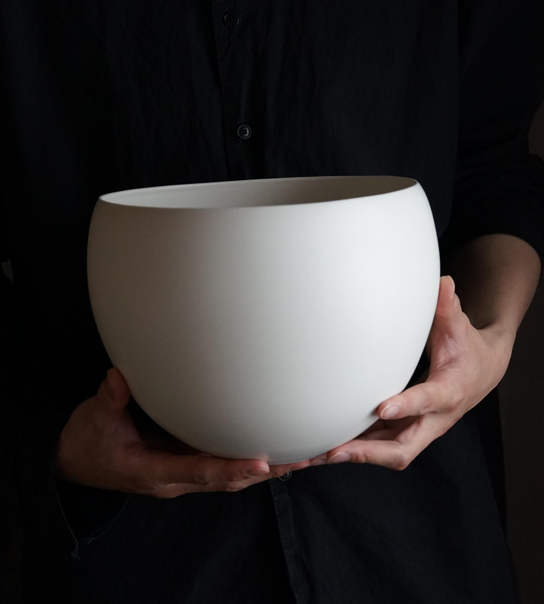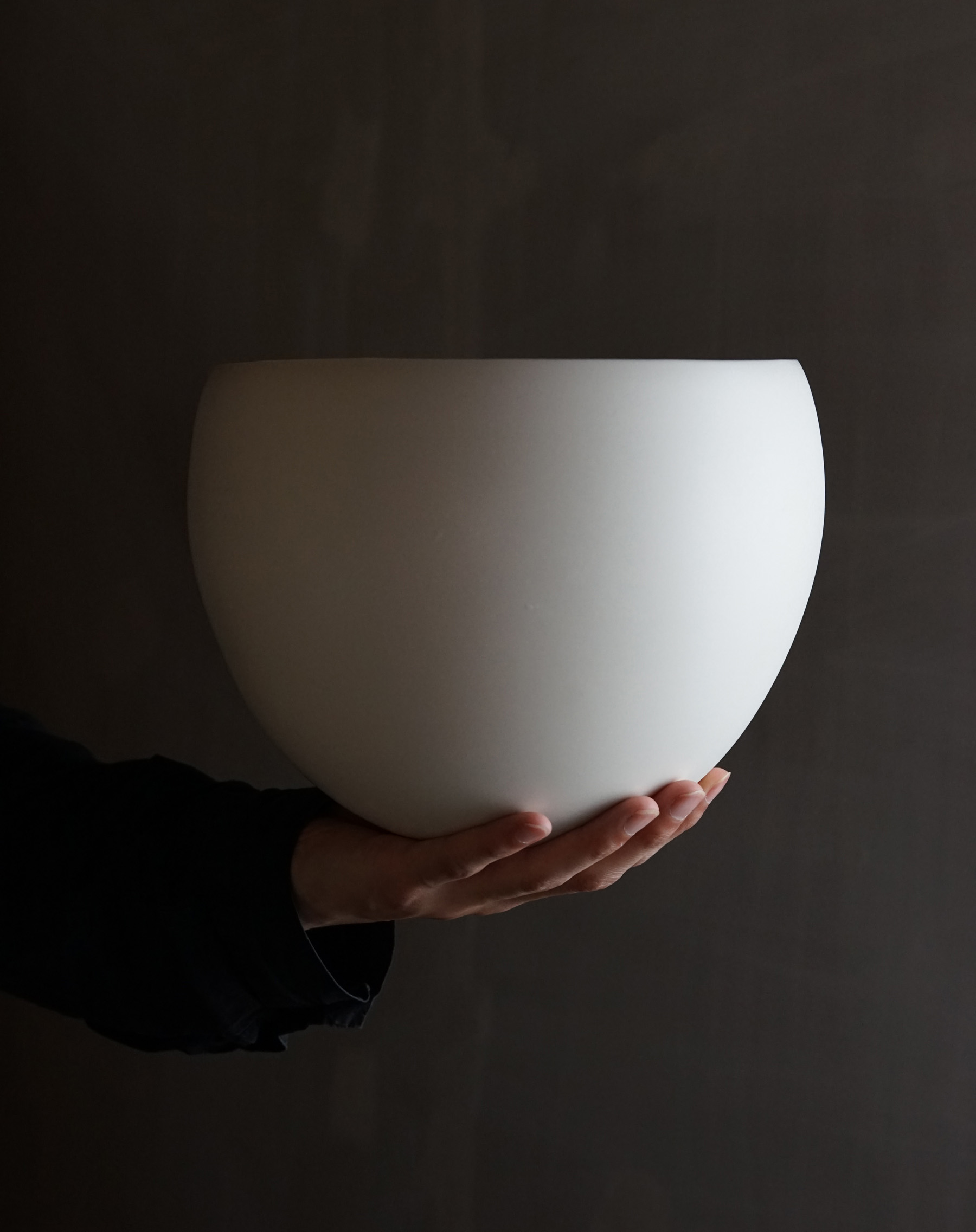 大きな丸鉢は光を受け止めてくれるような、そんな存在感。