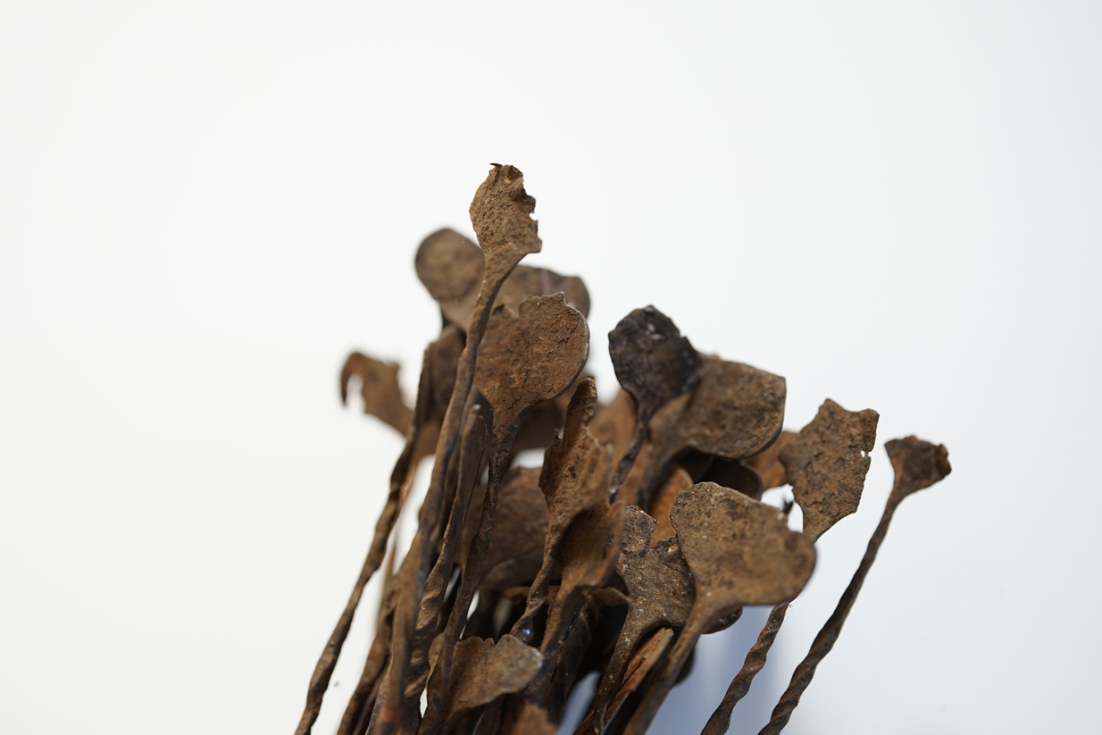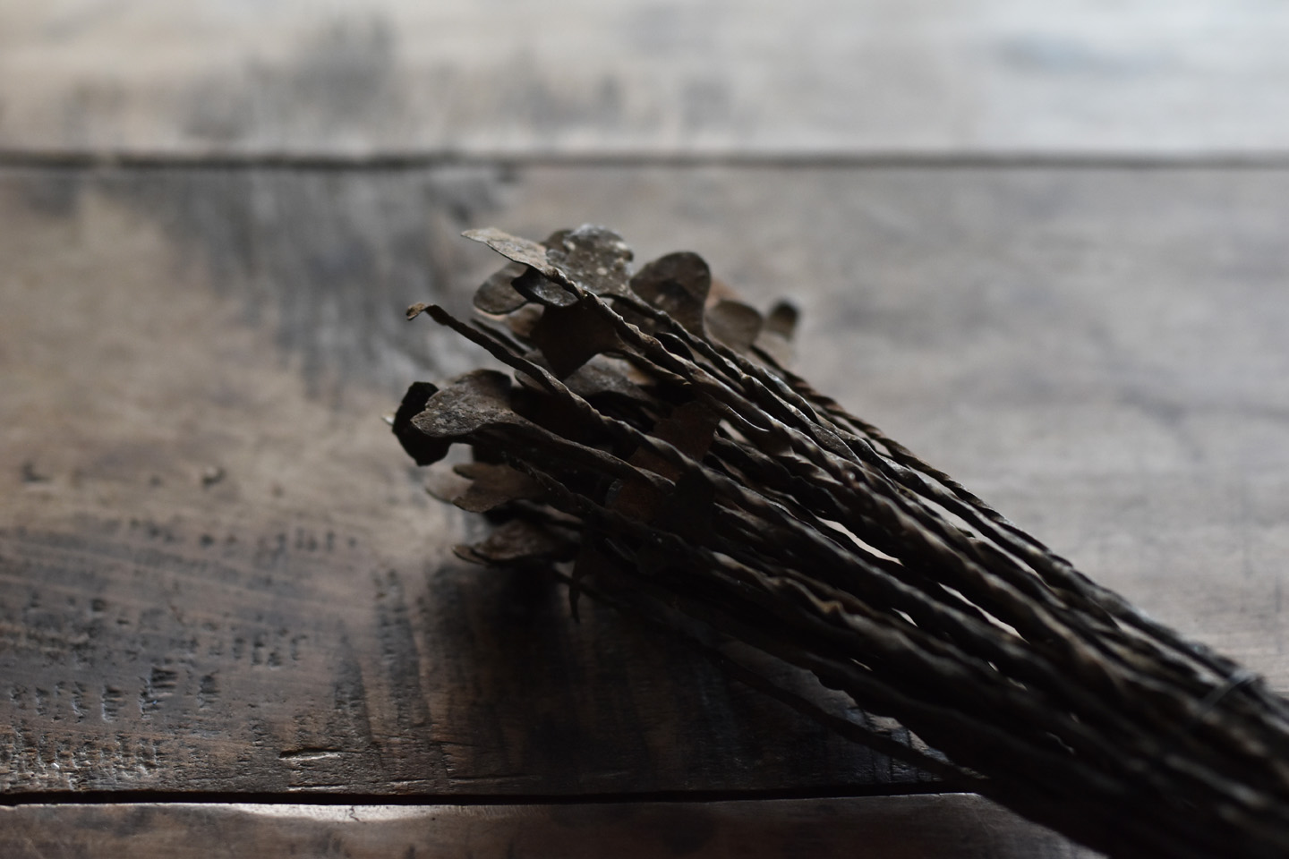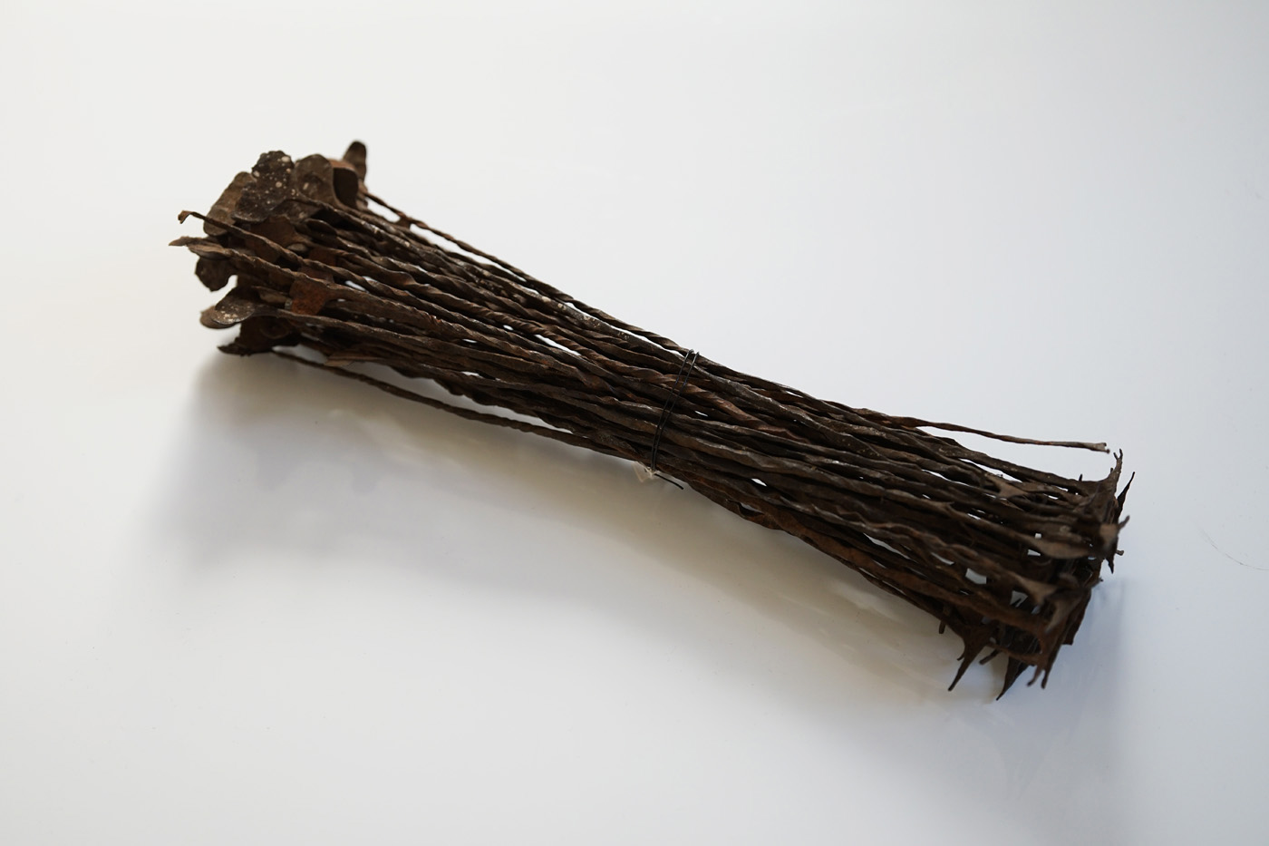 こちらは20本を一束とし、牛一頭は100束で交換できたそうです。通貨としての使用が中止された後はアフリカ固有の儀式のなかで価値のあるものと見なされたそうです。 また、お墓に置かれ、死者の魂を繋ぐと信じられていました。時代の流れから様々なものと変化しましたが、精神性が宿ったオブジェクトと思います。そのようなことから"money with a soul"と呼ばれているそう。