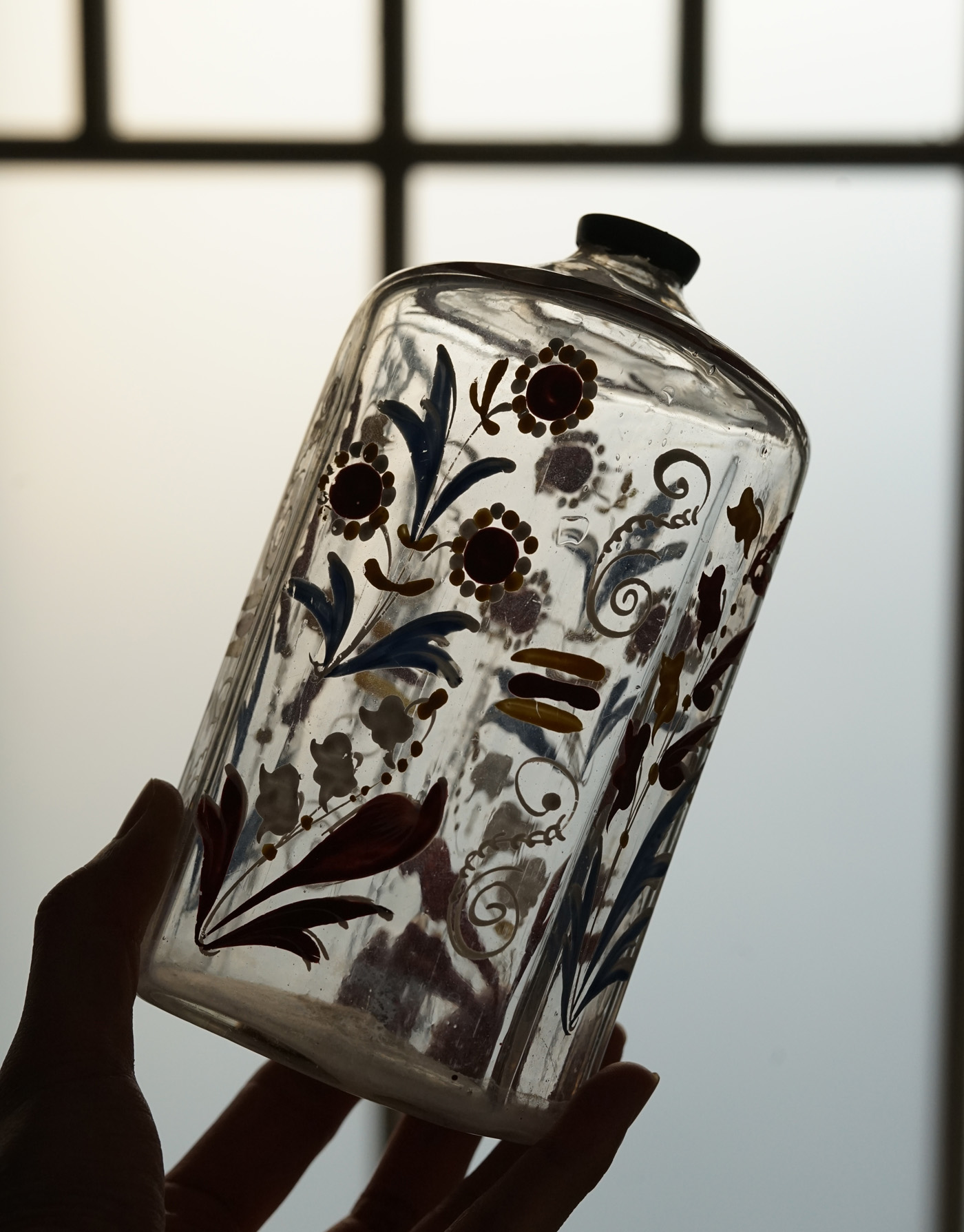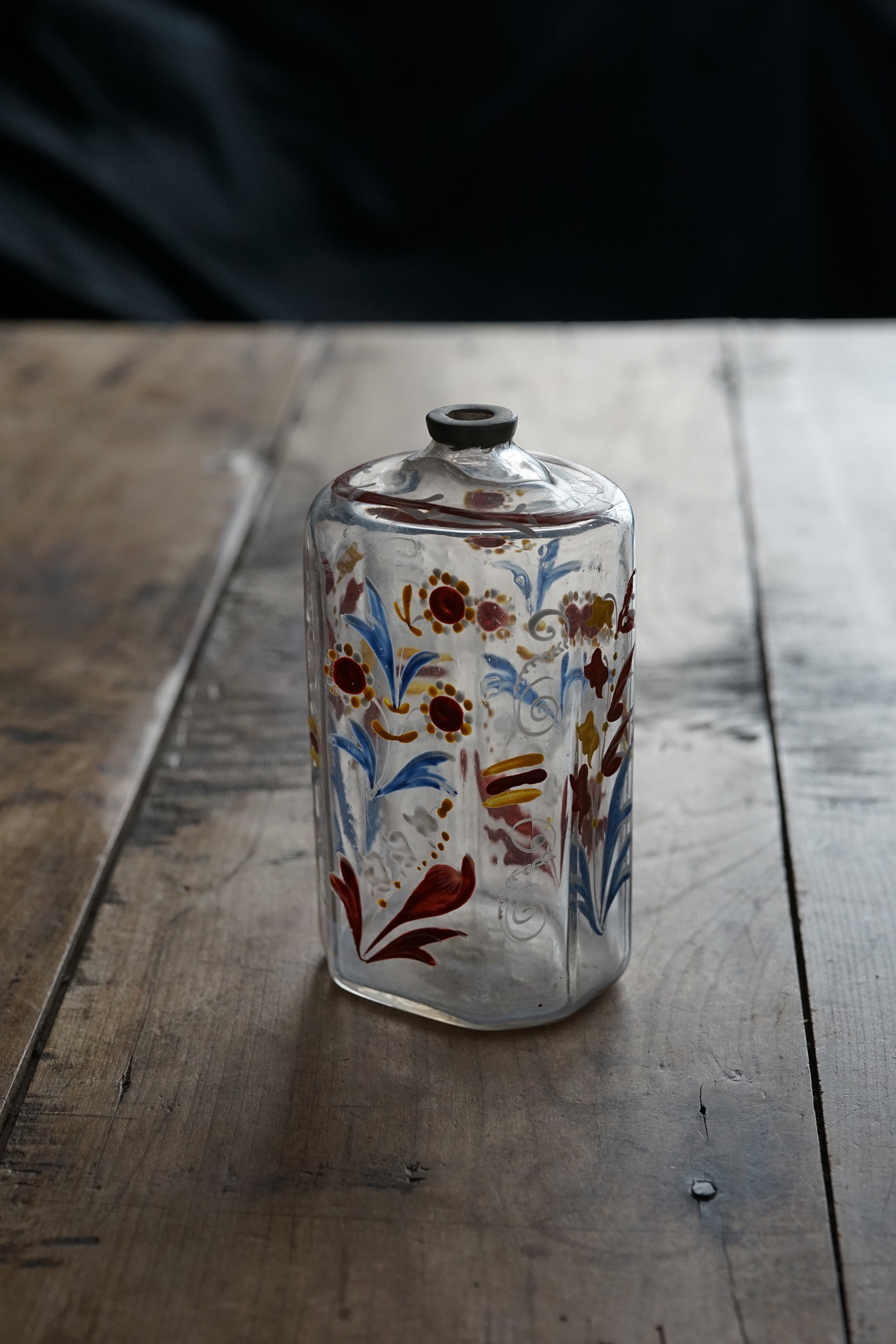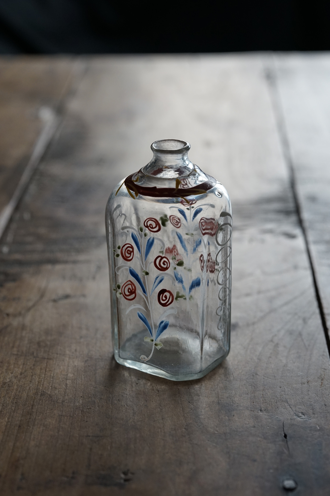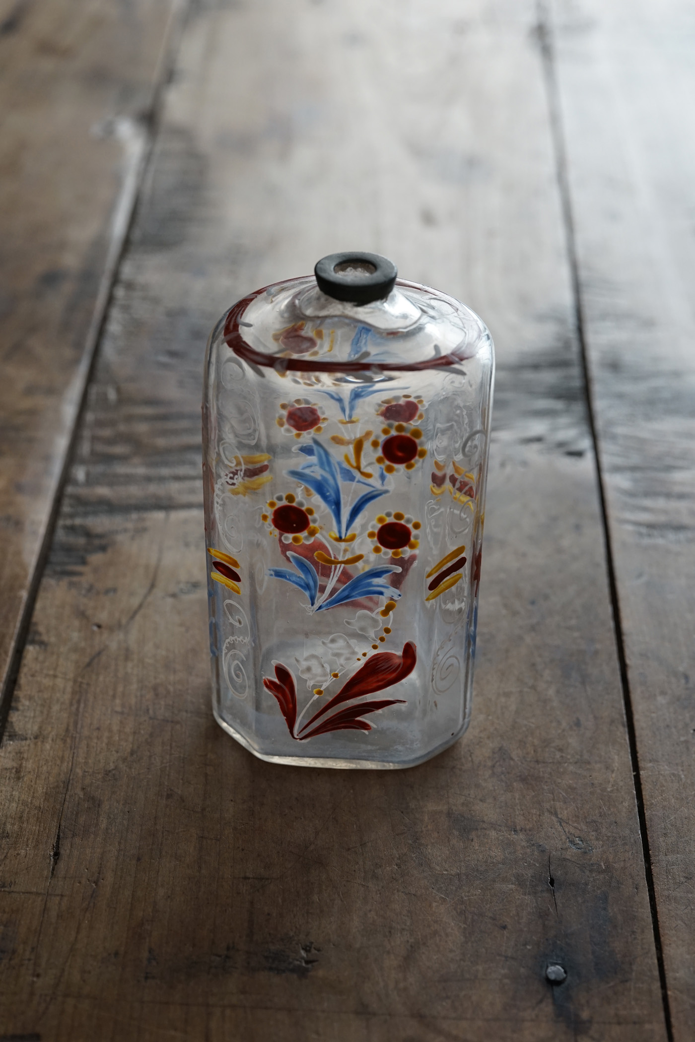 型吹きガラスのエナメル彩の婚礼用ボトル / 18th.C ・France
