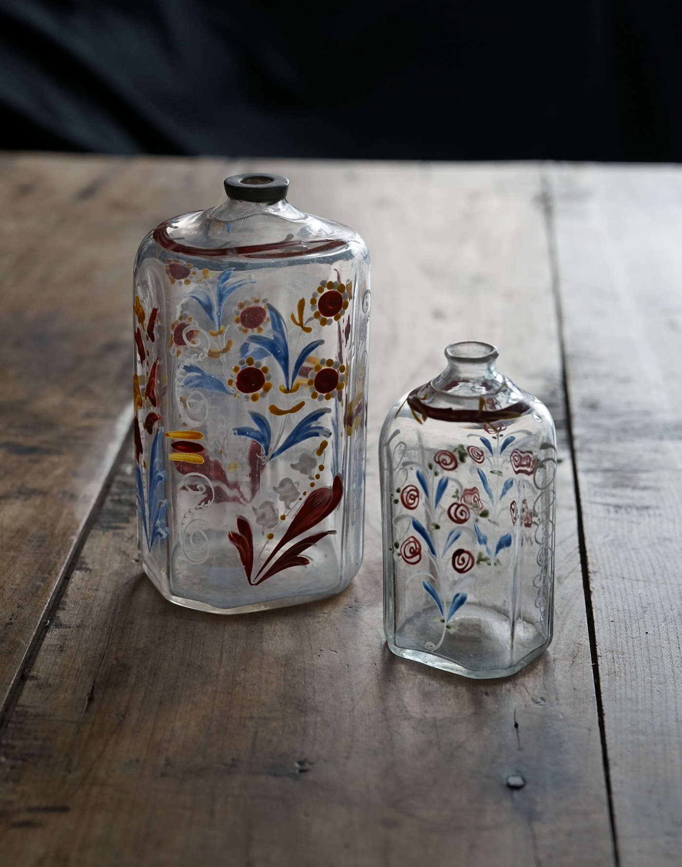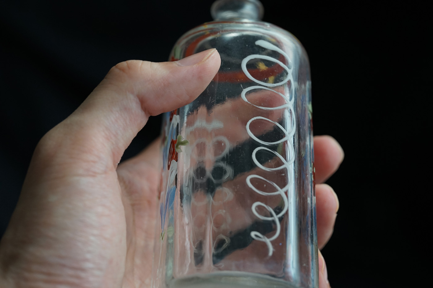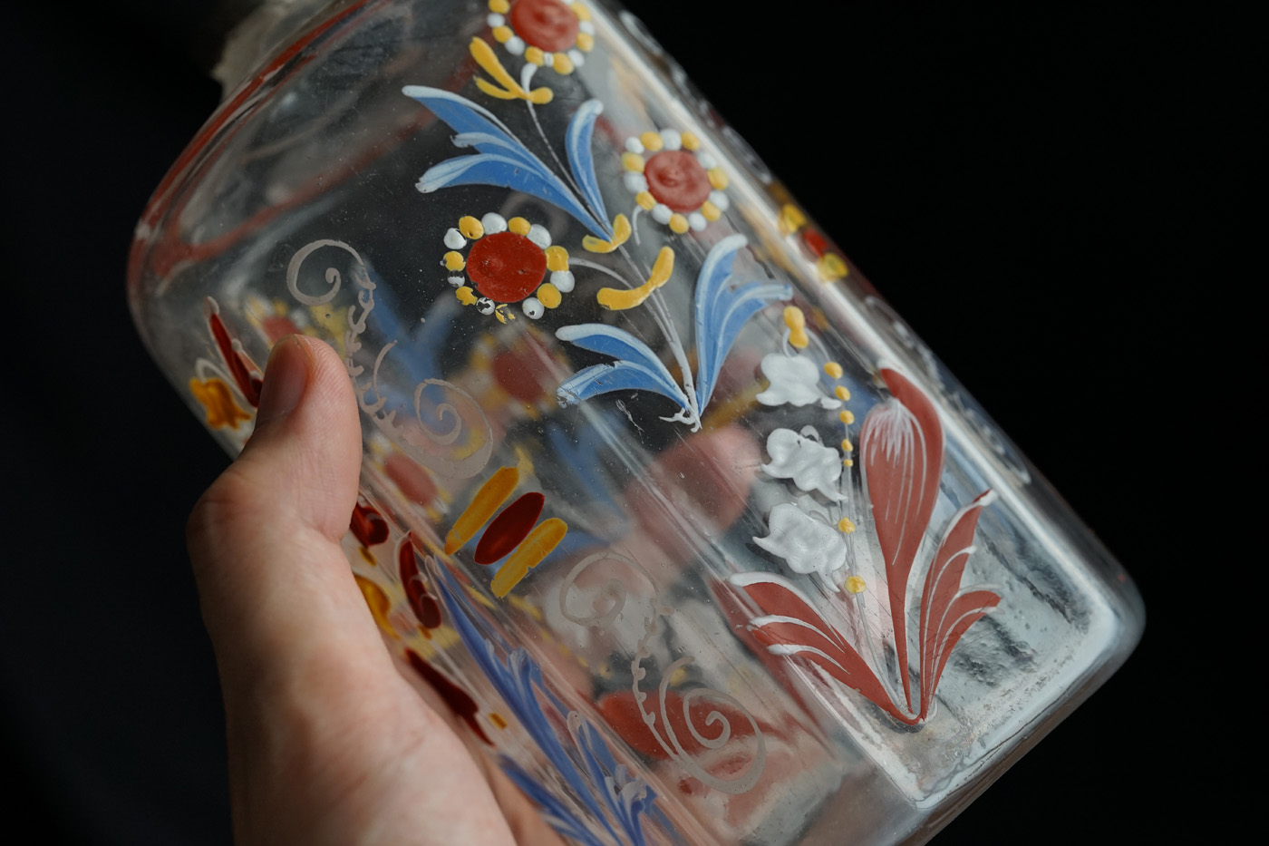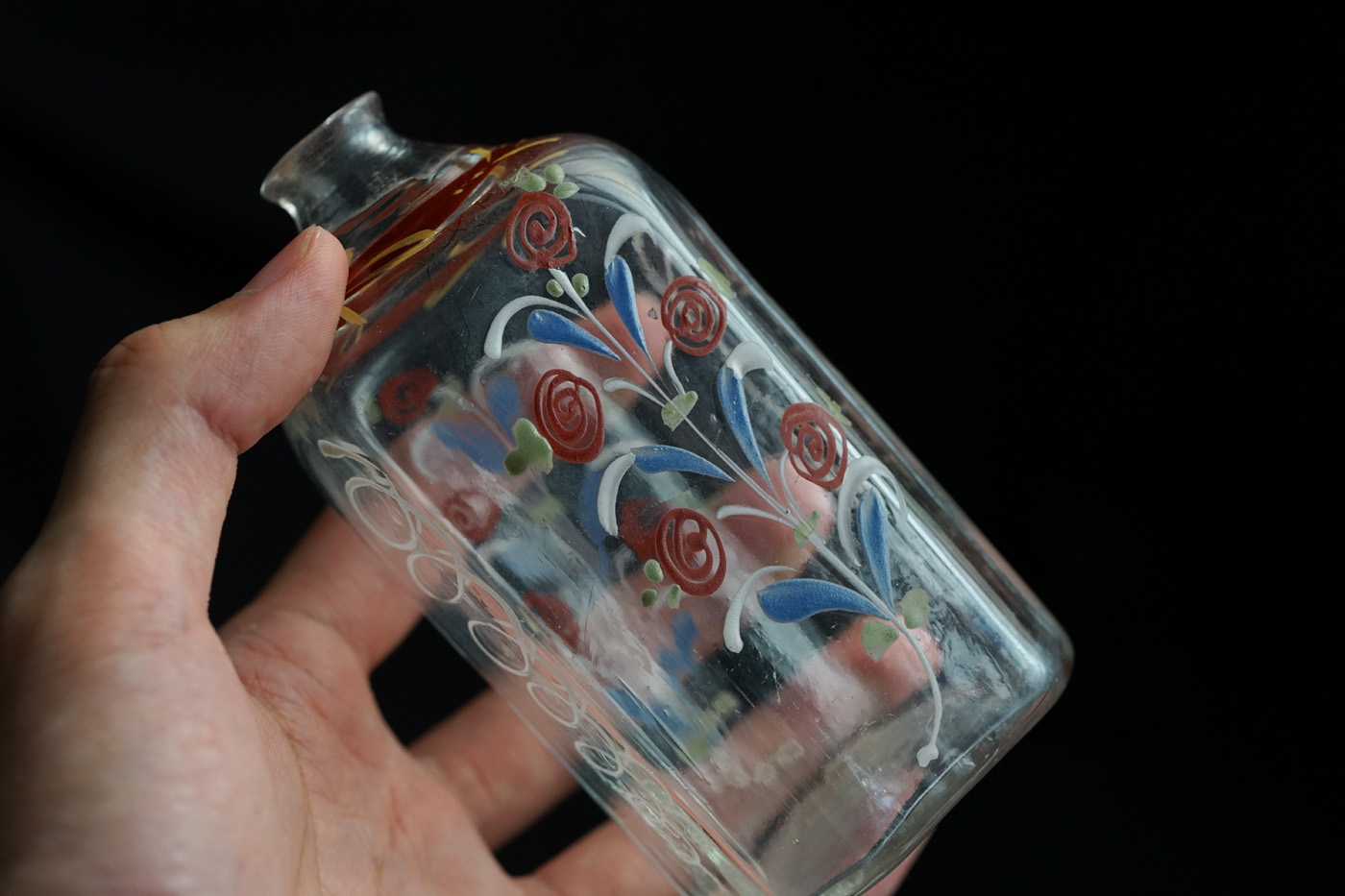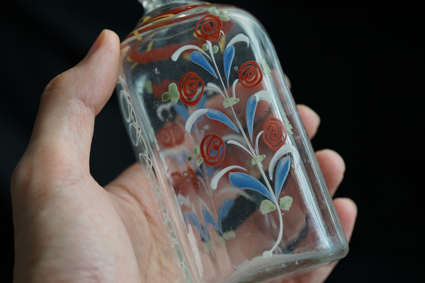 型吹きガラスのエナメル彩の婚礼用ボトル / 18th.C ・France