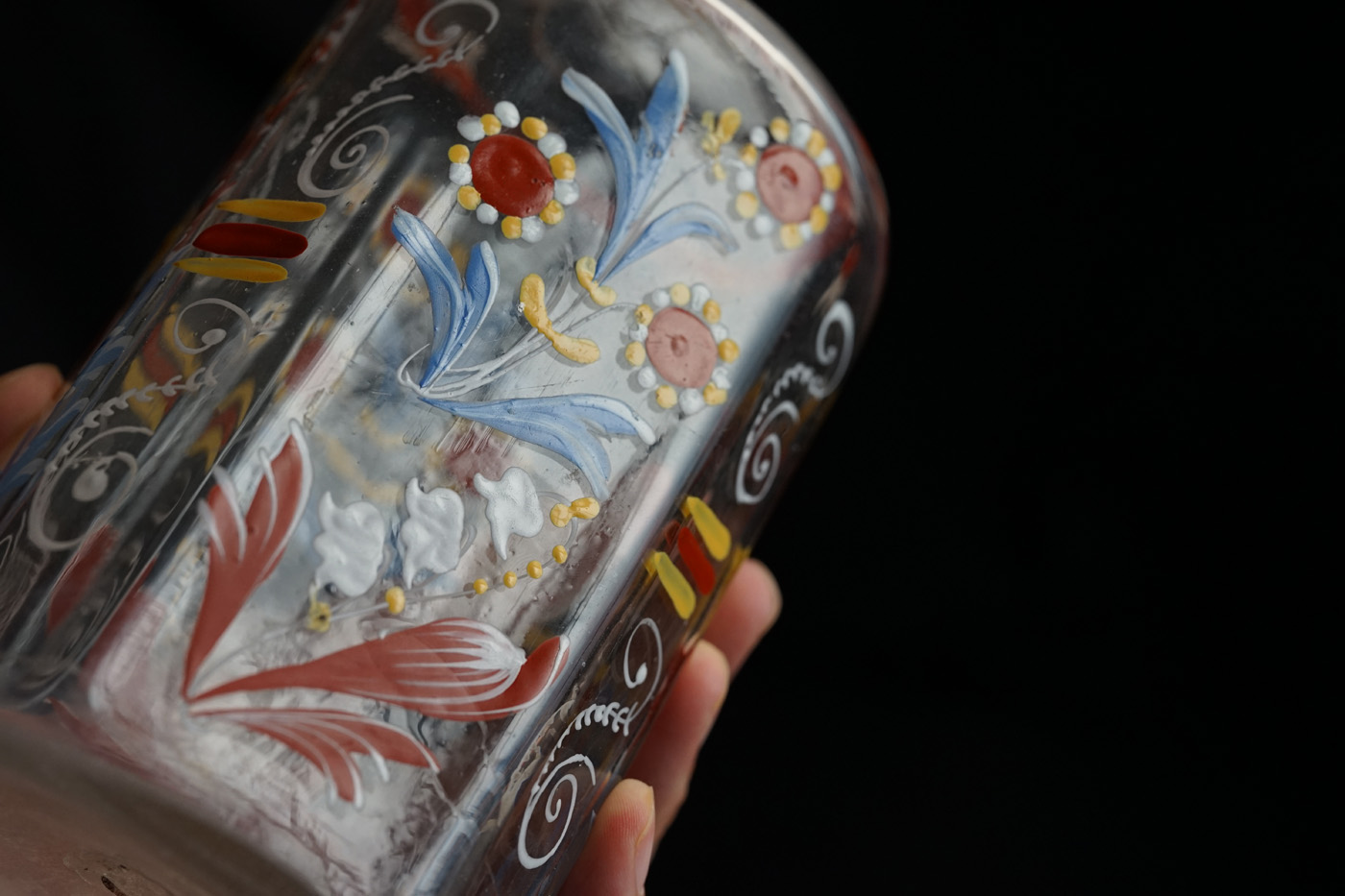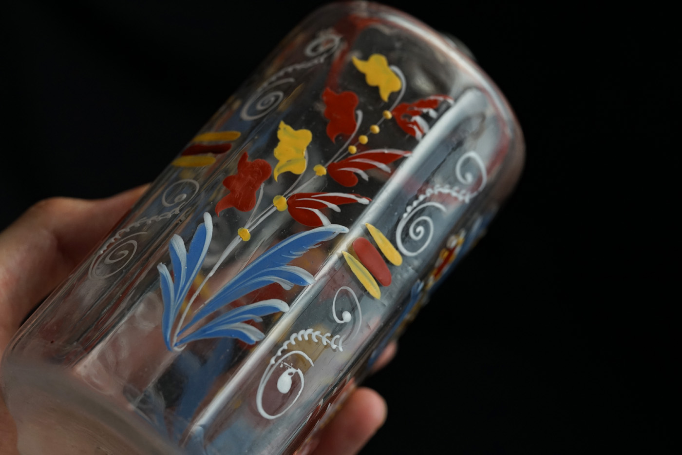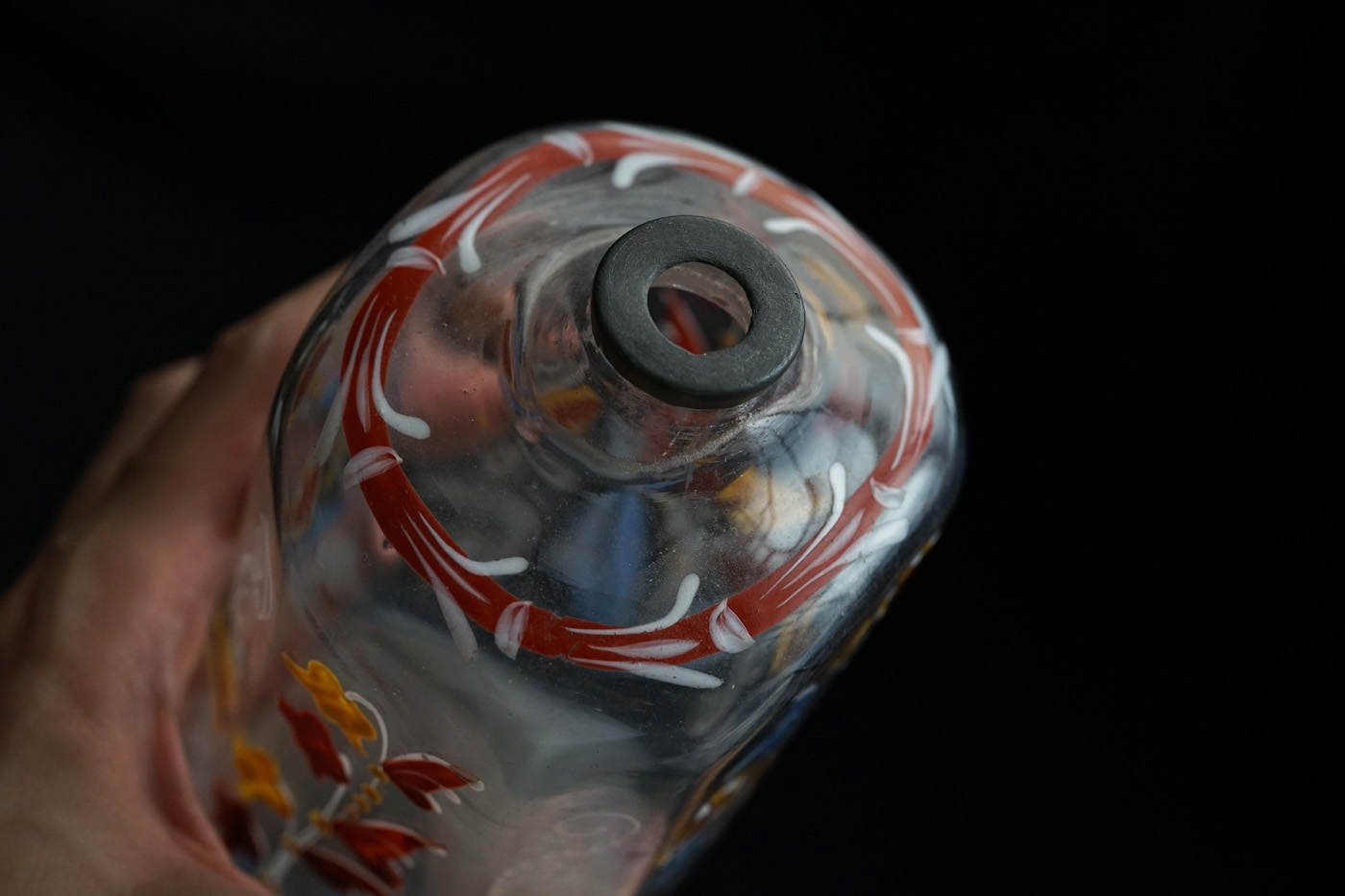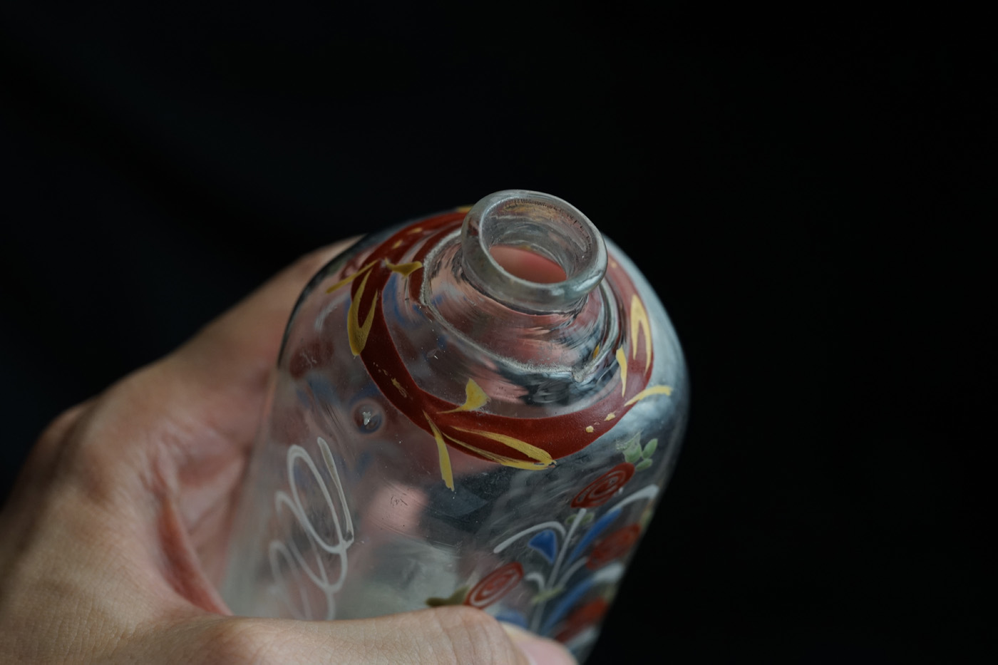 型吹きガラスのエナメル彩の婚礼用ボトル / 18th.C ・France