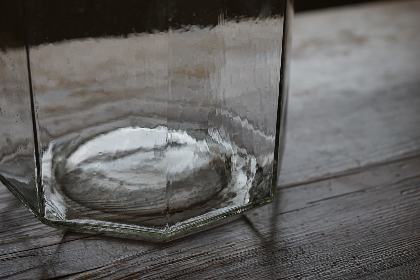 金型硝子の美しい形と表情。蓋がなくても良いような、工夫して虫籠や水槽なんかにも。三点在庫ございます。