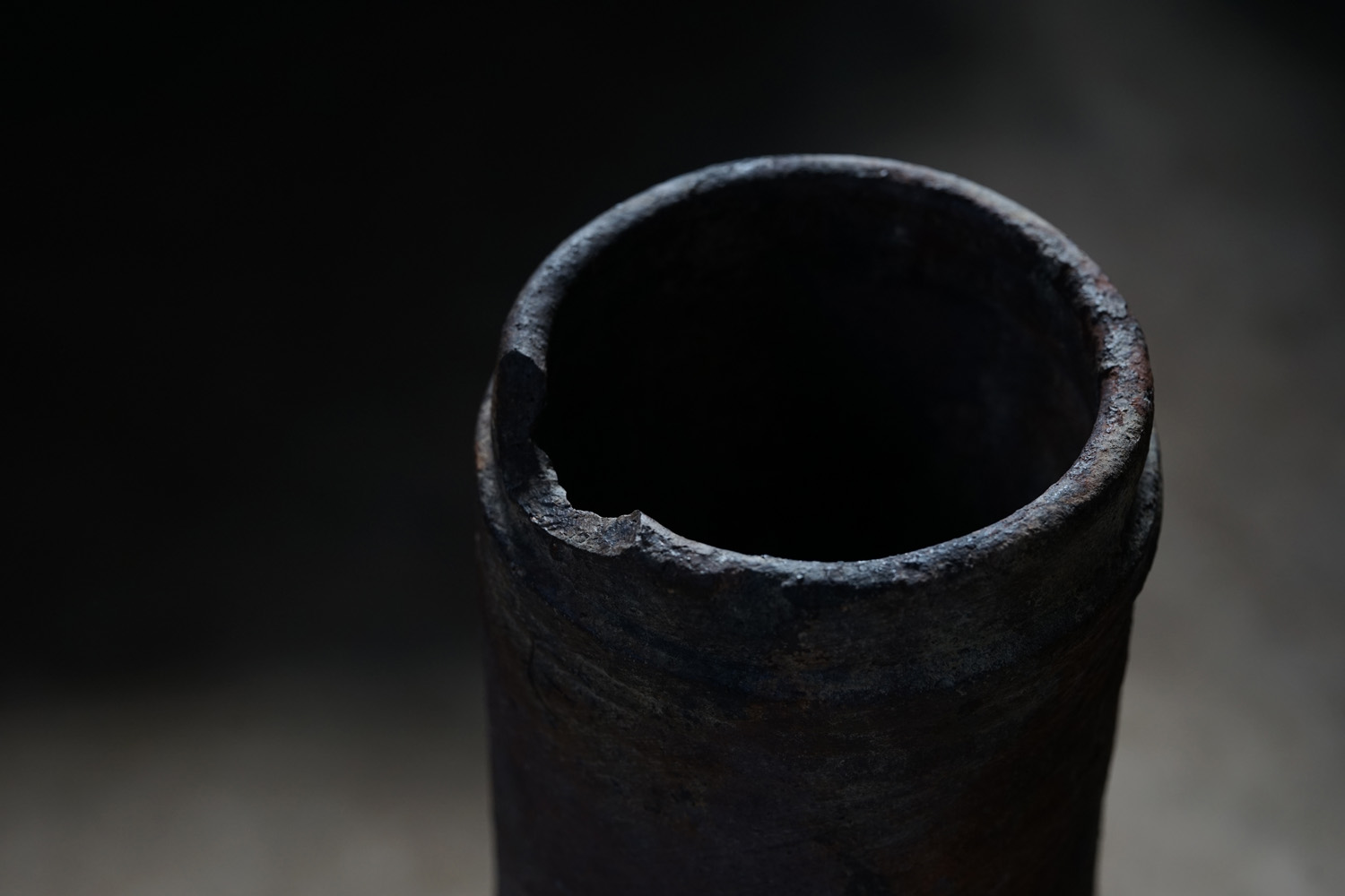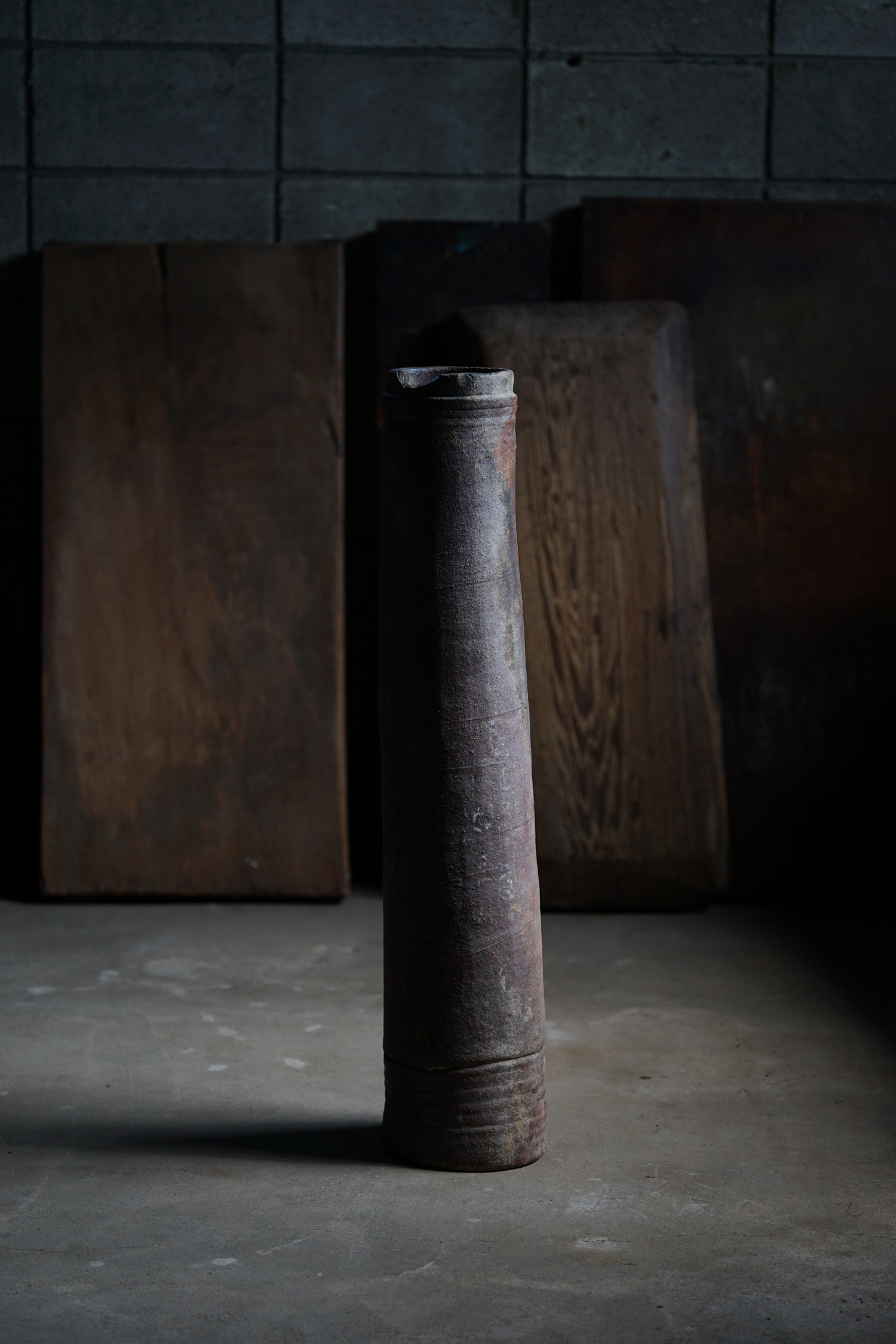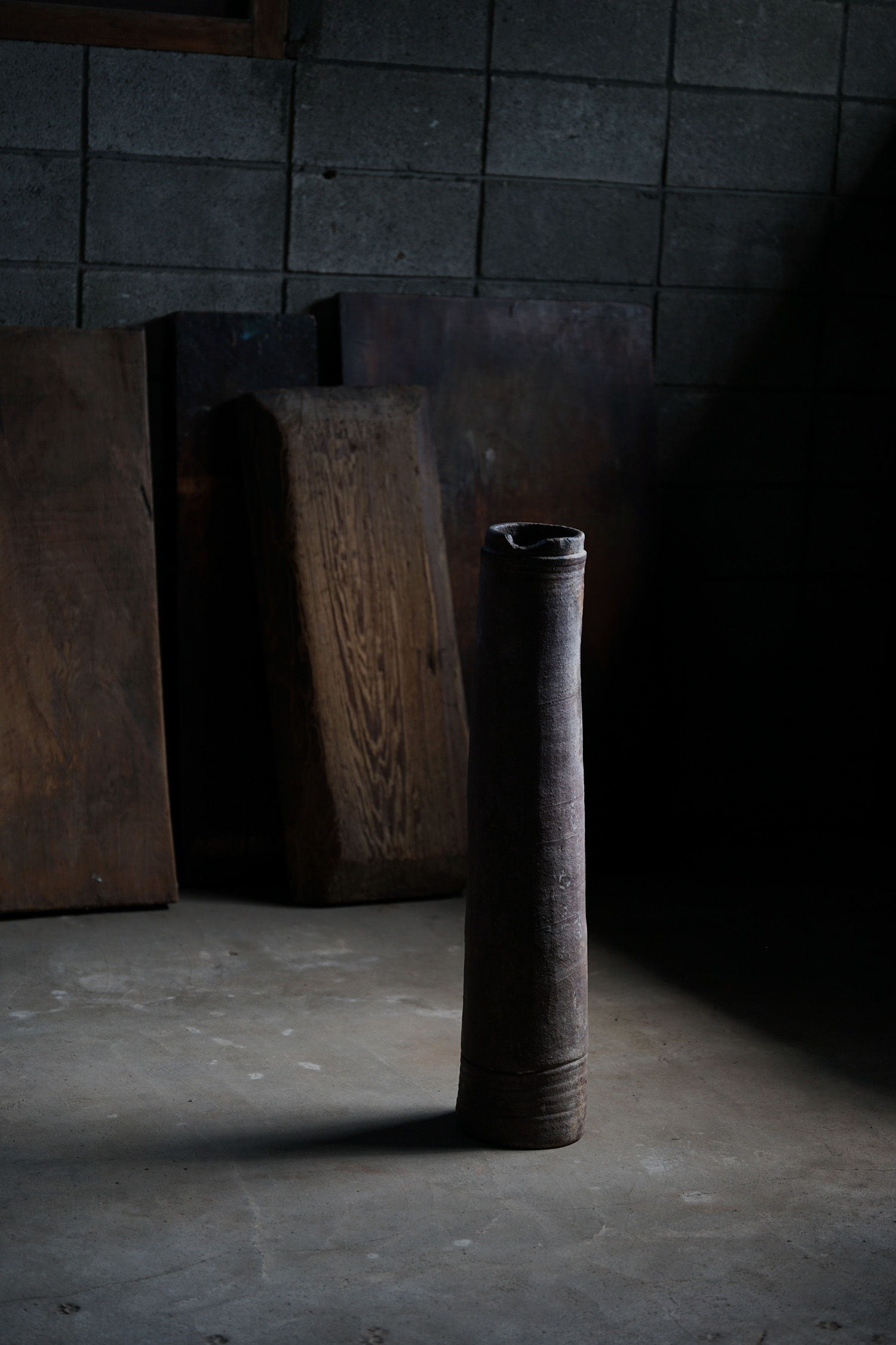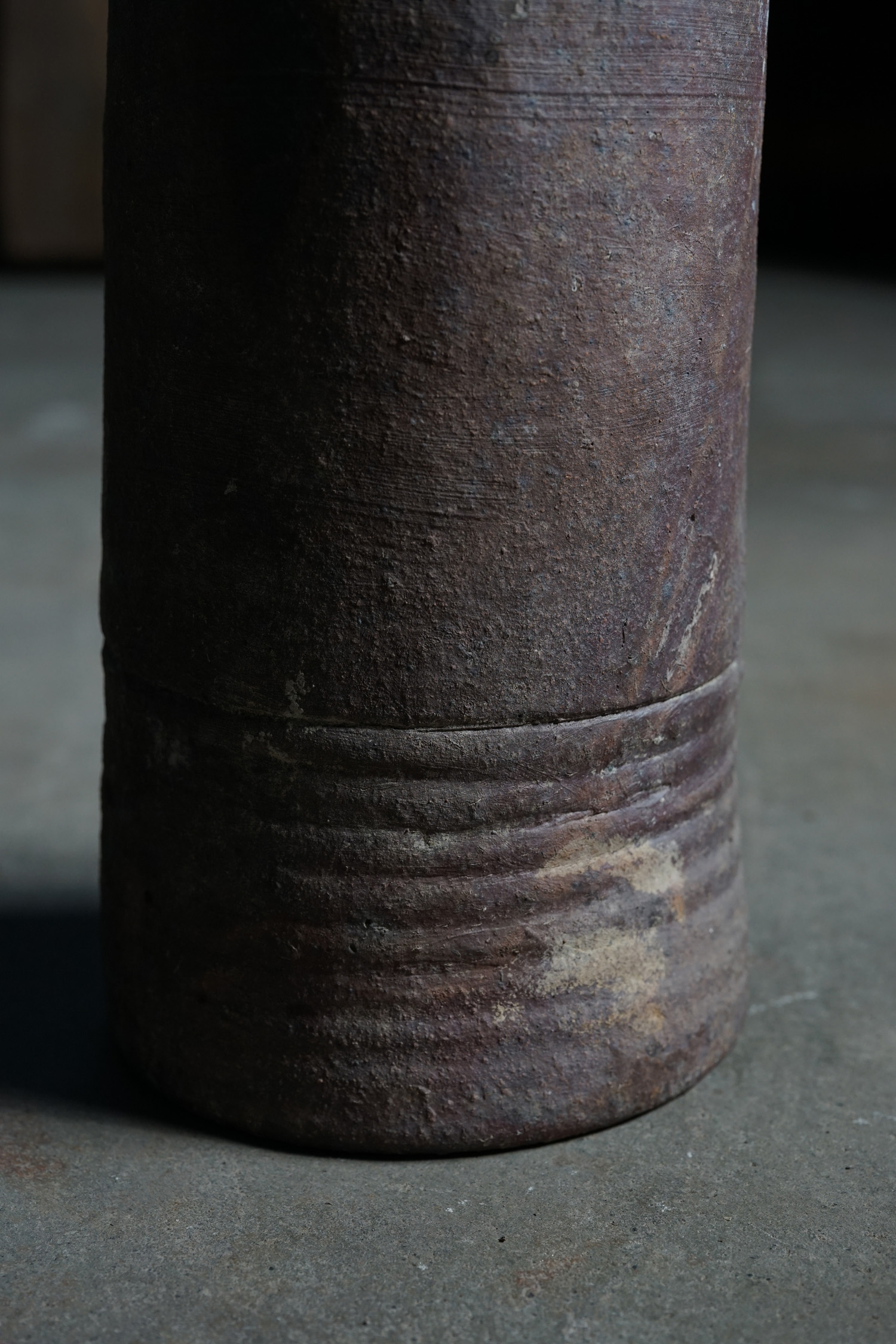古い備前焼の土管です生命力のある轆轤の動きを感じます。火色も美しく、オブジェとして。または筒型ですので工夫して落としを入れて花入れなどにもよろしいかと思います。お部屋の角にでもそっと置いておくだけで良い佇まいかと思います。