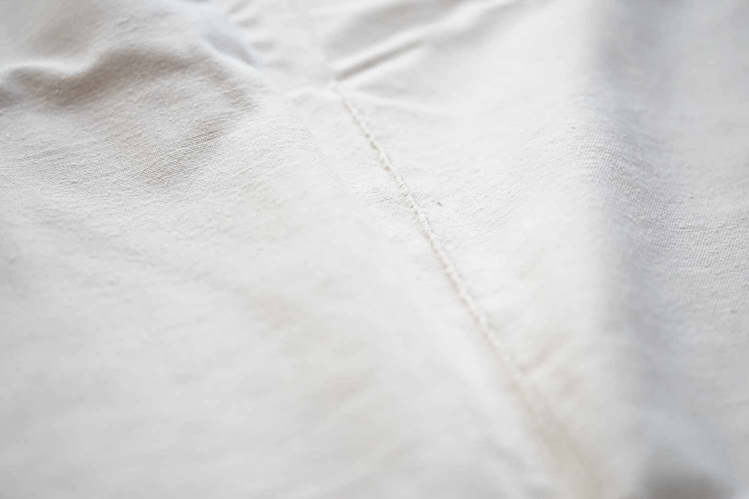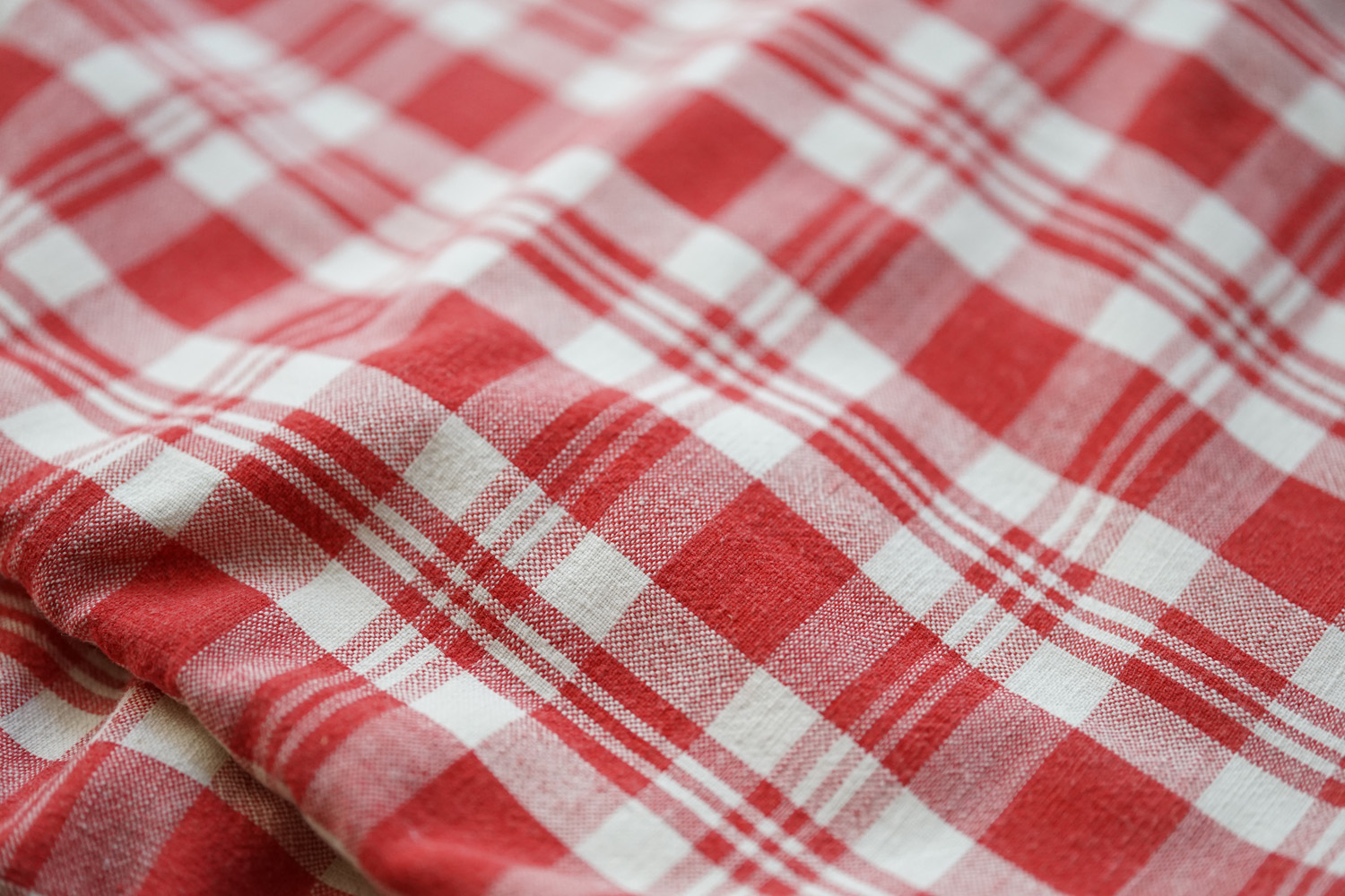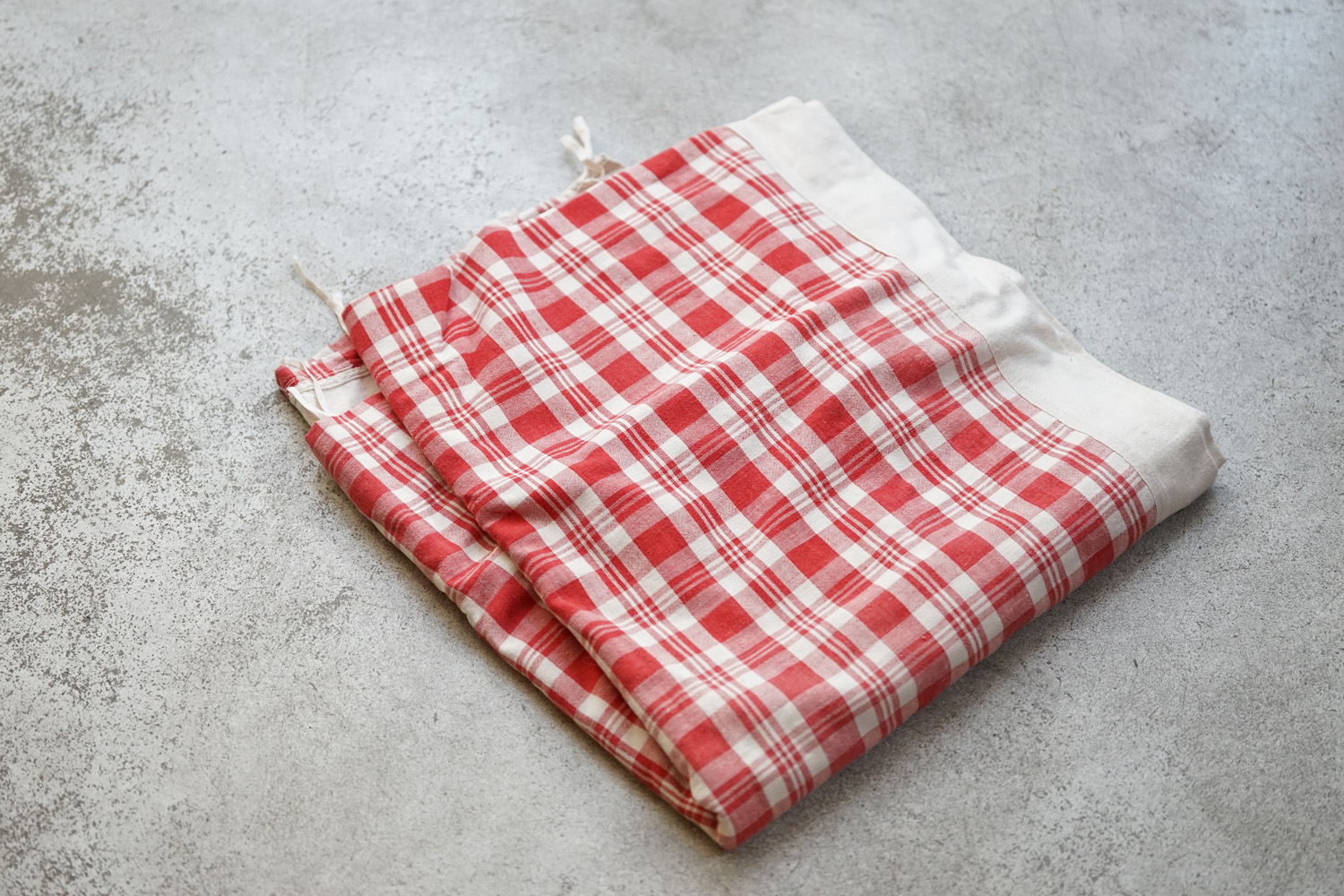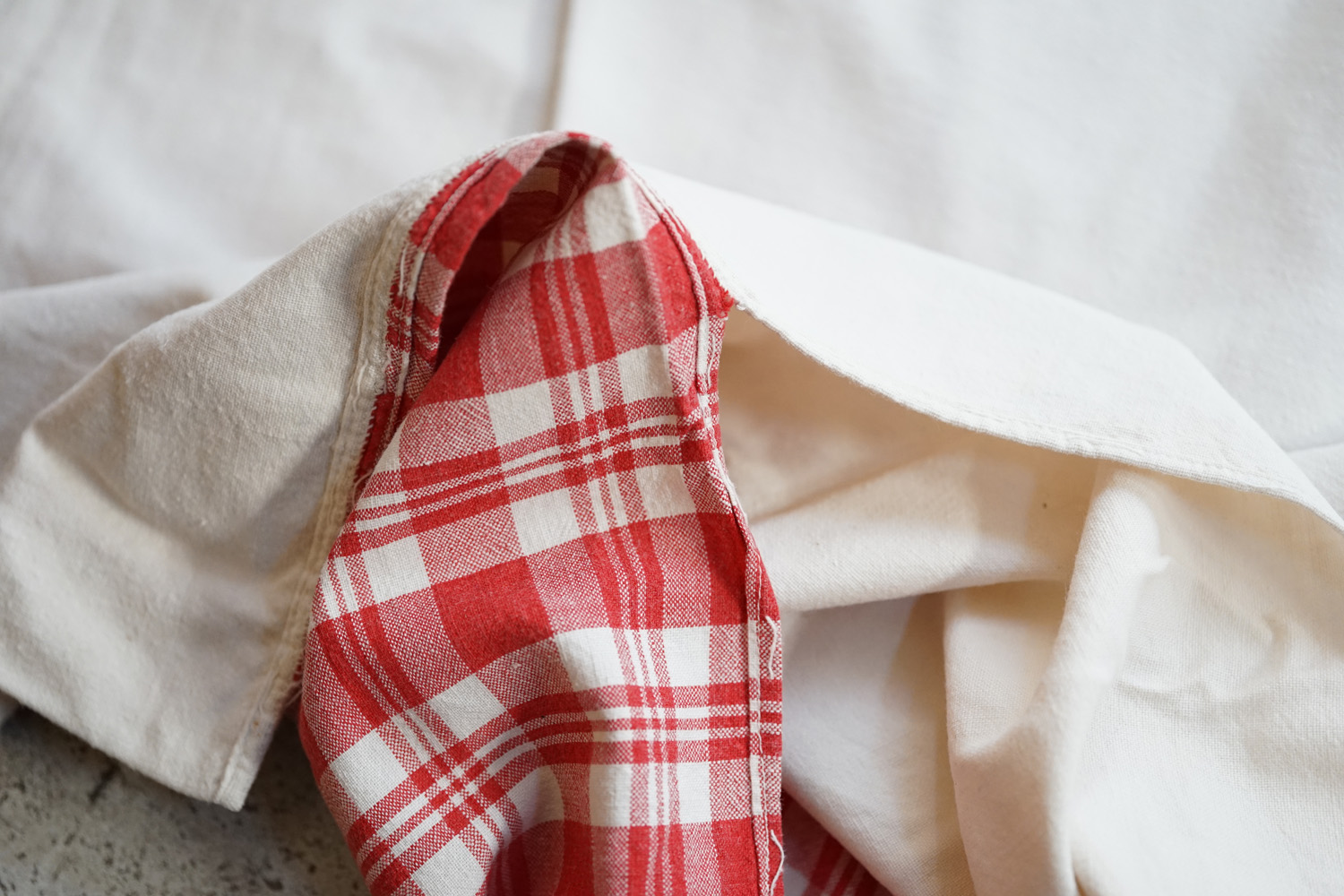フランス東部ドイツとの国境近くのアルザス地方で19世紀に織られた伝統織物ケルシュです。大判の布団用のカバーです。手紡の糸は不均一で凹凸があり、それが織り上がった時の美しい表情となっています。袋状になっており、表地はチェック柄、裏地は無地になっています。袋口は中に詰める羽毛などを入れるため広めに開いており、紐で結んで使いました。当時の家庭の織機は小さく、一枚では幅が取れないため数枚の布を接いで一枚の布としましたが。テーブルクロスにもカーテンにも。無地とチェックと切り離してお使い頂いても良いかと思います。アルザス地方に見られる木造の可愛らしい建物が思い浮かぶ稀少なテキスタイルです。大きな破れなどはございませんが、それなりの染みや汚れはご了承下さいませ。