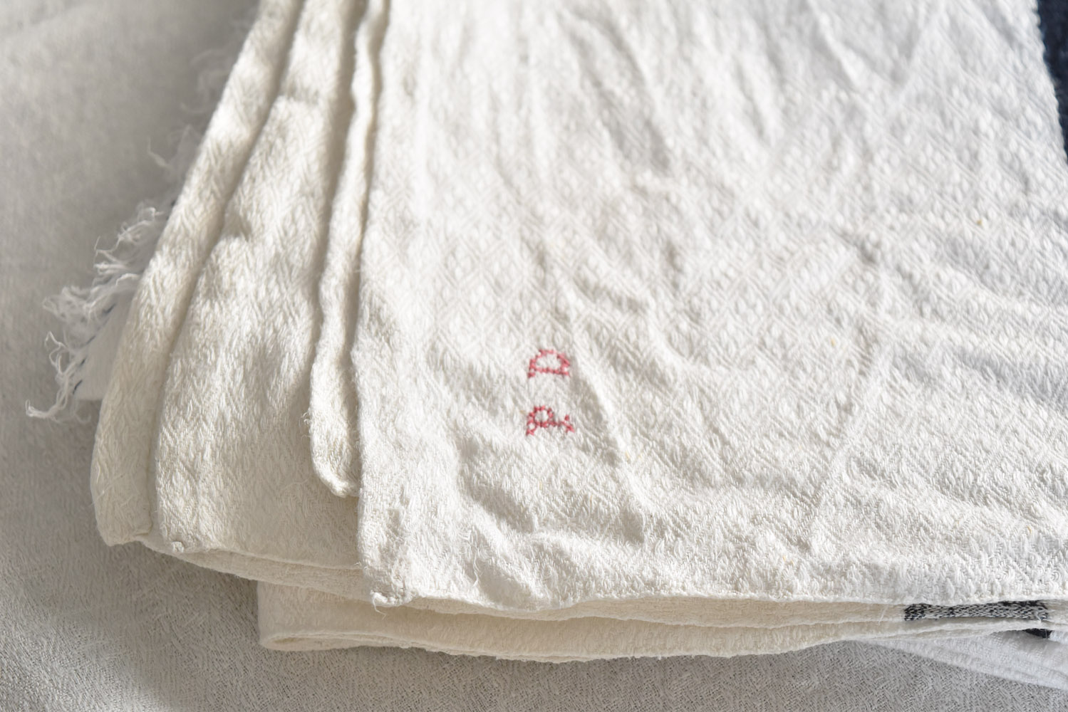 フランス南西部ピレネー山脈のあるスペインとの国境にあるバスク地方や国境沿いの山中にあるベアルン地方のリネンです。菱形の織り模様があるものが多く見られますが、シンプルな織りのものもご用意あります。古いものですので、小さなシミや補修があるものもありますのでお気軽にお問い合わせ下さい。