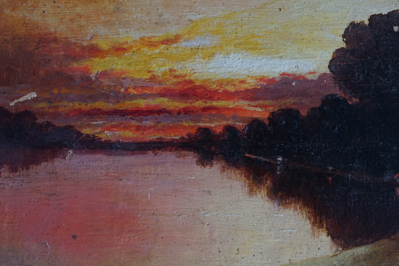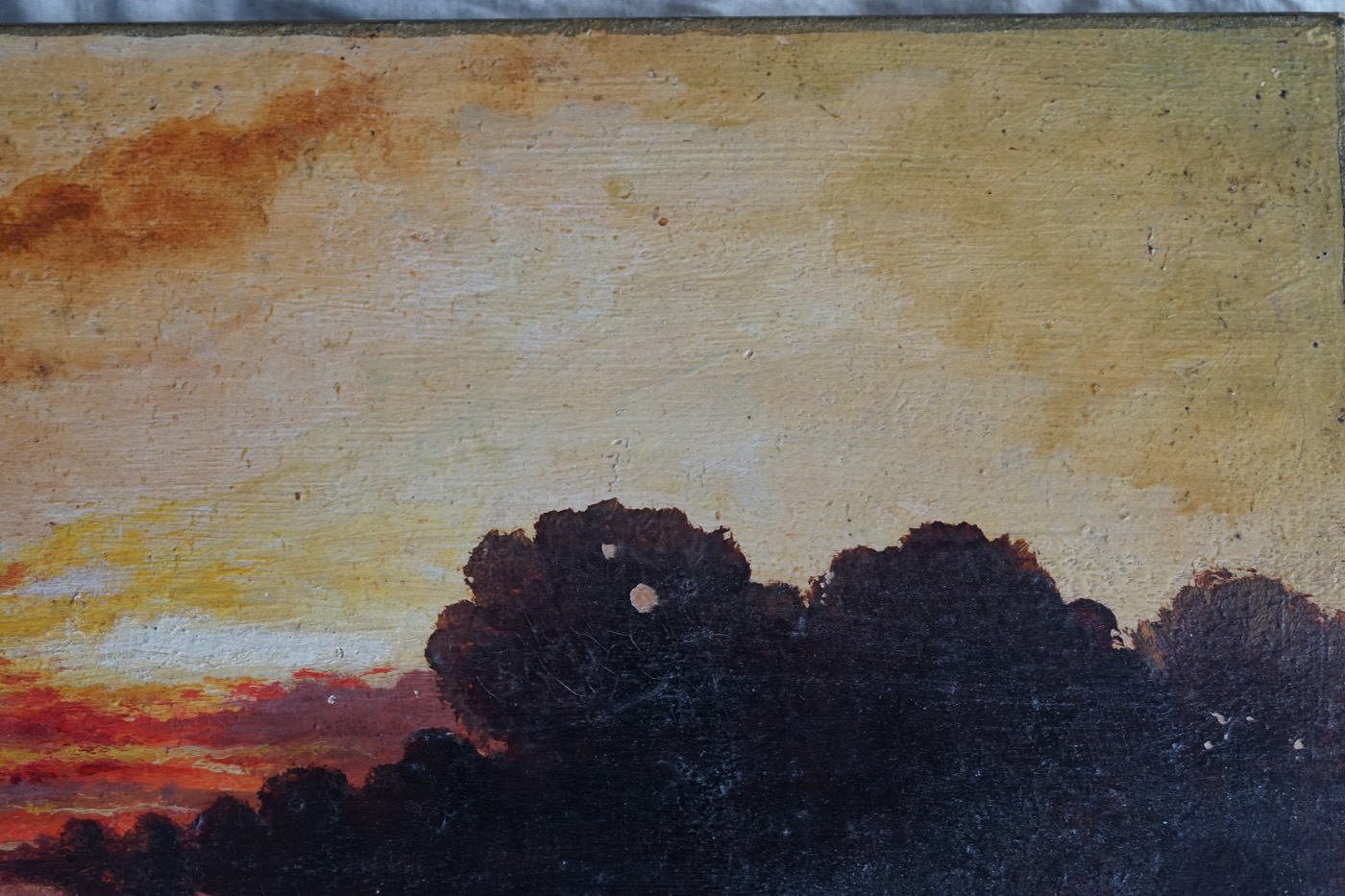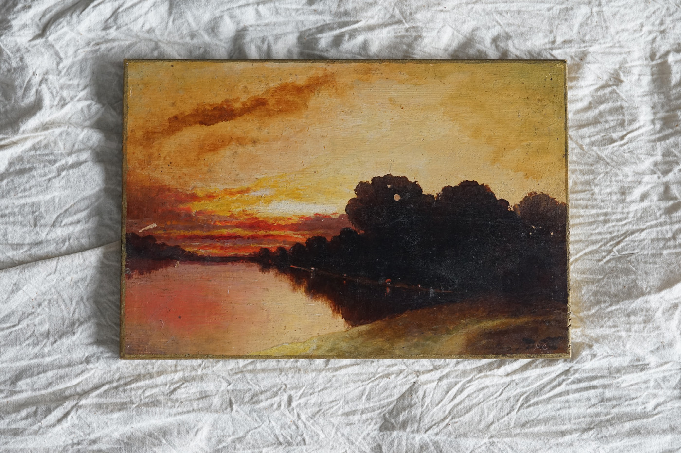 古い油彩の夕陽の風景画 / フランス 20世紀