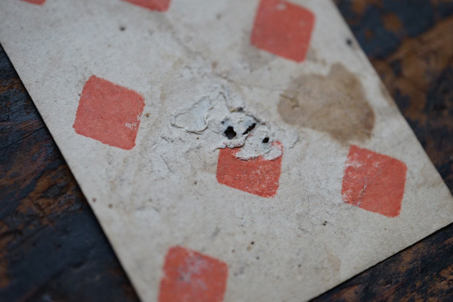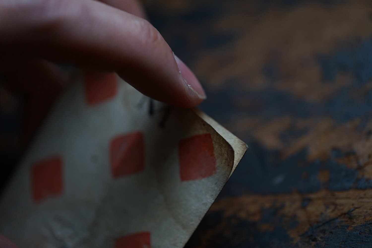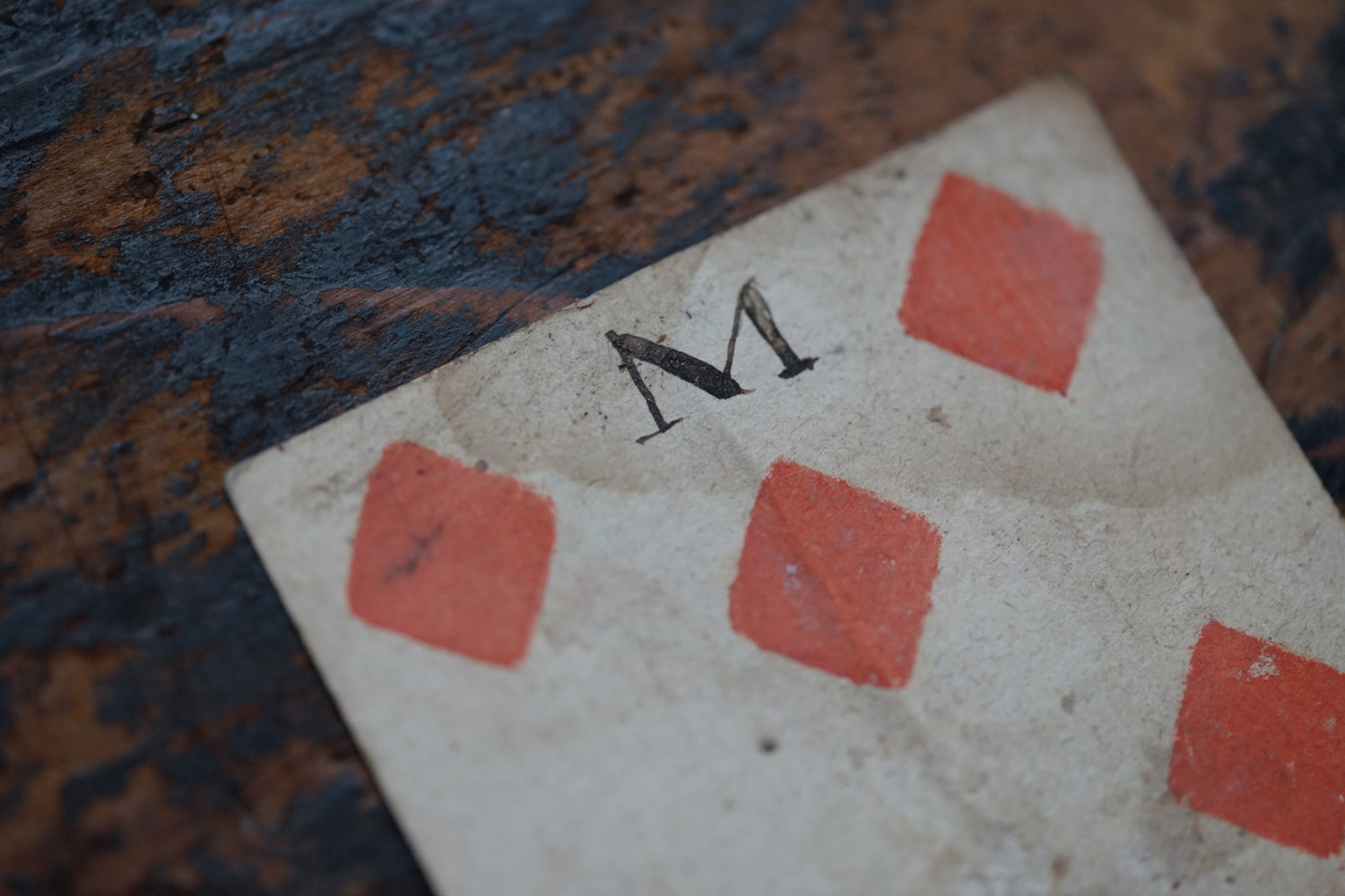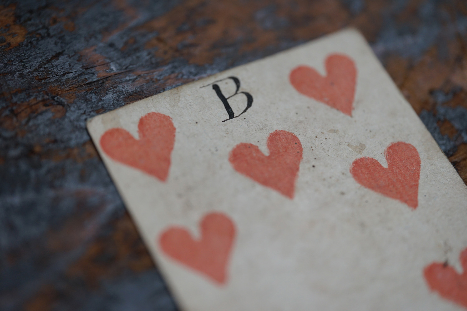 柔らかな木版刷りと紙の経年変化の表情が美しいです。絵札の色はステンシルで手彩色されているようです。古手の絵札は全身像で描かれています。薄い紙ばかりだった当時の厚紙は高級品でありました。19世紀のものになると今と同じに半身で上下に逆さまに2体描かれます。薄い紙ばかりだった当時、厚紙をつくるのに2,3枚の紙を張り合わせ印刷してから裁断しつくられたものもあるそうです。18-19世紀、当時は紙が高くトランプも高価な物でした。このような手頃なサイズの無地(裏面)の厚紙はなかなか無かったため、手紙や借用書などにも使われたそうで、その名残があるものもございます。また賭け事のメモ書きのようにも見えます。当時の空気感をまとった一枚の絵として飾って頂けると思います。コレクター放出でまとめて譲って頂きました。全ては掲載できておりませんので、ご希望ございましたらお気軽にご相談下さいませ。