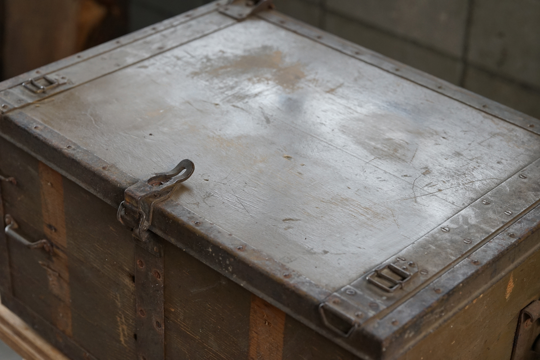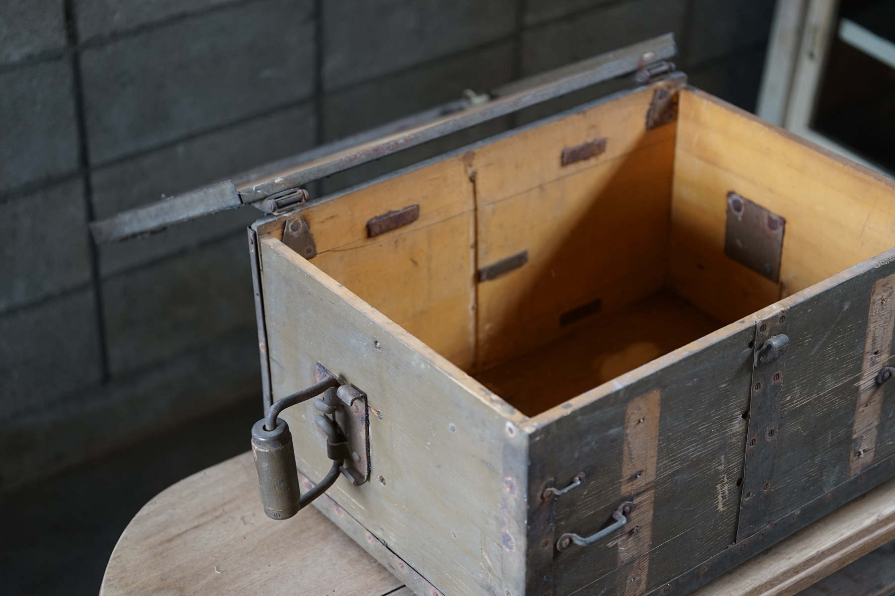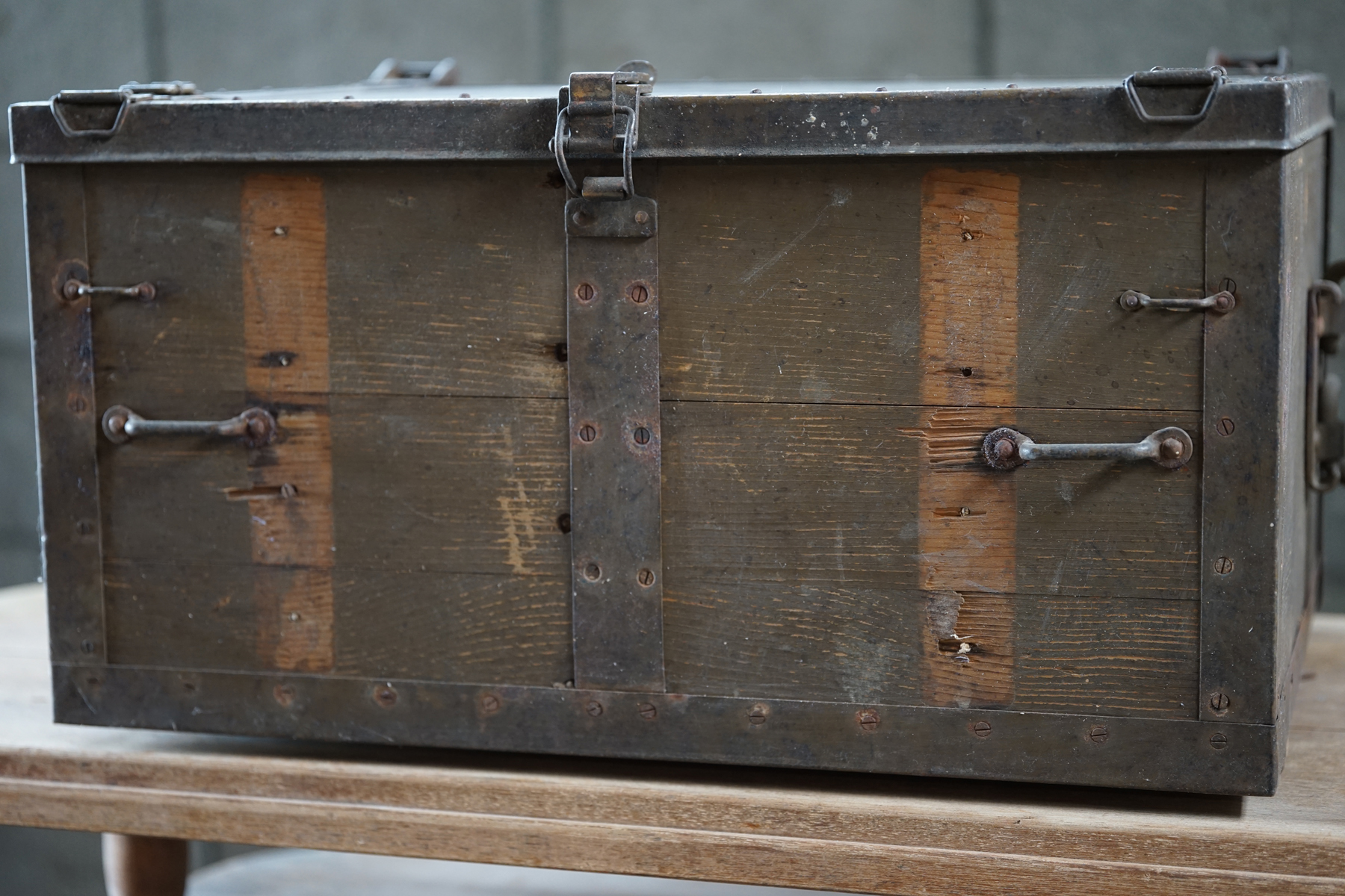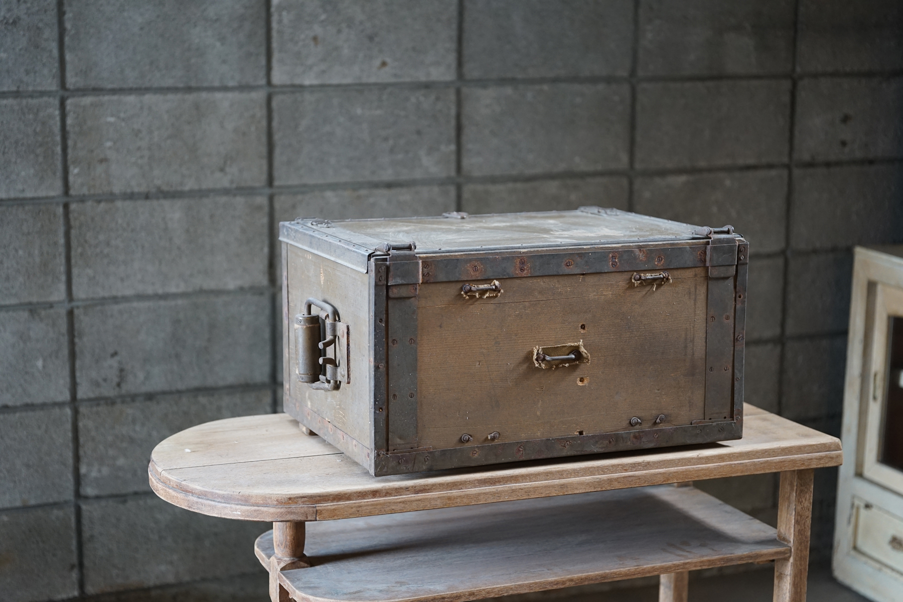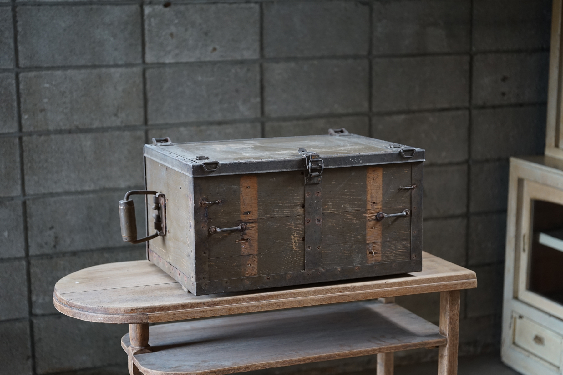 古い無垢材+鉄製の収納箱 / 日本