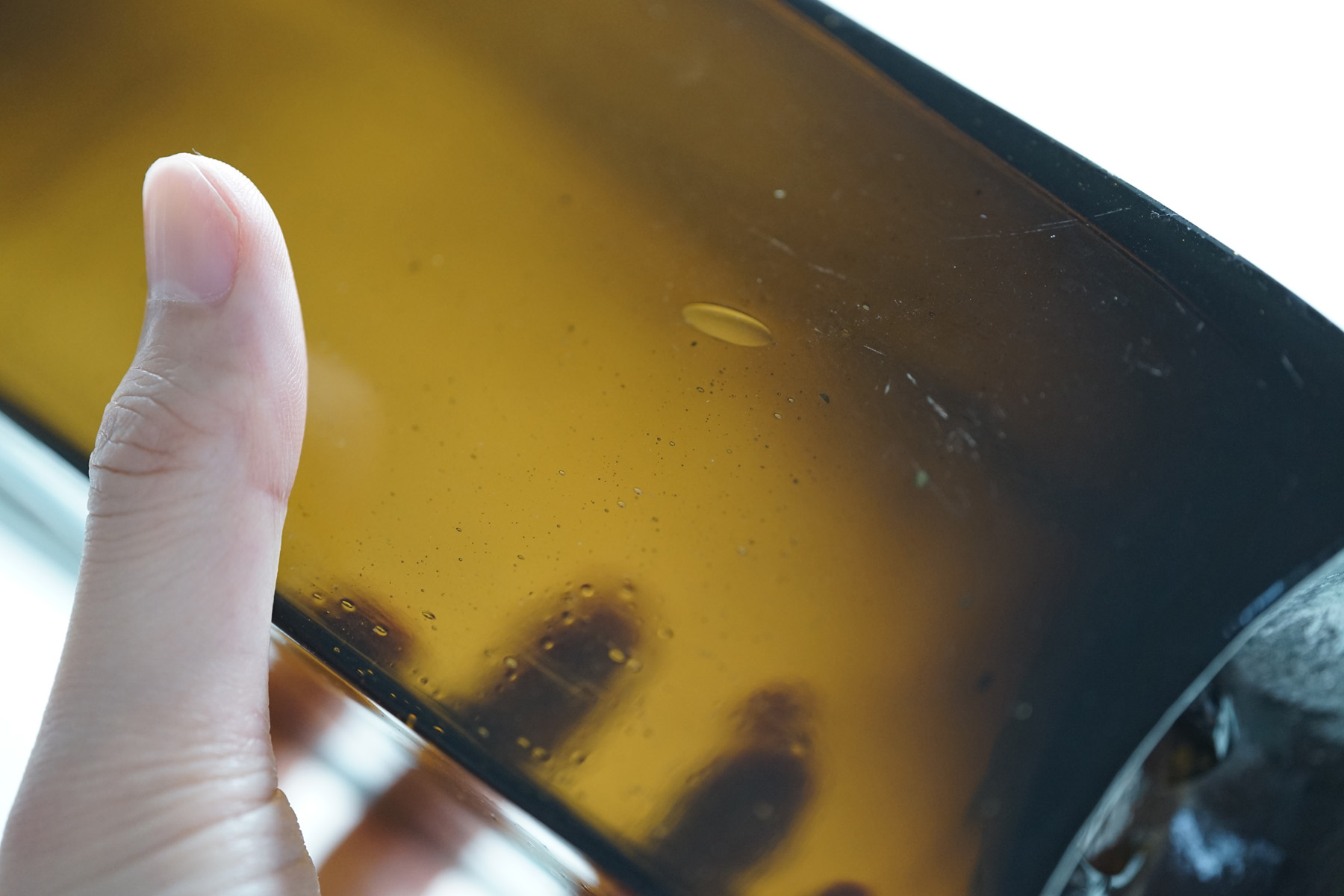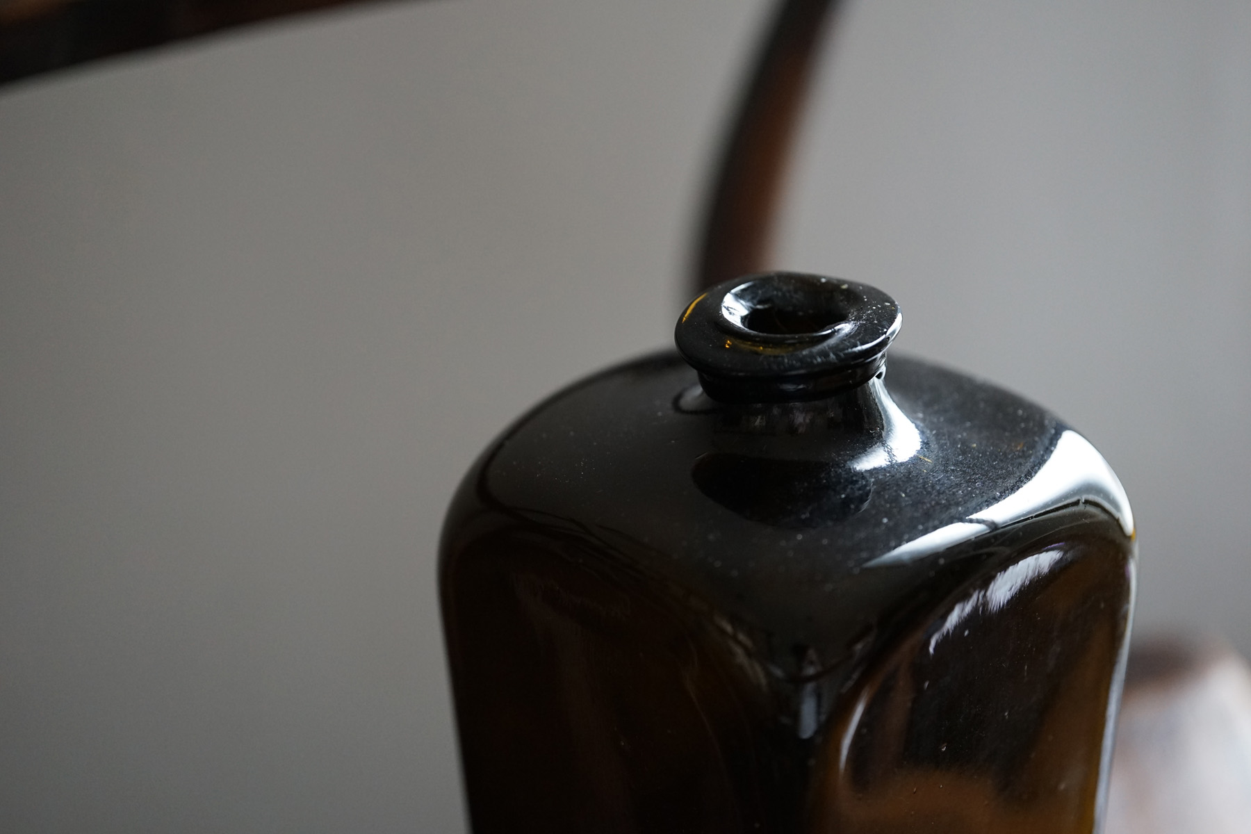 オランダのジンボトルです。カクテルとして愛飲されている蒸留酒「ジン」は、もともと薬用として17世紀のオランダで開発されました。美しいオリーブ色が光で透過する様はなんとも美しいです。