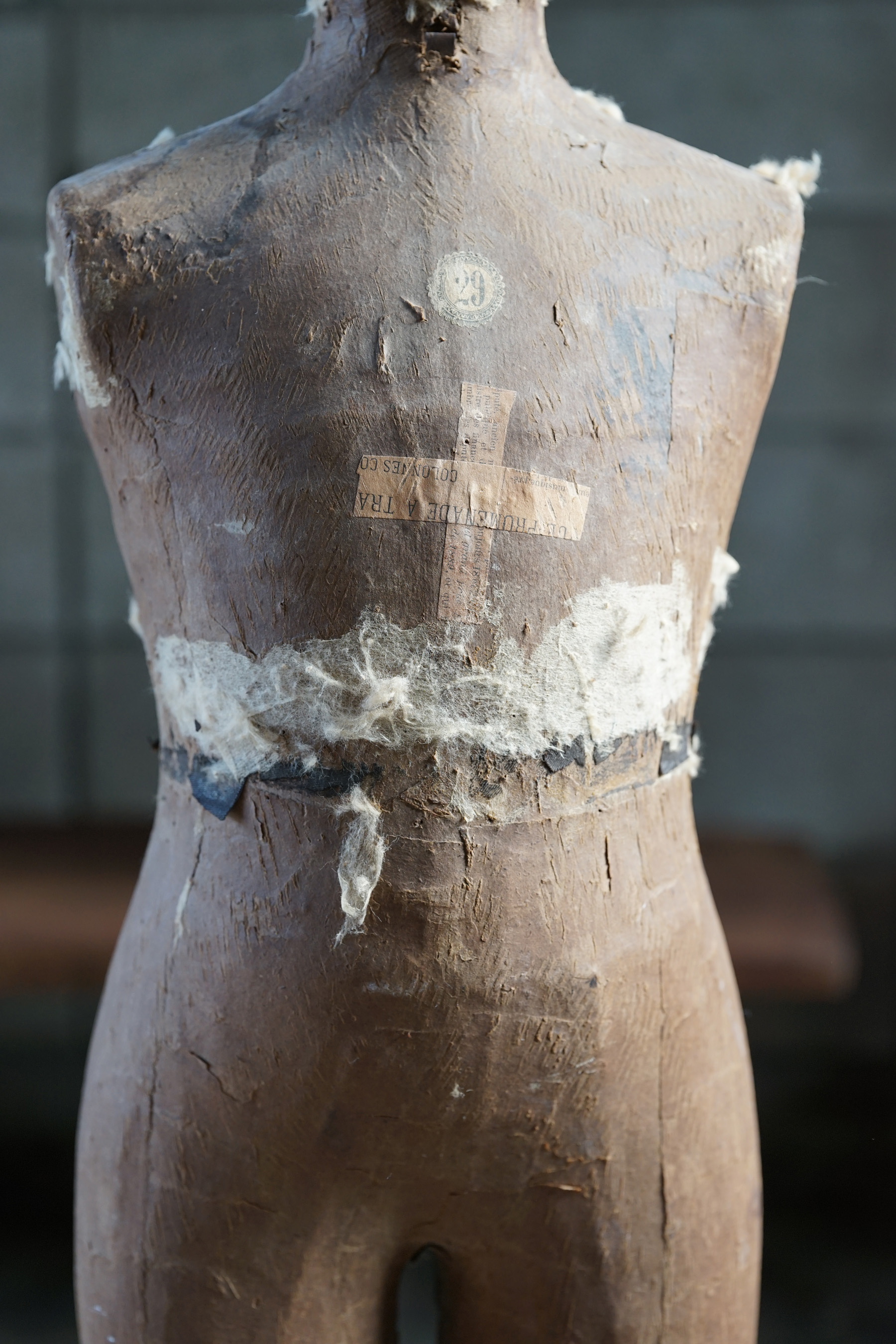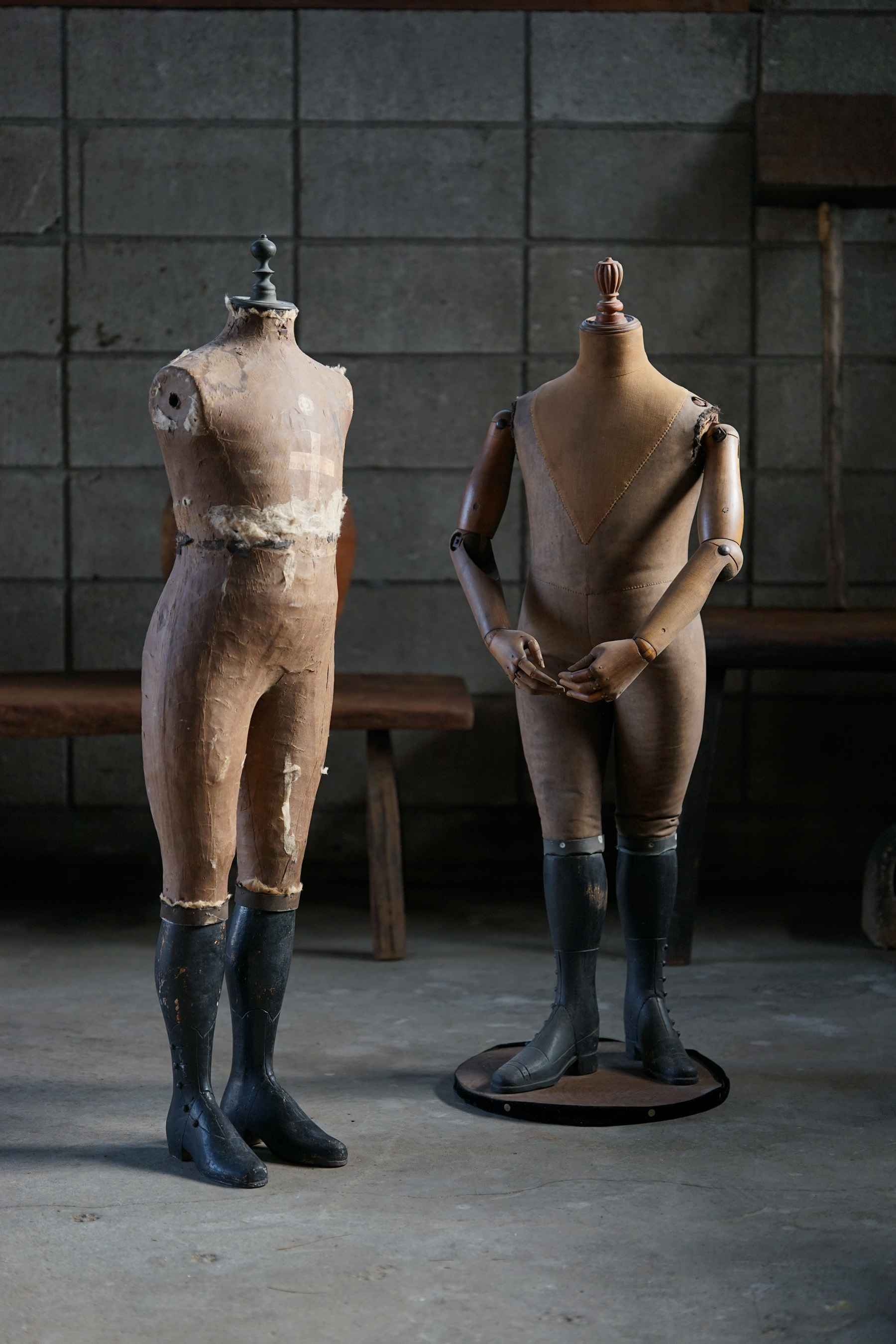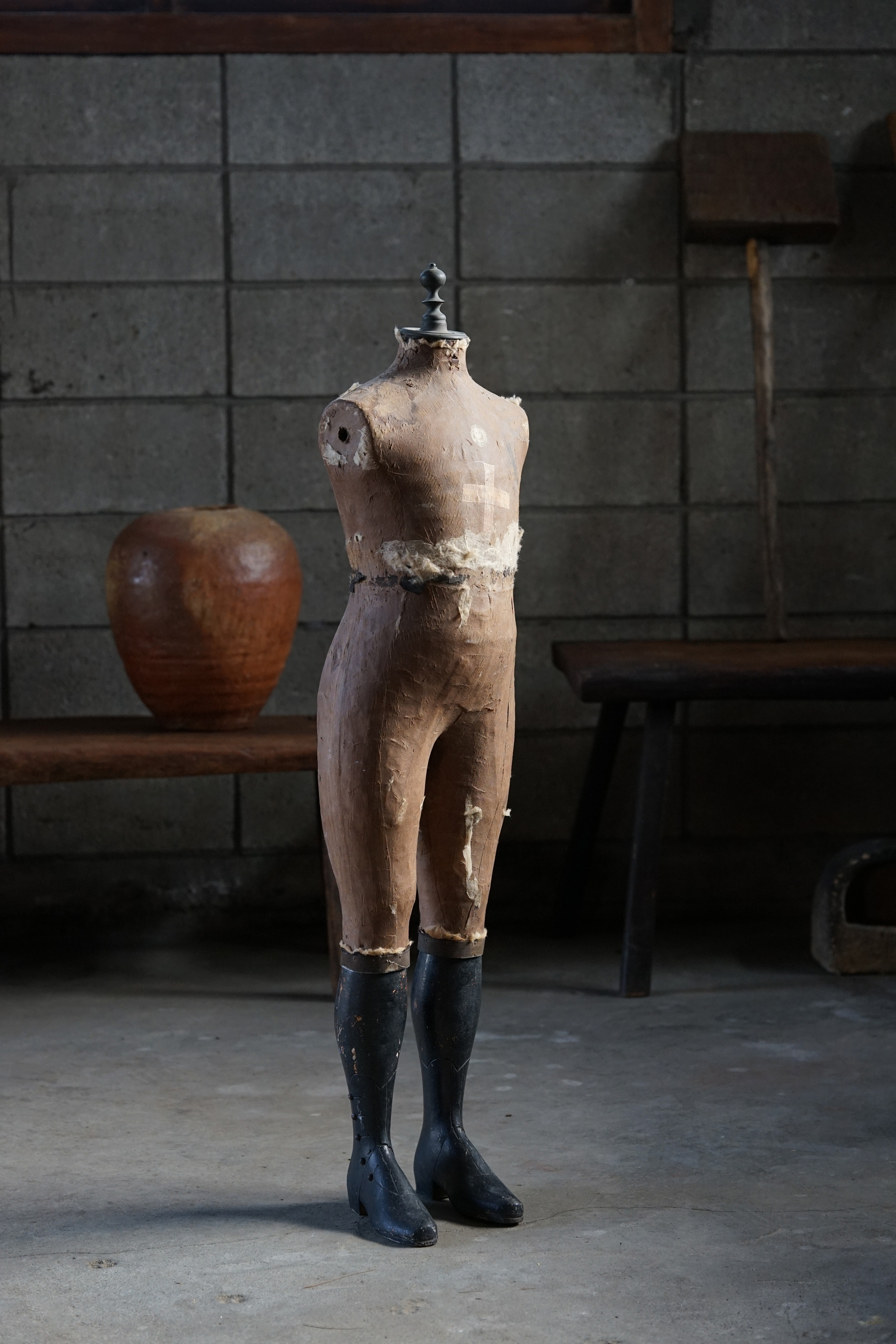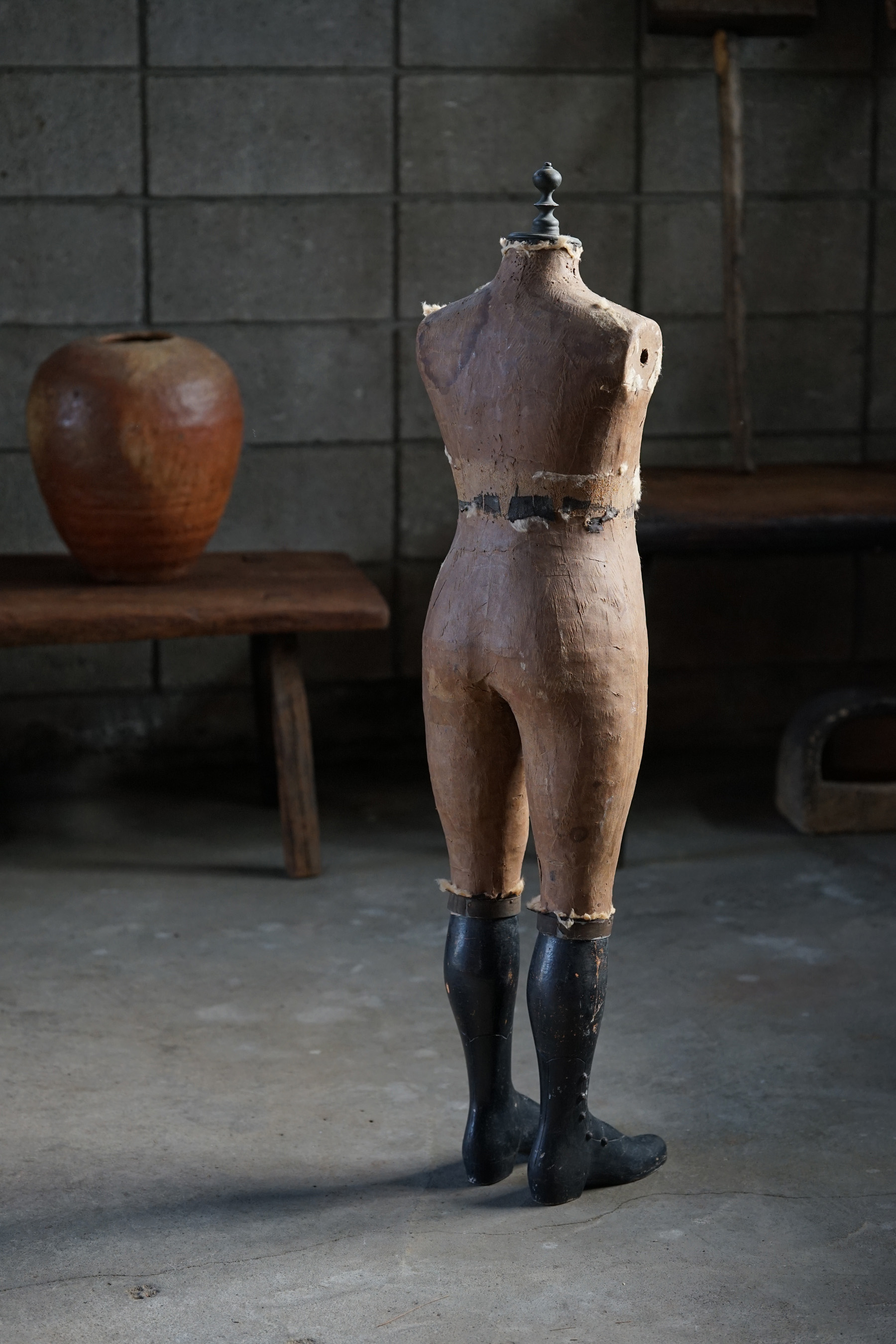 19世紀のパリで既製服が一般化する頃につくられたマネキンであります。高級デパートなどで使われていたものです。膝から下はブーツの形が彫られている木製の物です。トップの飾りも取り外し可能で金属製です。子供用のマネキン自体が数少ないうえ、このタイプのマネキン自体も数が少ないため大変稀少なピースです。経年変化や修復跡のようなものもとても良い風合いとなっています。これ1体あるだけで、お部屋の雰囲気がとても変わります。