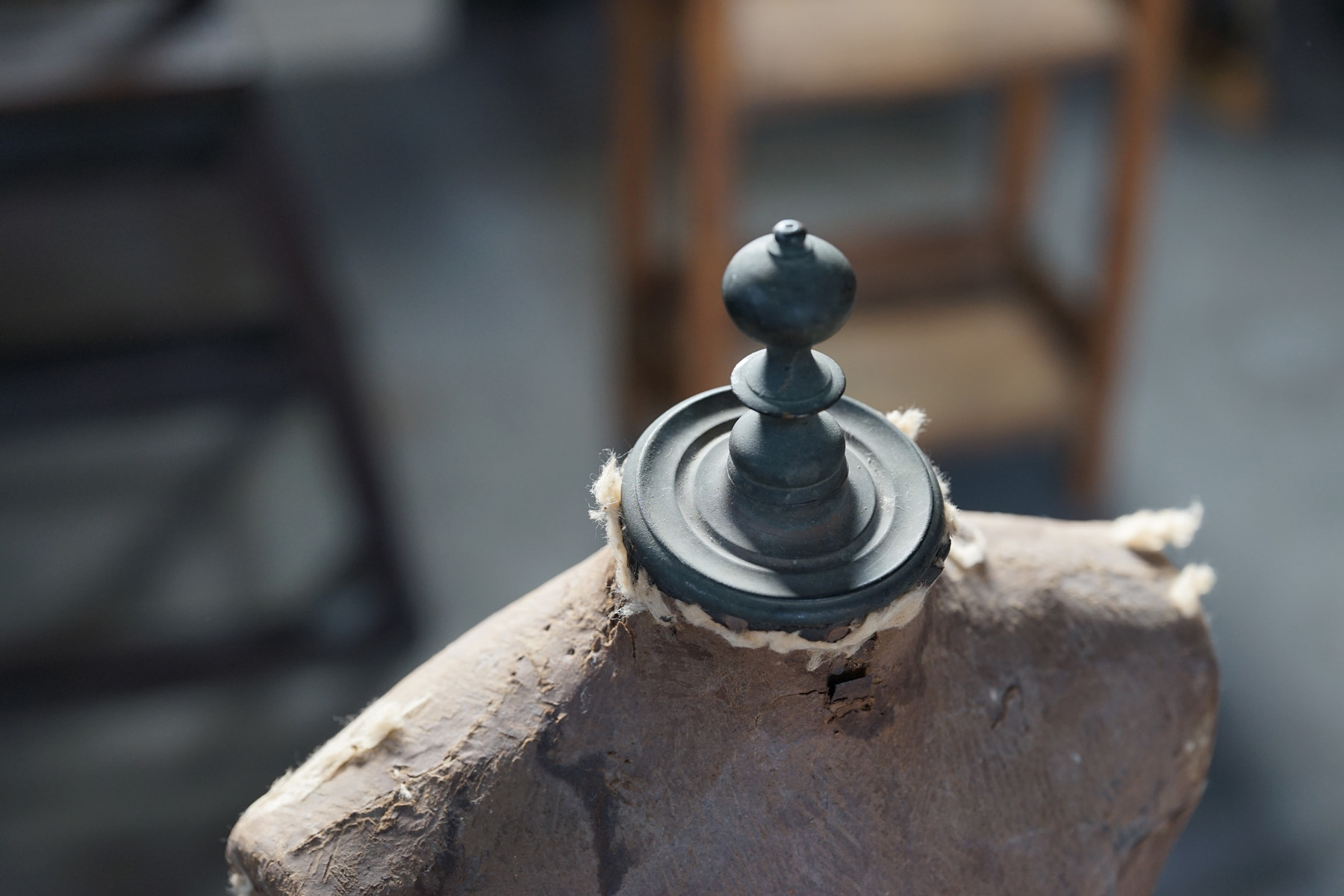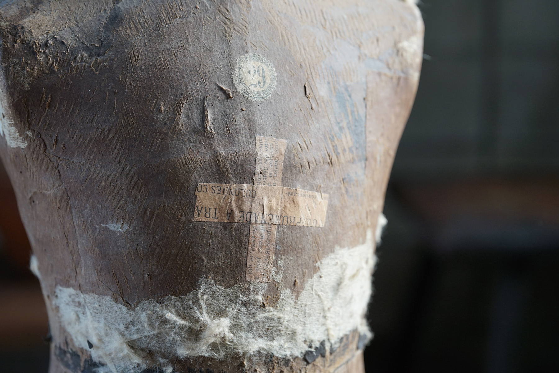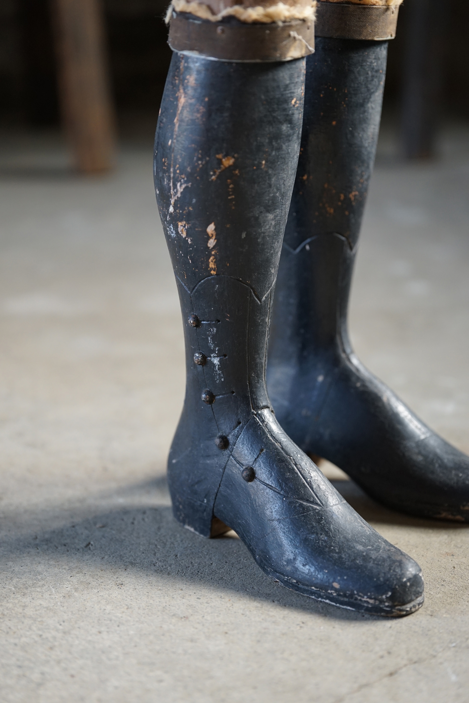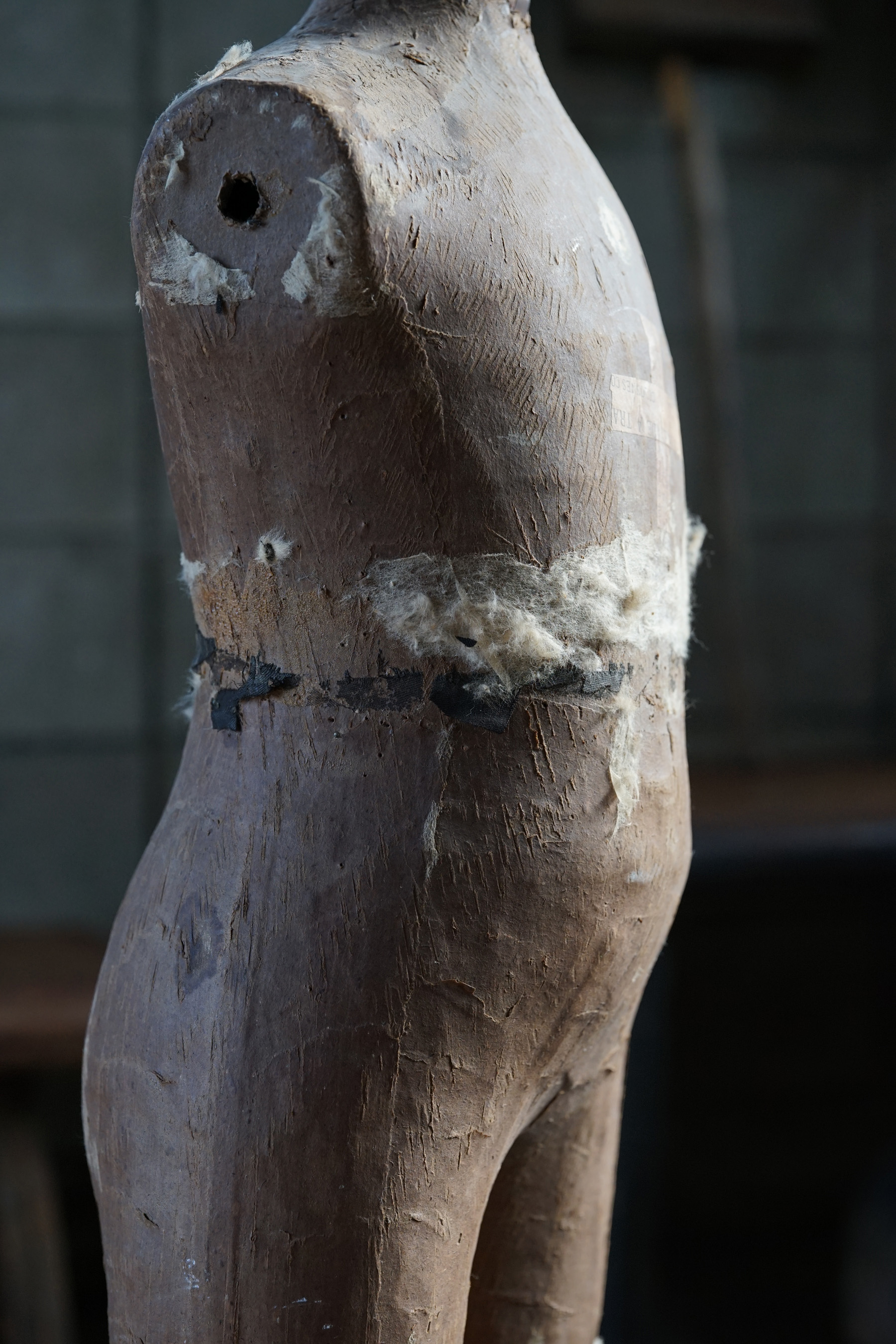 19世紀のパリで既製服が一般化する頃につくられたマネキンであります。高級デパートなどで使われていたものです。膝から下はブーツの形が彫られている木製の物です。トップの飾りも取り外し可能で金属製です。子供用のマネキン自体が数少ないうえ、このタイプのマネキン自体も数が少ないため大変稀少なピースです。経年変化や修復跡のようなものもとても良い風合いとなっています。これ1体あるだけで、お部屋の雰囲気がとても変わります。