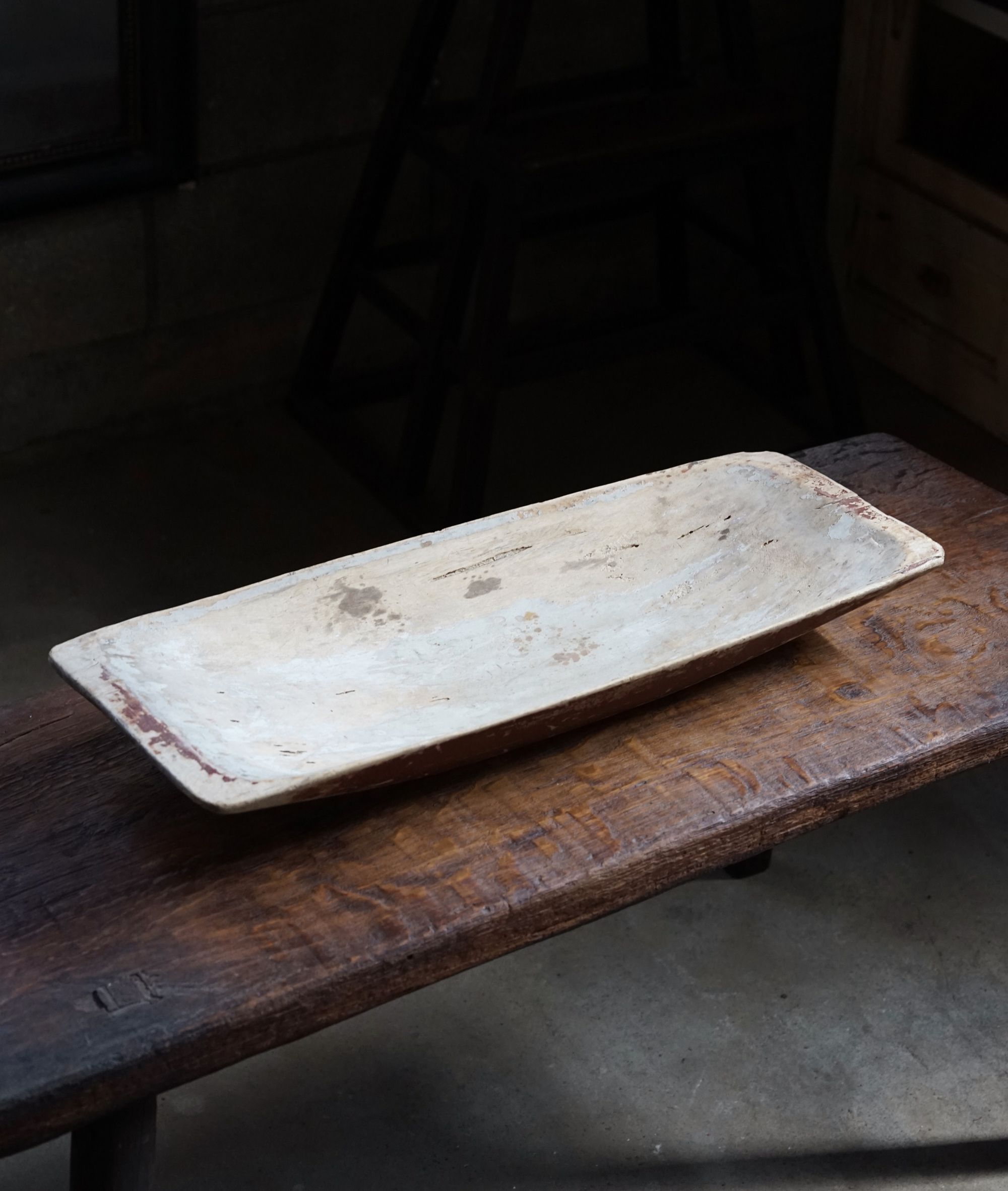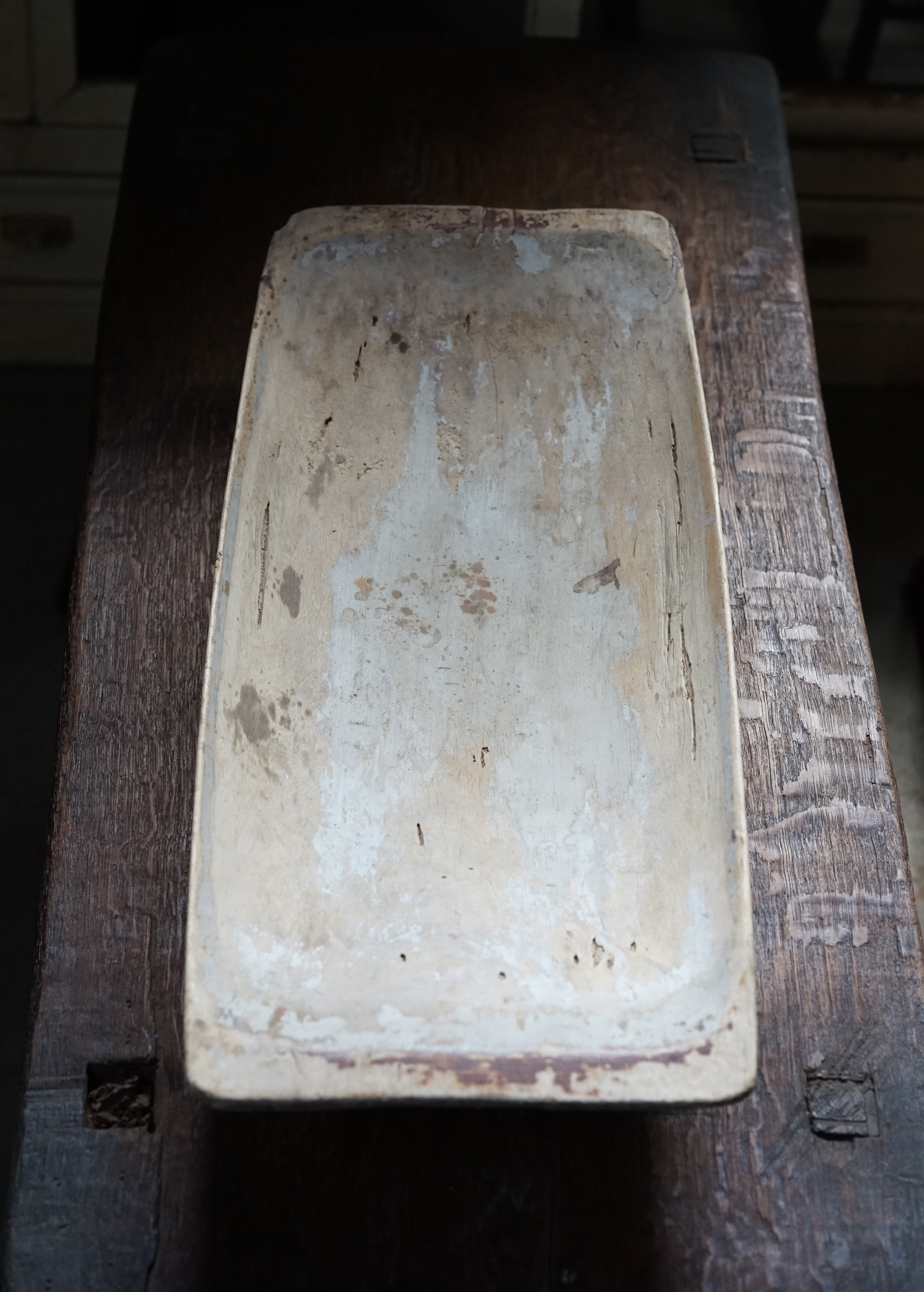 ずっとサーモンなど魚用の調理や保管などのものと思っていた、または南仏などではそう聞いていたトレイ。本来はミルクを保管するためのものということを教えて頂きました。北部の寒い地域では5〜9月はフレッシュなミルクを飲みますが、それ以外の寒期には最後の写真のようなキャビネットにミルクを入れ保管していたそうです。独特な舟形の造形とそれぞれ落ち着いた色味の着色が好ましい器です。