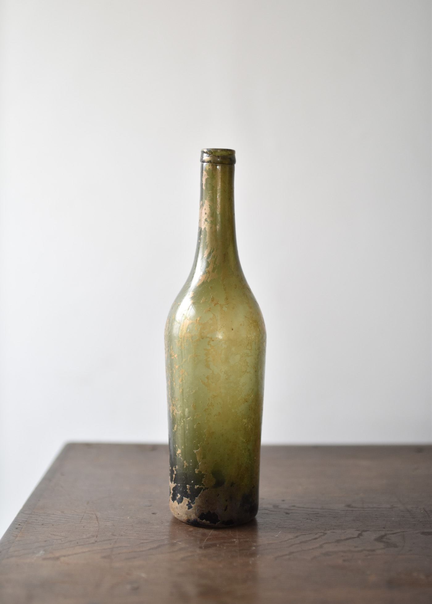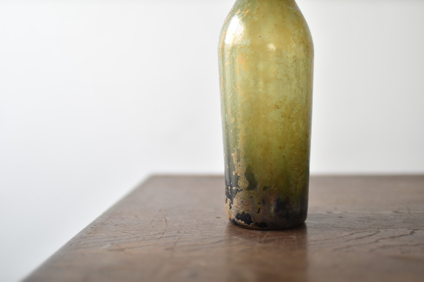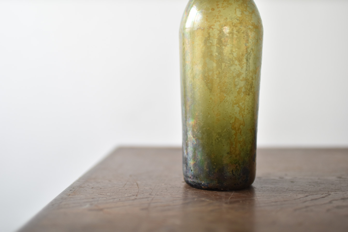 銀化の見られる姿の良いワインボトルは、現ポーランド北西部からドイツ北東部にかけて広がる地域、ポメラニアのものとのこと。表面の銀化膜は剥がれやすいのでご了承下さい。