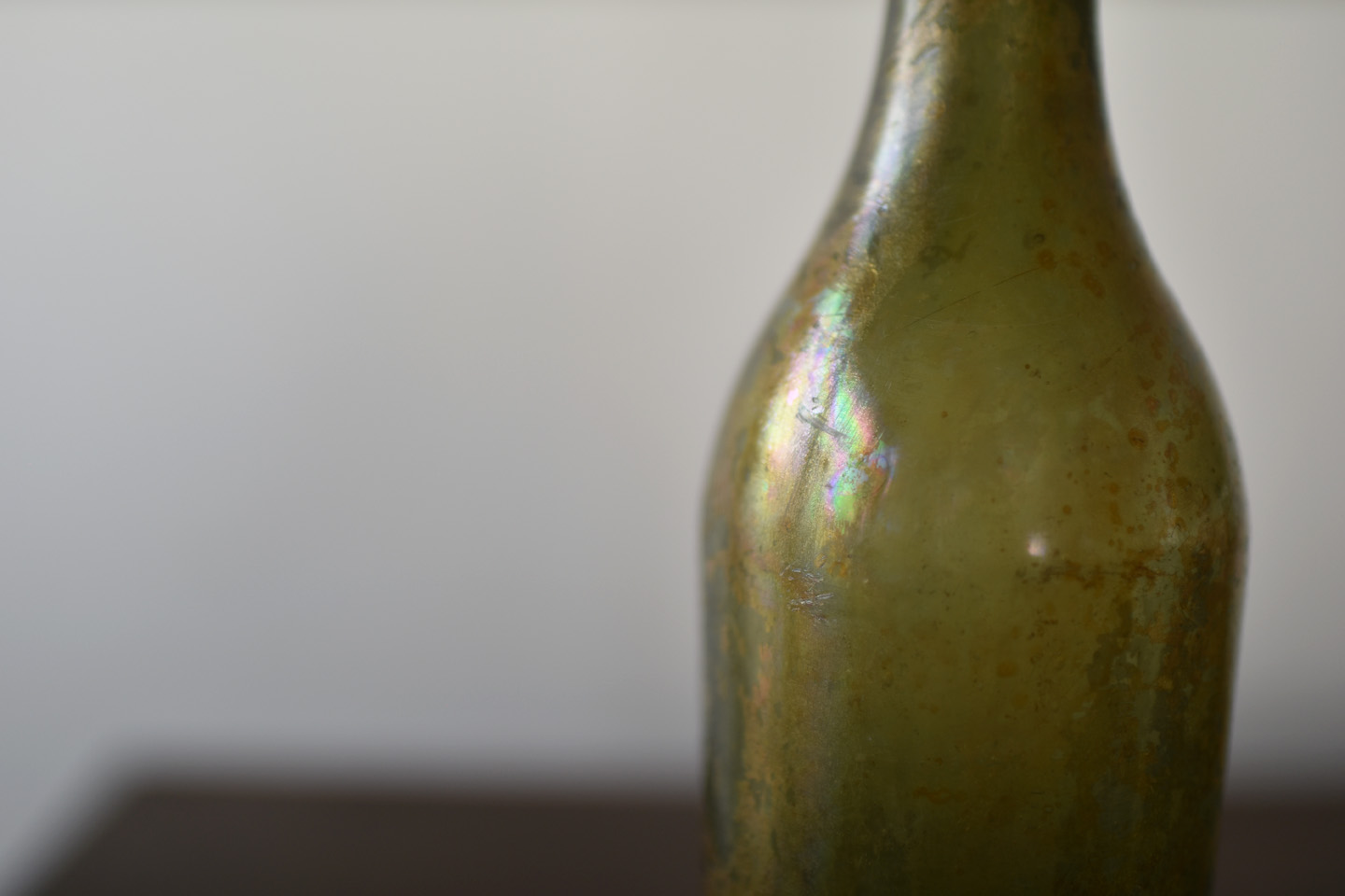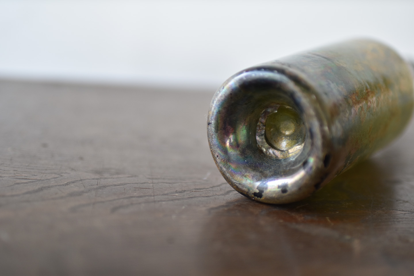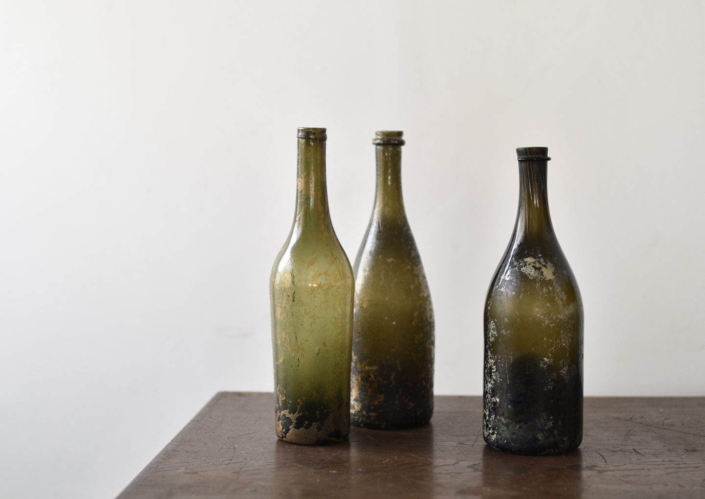 銀化の見られる姿の良いワインボトルは、現ポーランド北西部からドイツ北東部にかけて広がる地域、ポメラニアのものとのこと。表面の銀化膜は剥がれやすいのでご了承下さい。