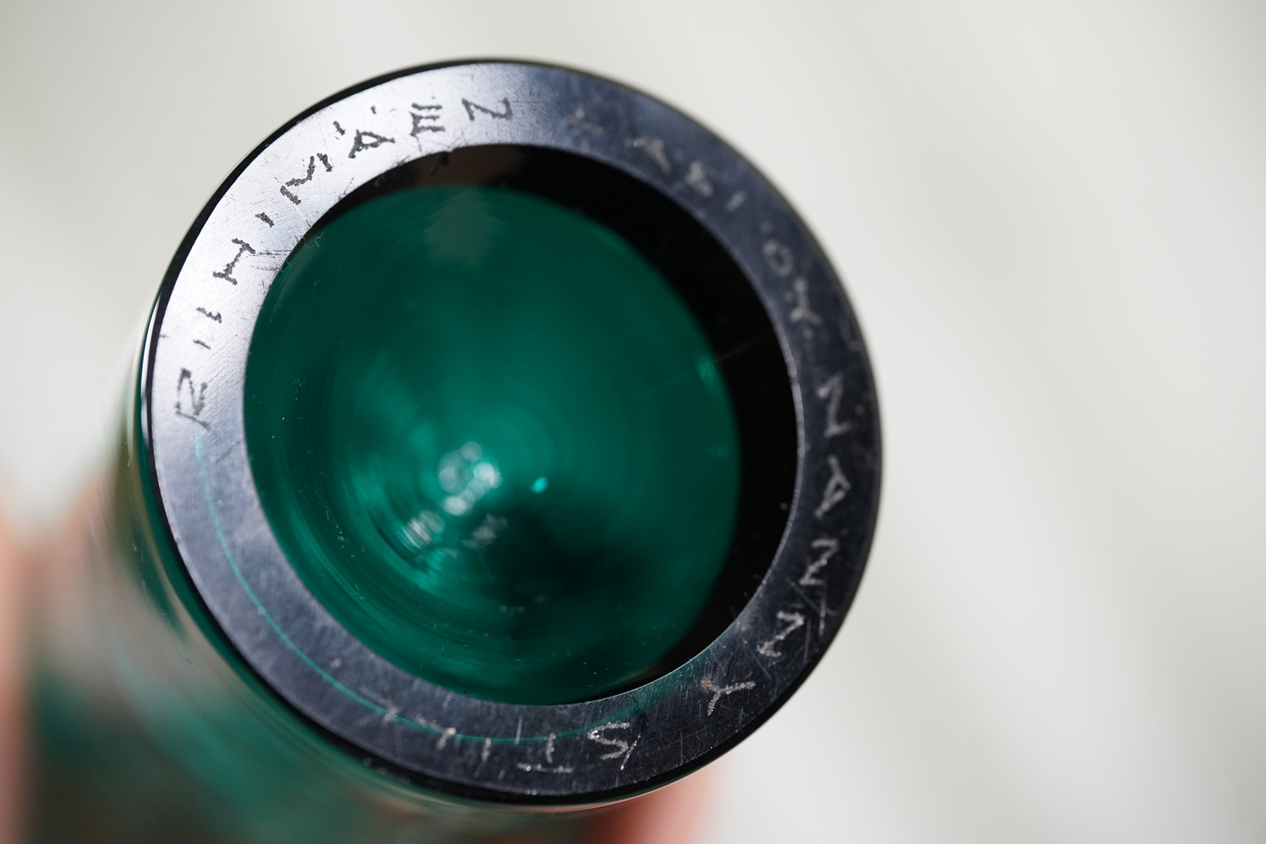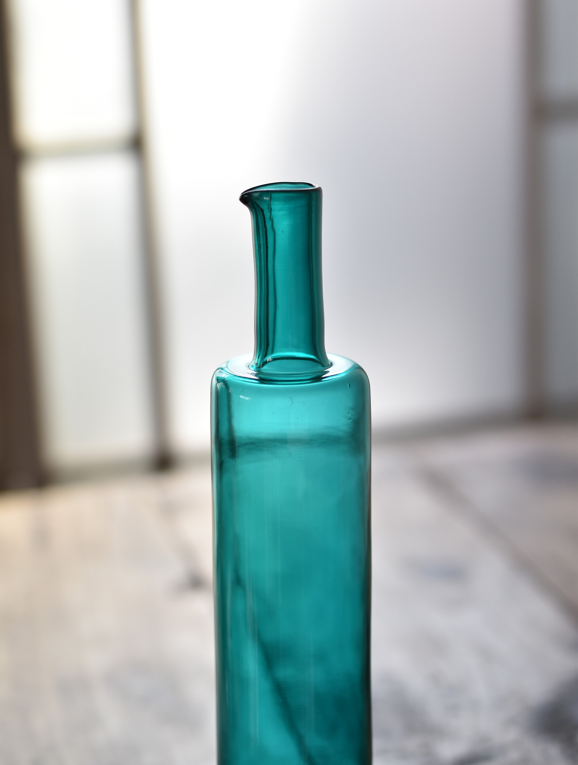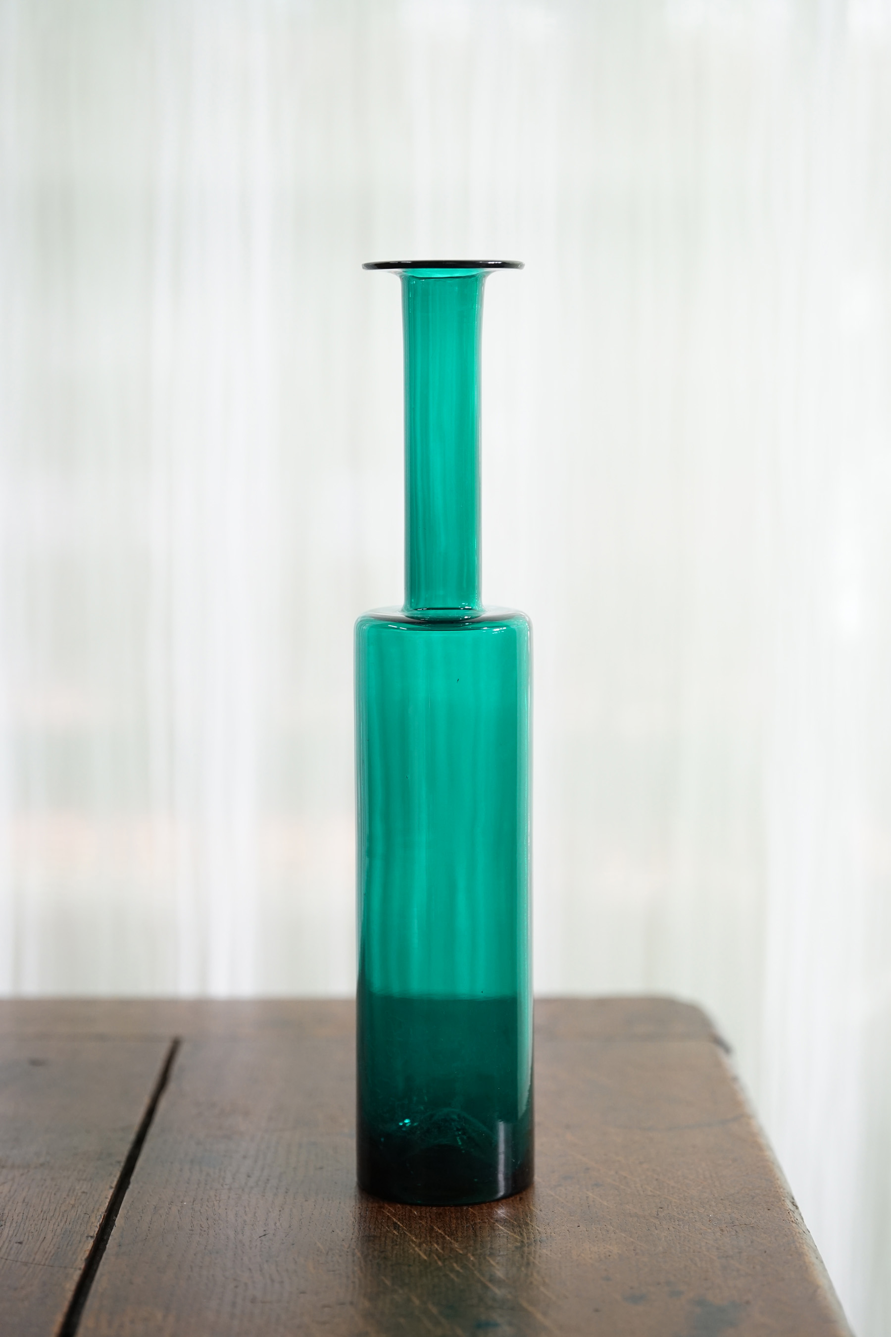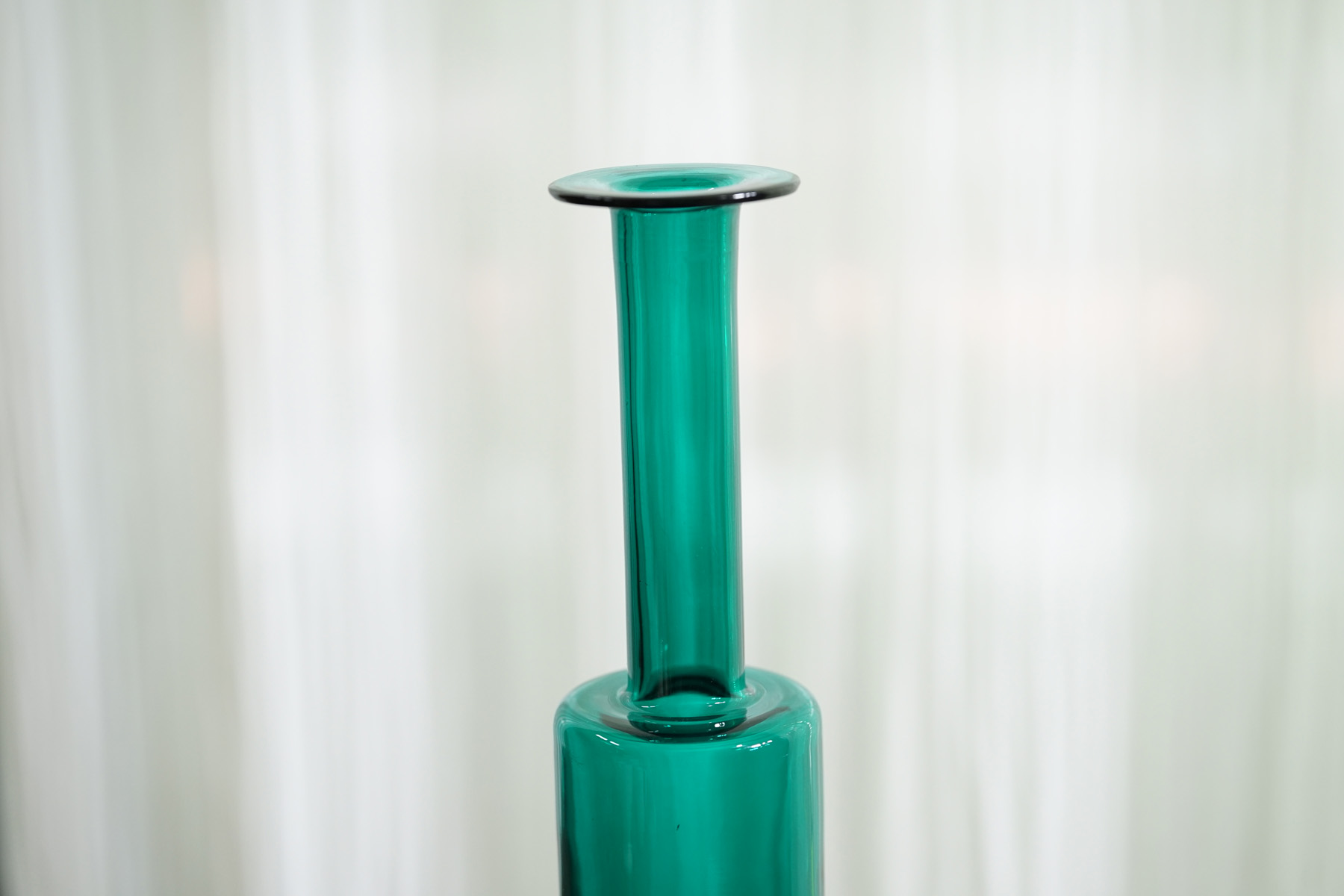 1959年ナニー・スティル デザインのRIIHIMAEN LASI(リーヒマエン・ラシ)の手吹きのガラスボトル。フィンランド語で装飾的なボトルという意味であるKoristepulloという名の付いた作品。稀少なコレクションアイテムです。