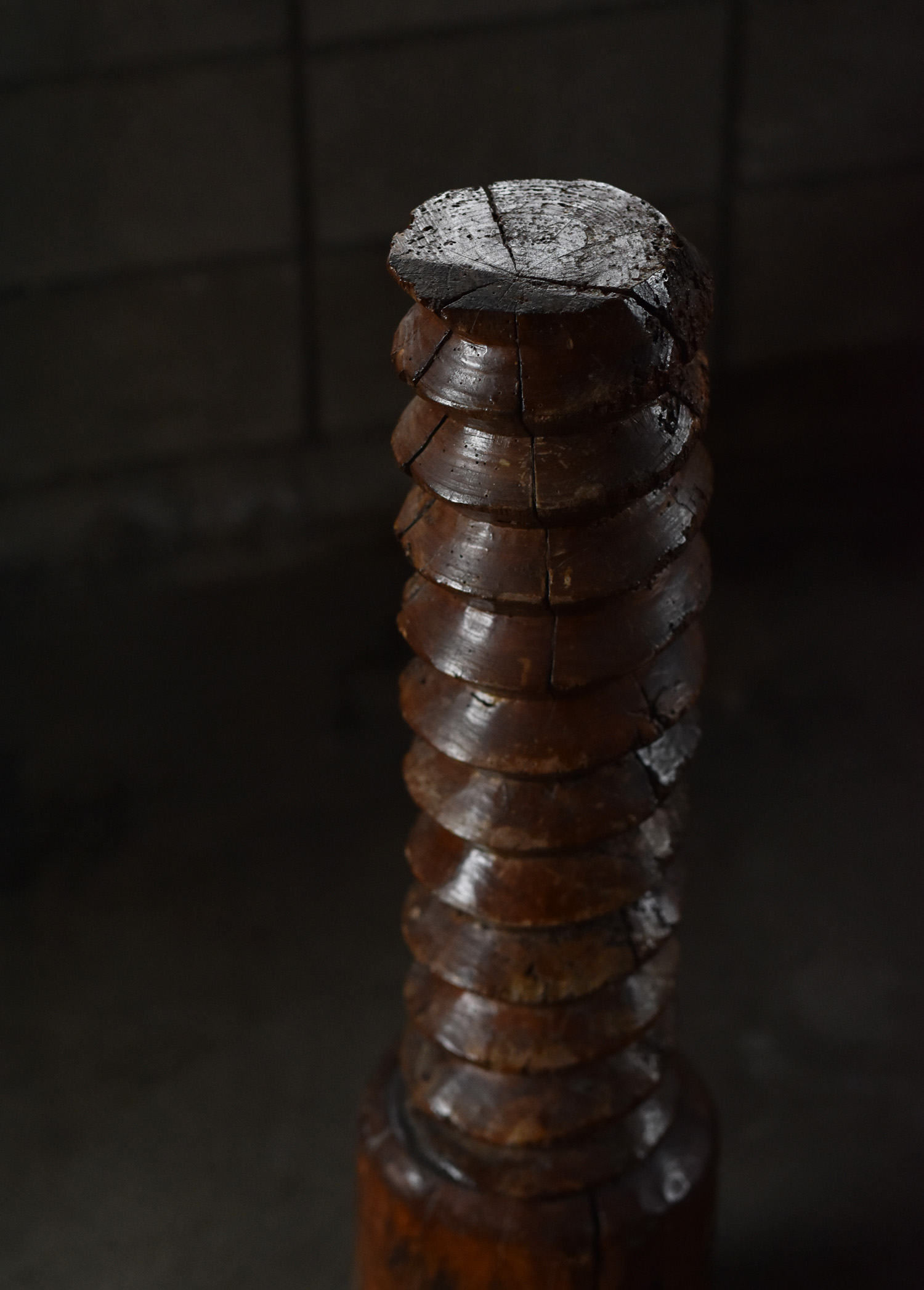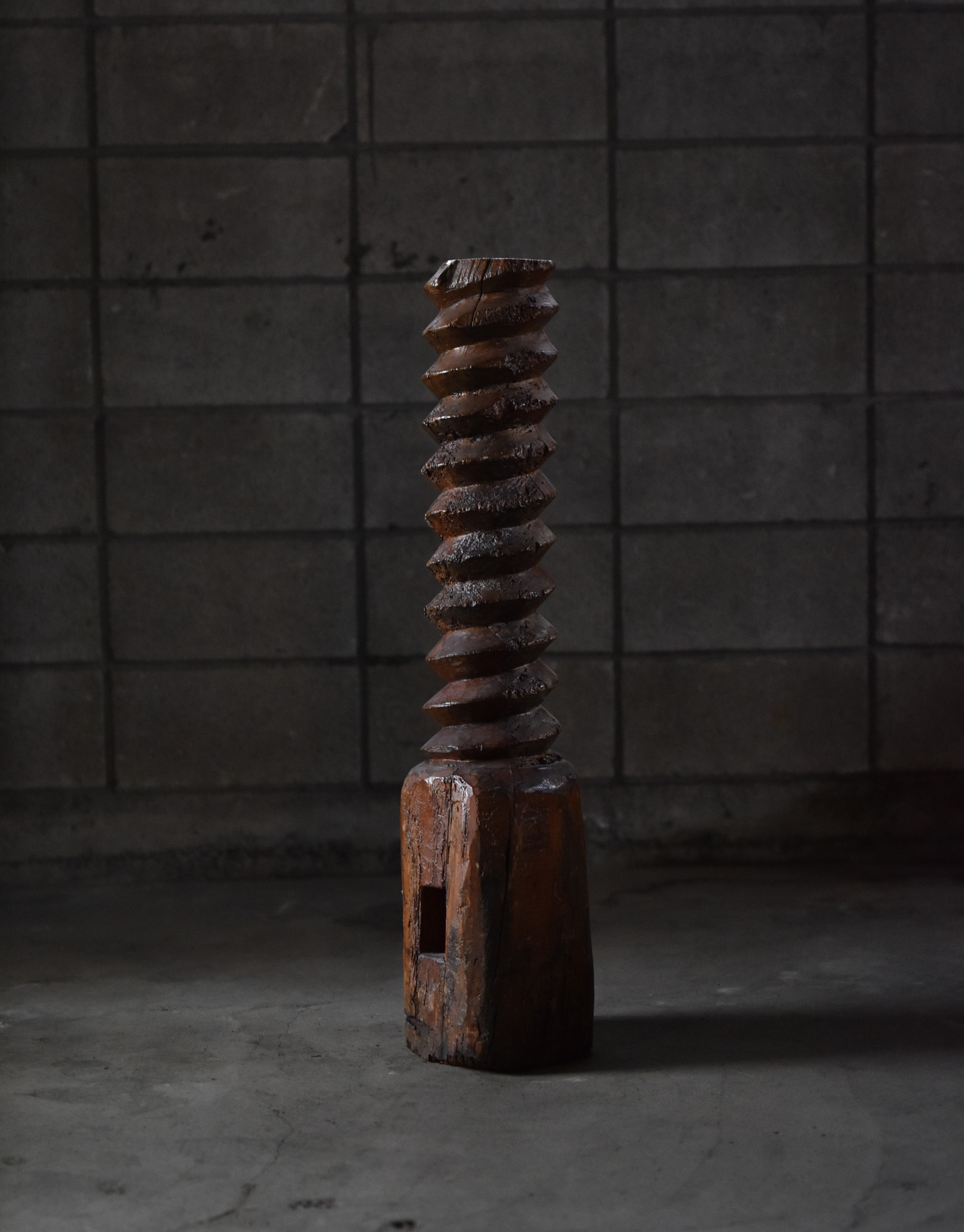 ワインをプレスする際のプレス機のスクリューです。稀少なものでオブジェとしても評価が高い機能美があります。木に補修後などありますが、存在感のある造形は損なわれておりません。