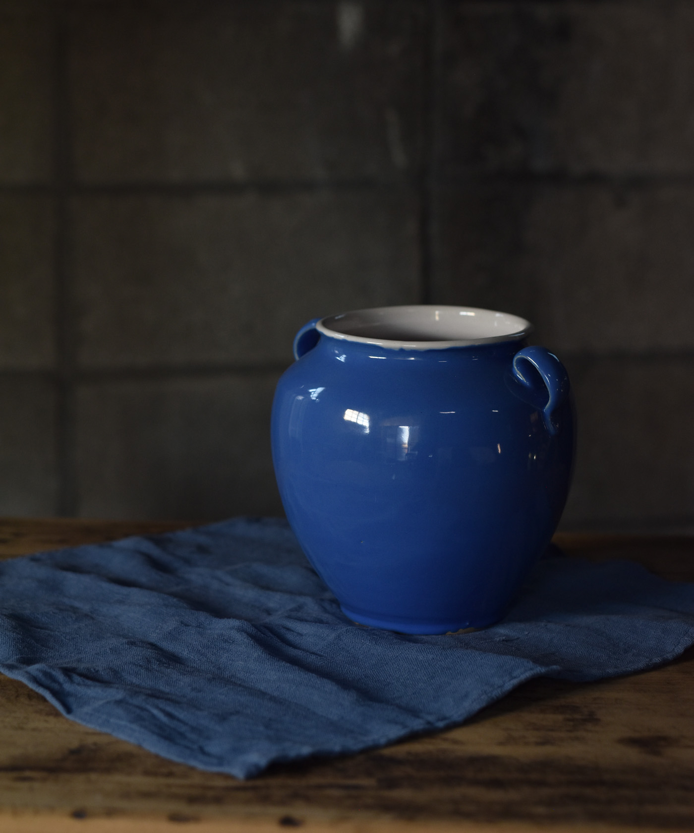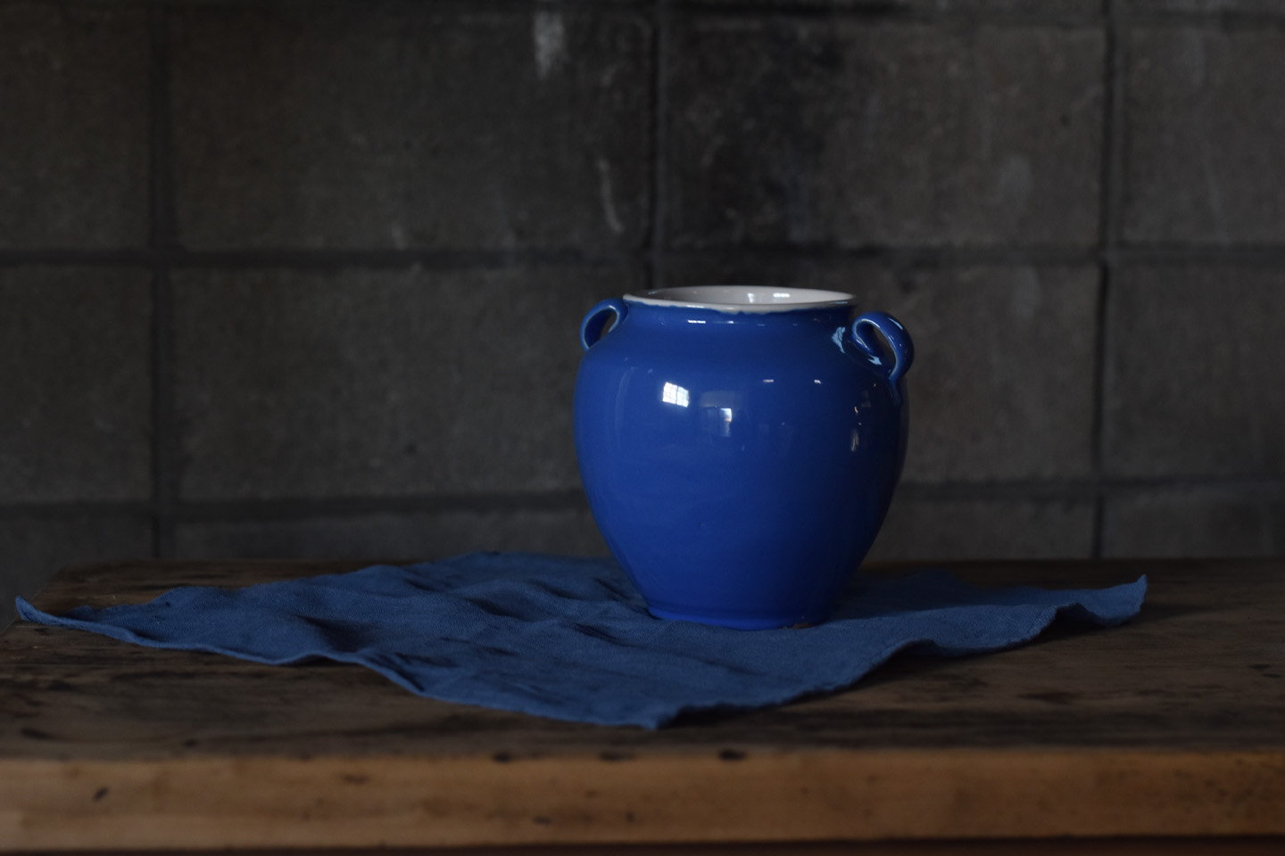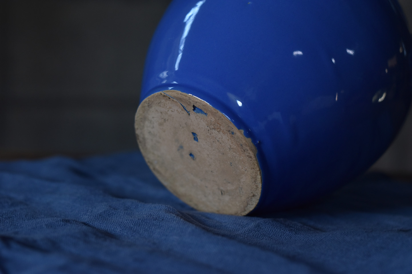白錫のファイアンスが好まれますが、数の少ない鮮やかなブルーの方が珍重されていると思います。どっさりと花入れに。